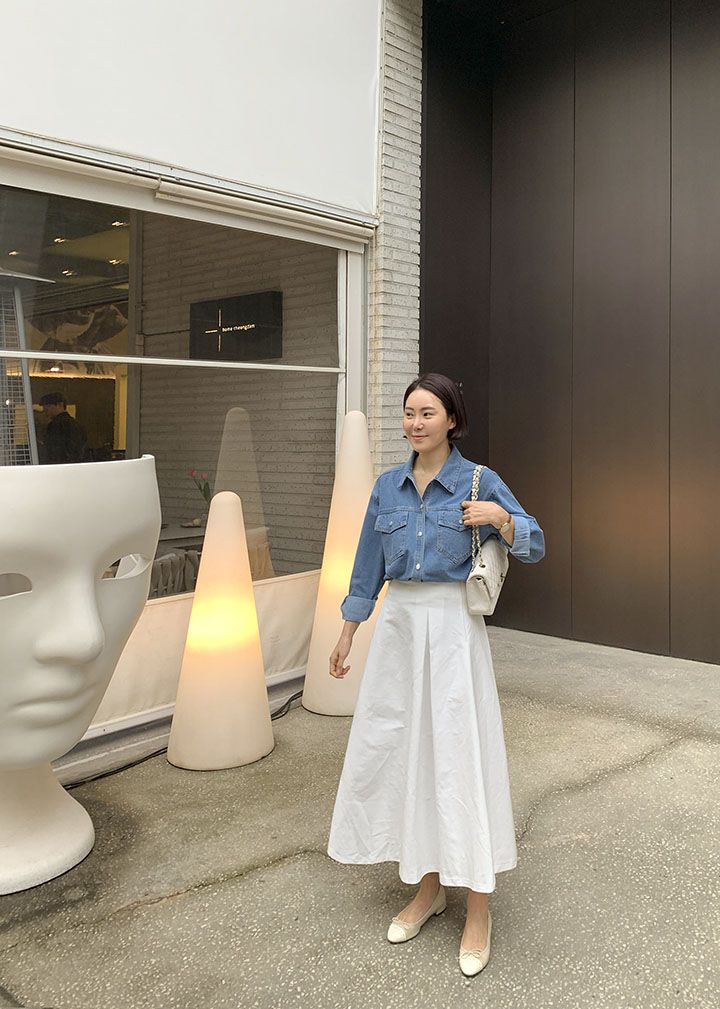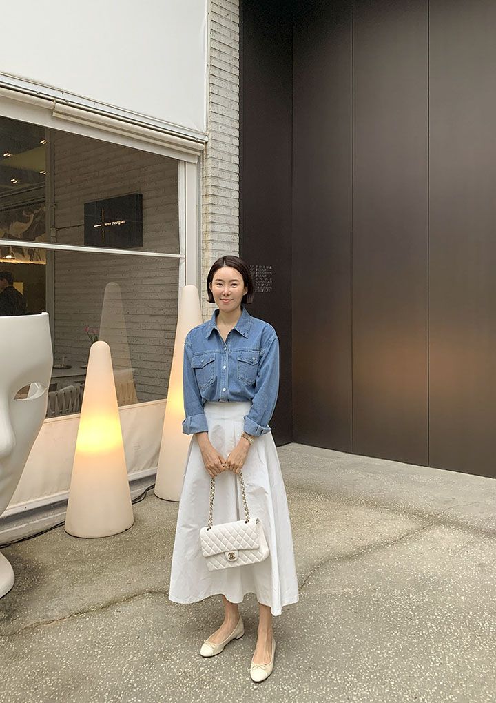【C55269】韓國COC 雙口袋牛仔襯衫-跳色車線四合釦長袖上衣外套