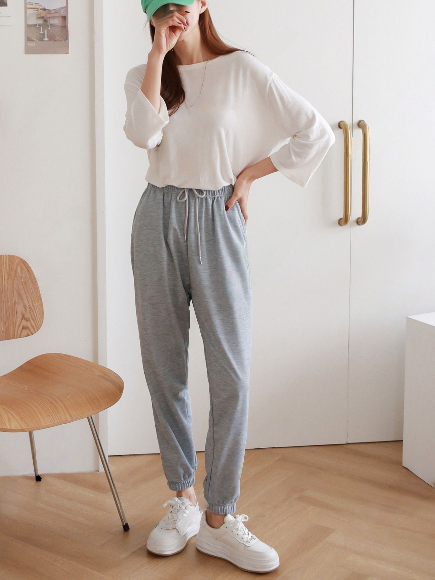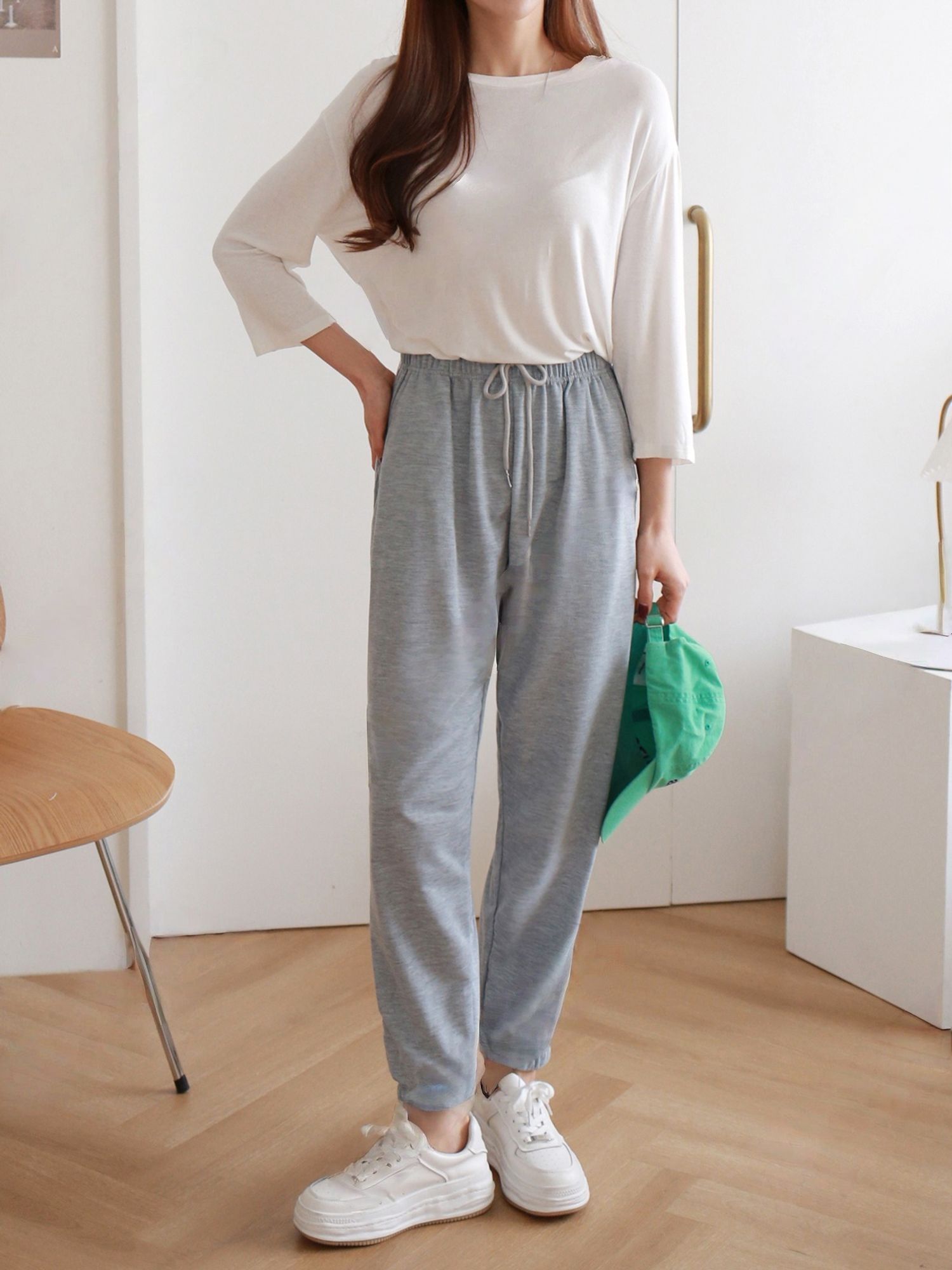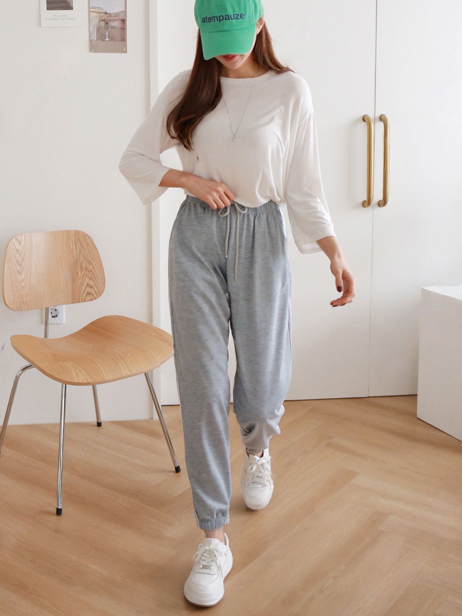 顯瘦版型/舒適也時尚/露出纖細腳踝-休閒居家簡約百搭側條紋運動口袋寬鬆束口褲管鬆緊腰綁帶素面九分褲錐形褲灰色深灰色黑色白灰色