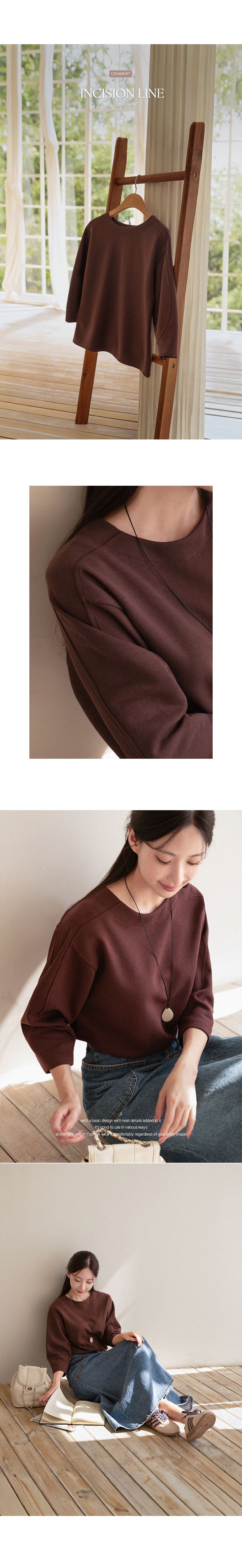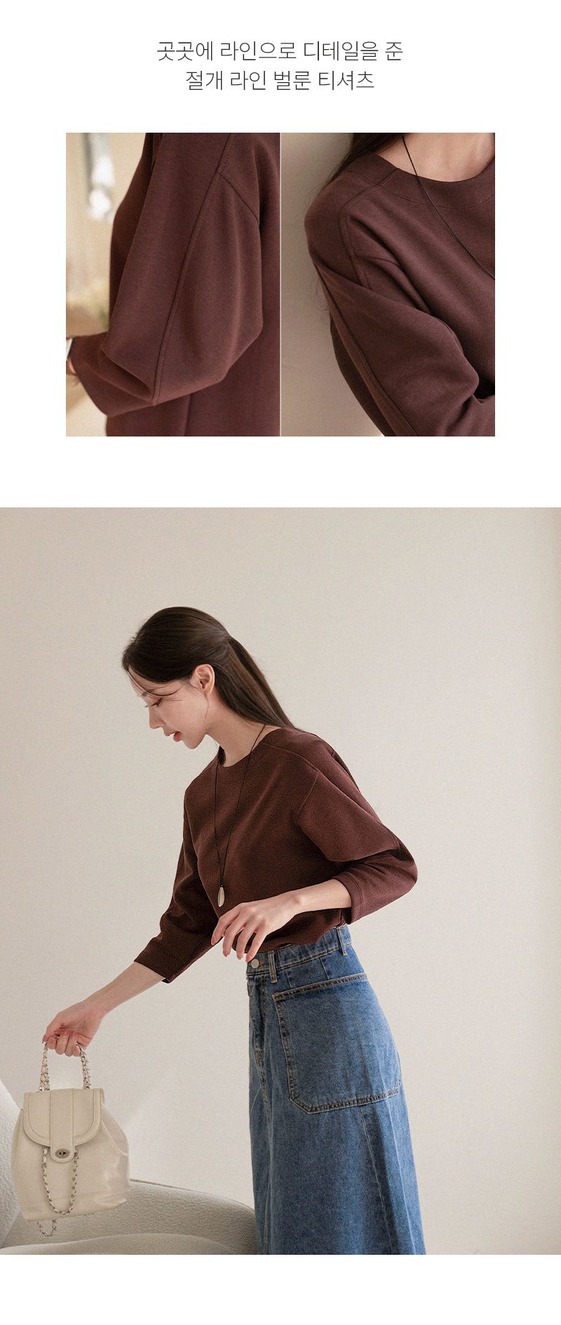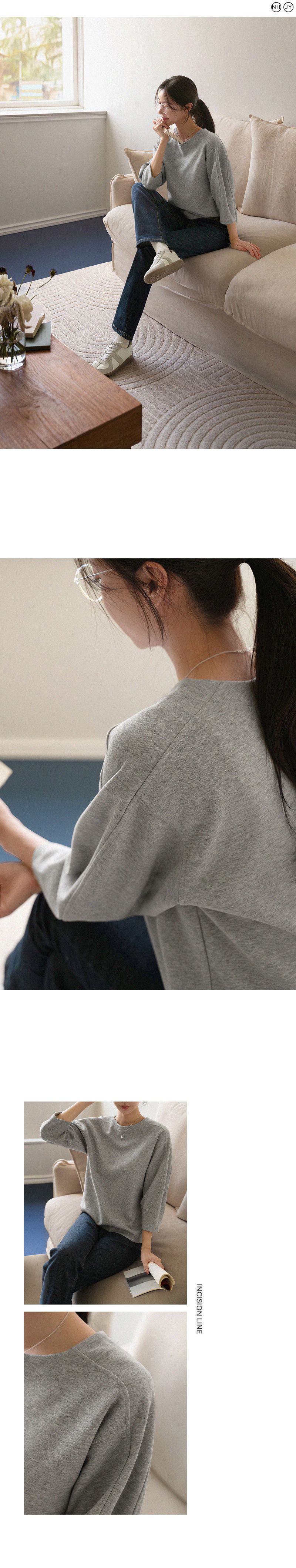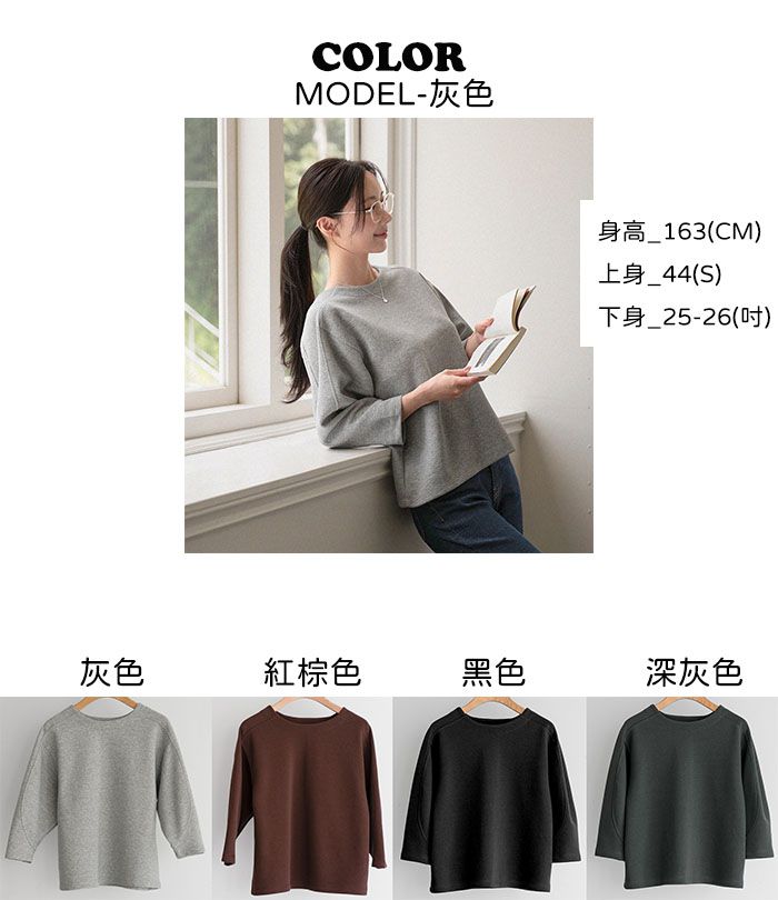 短版上衣/切線寬袖/切割車線/好氣色/圓領 - 休閒居家簡約百搭素面氣球袖上衣七分袖T恤七分袖上衣灰色酒紅色黑色深灰色