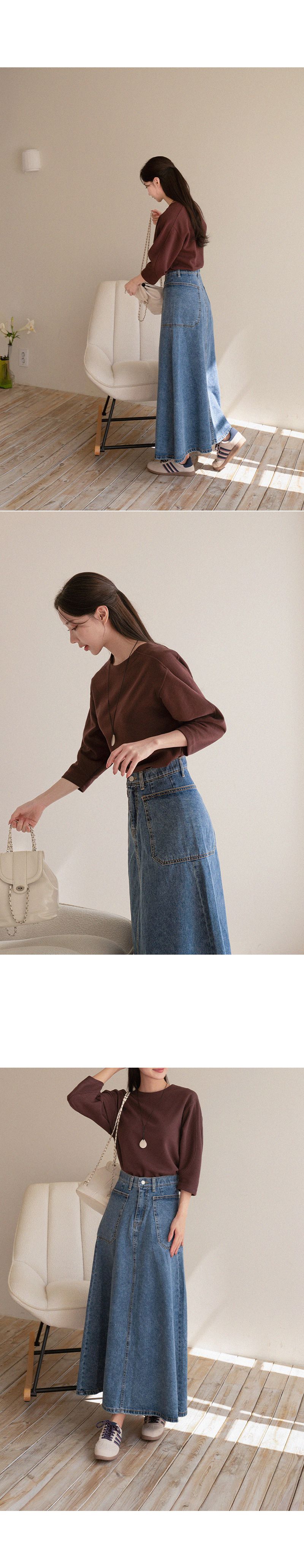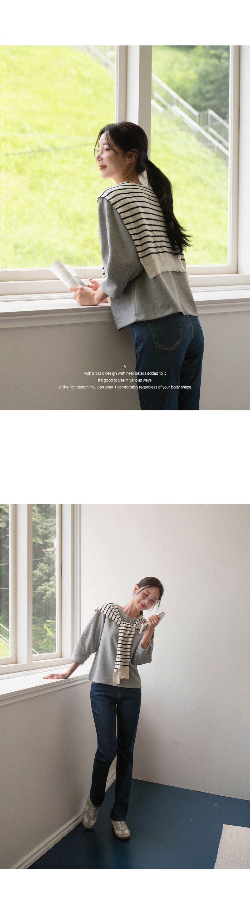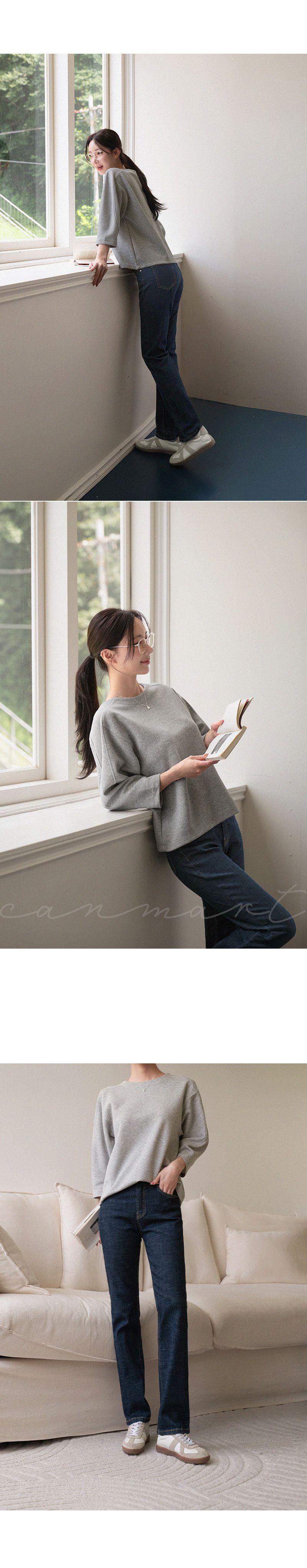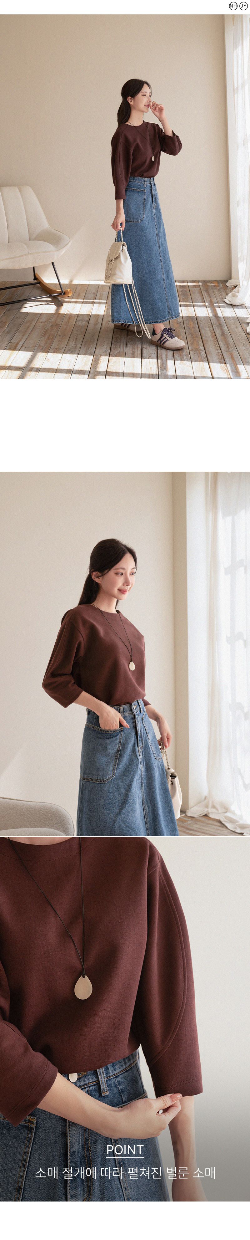 【C55285】韓國CAN 氣球袖上衣-好氣色短版素面切線寬袖七分袖T恤