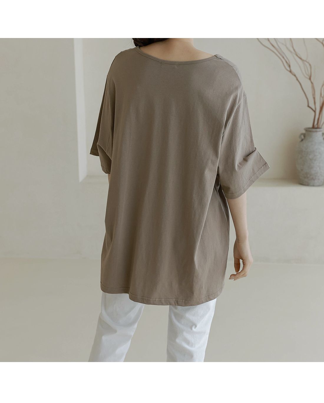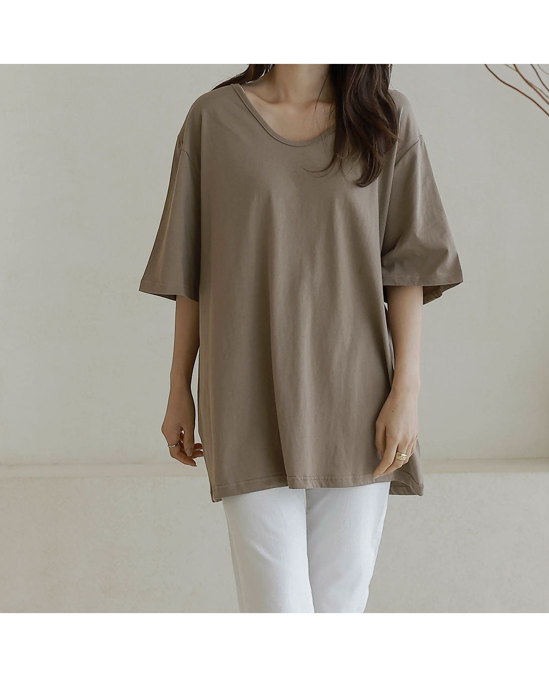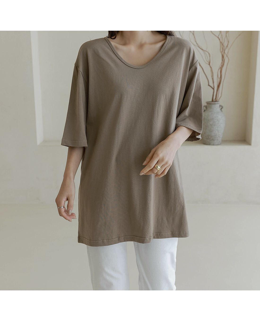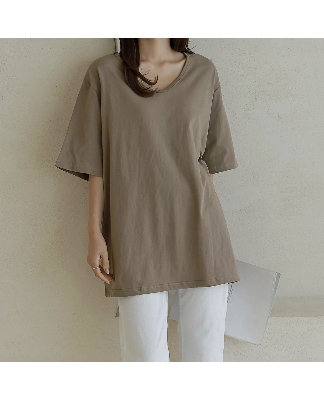 【C55287】韓國BLG 長版U領上衣-寬鬆素面棉質直筒寬袖七分袖T恤★★