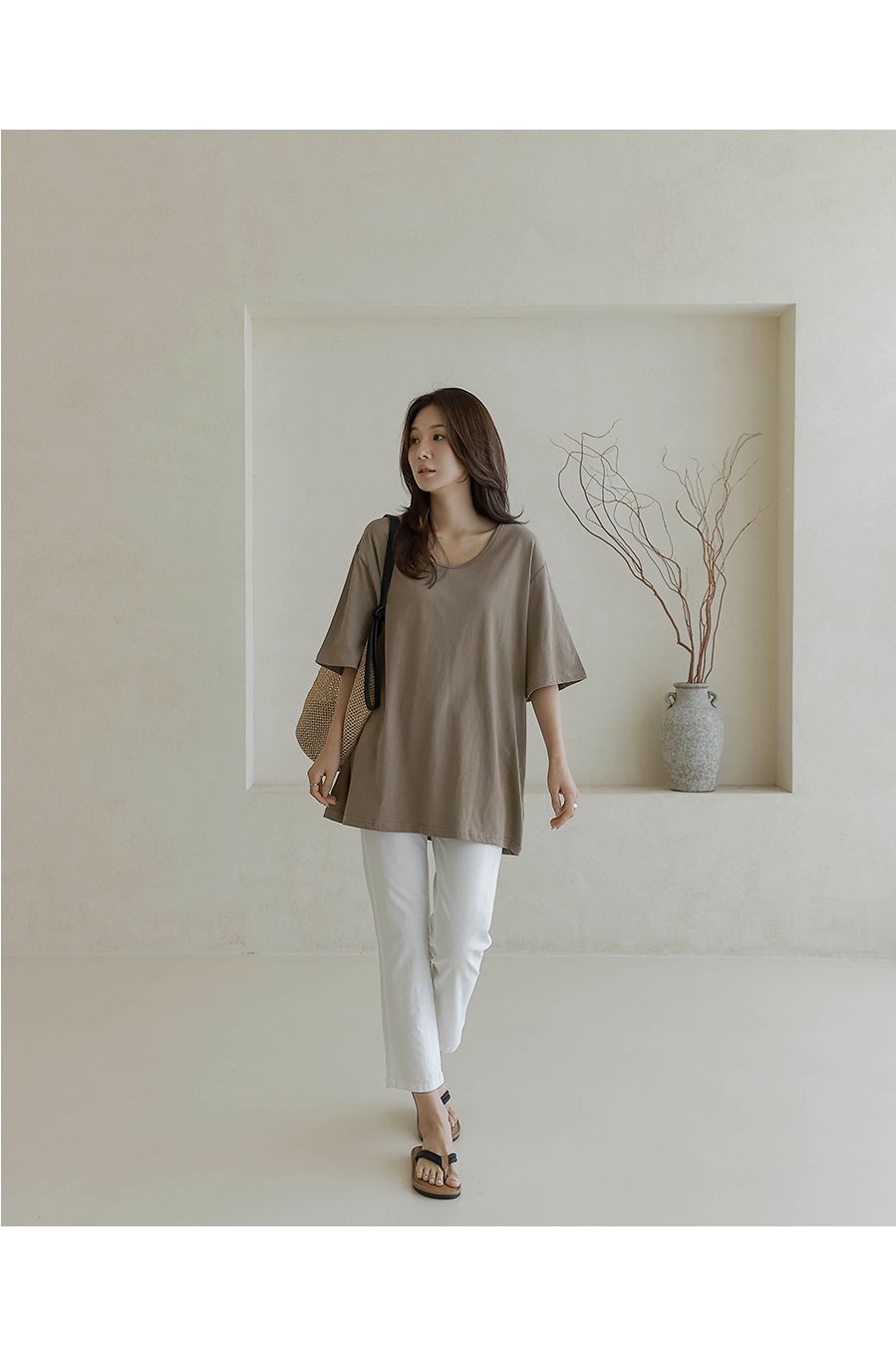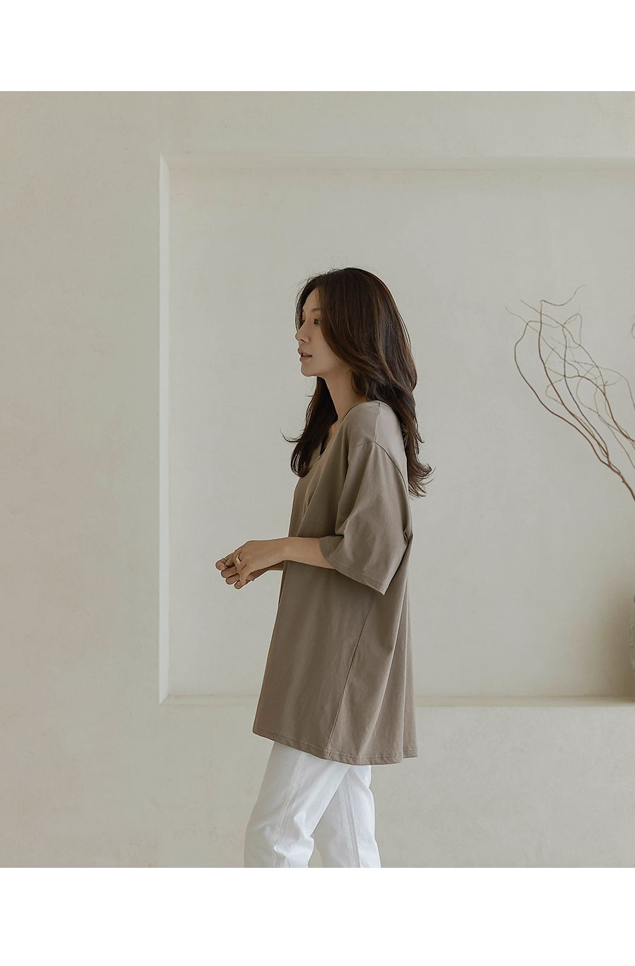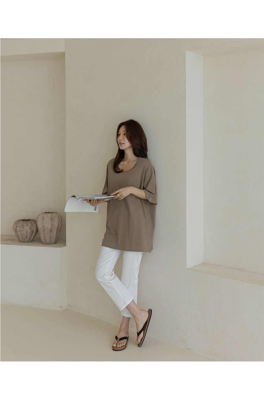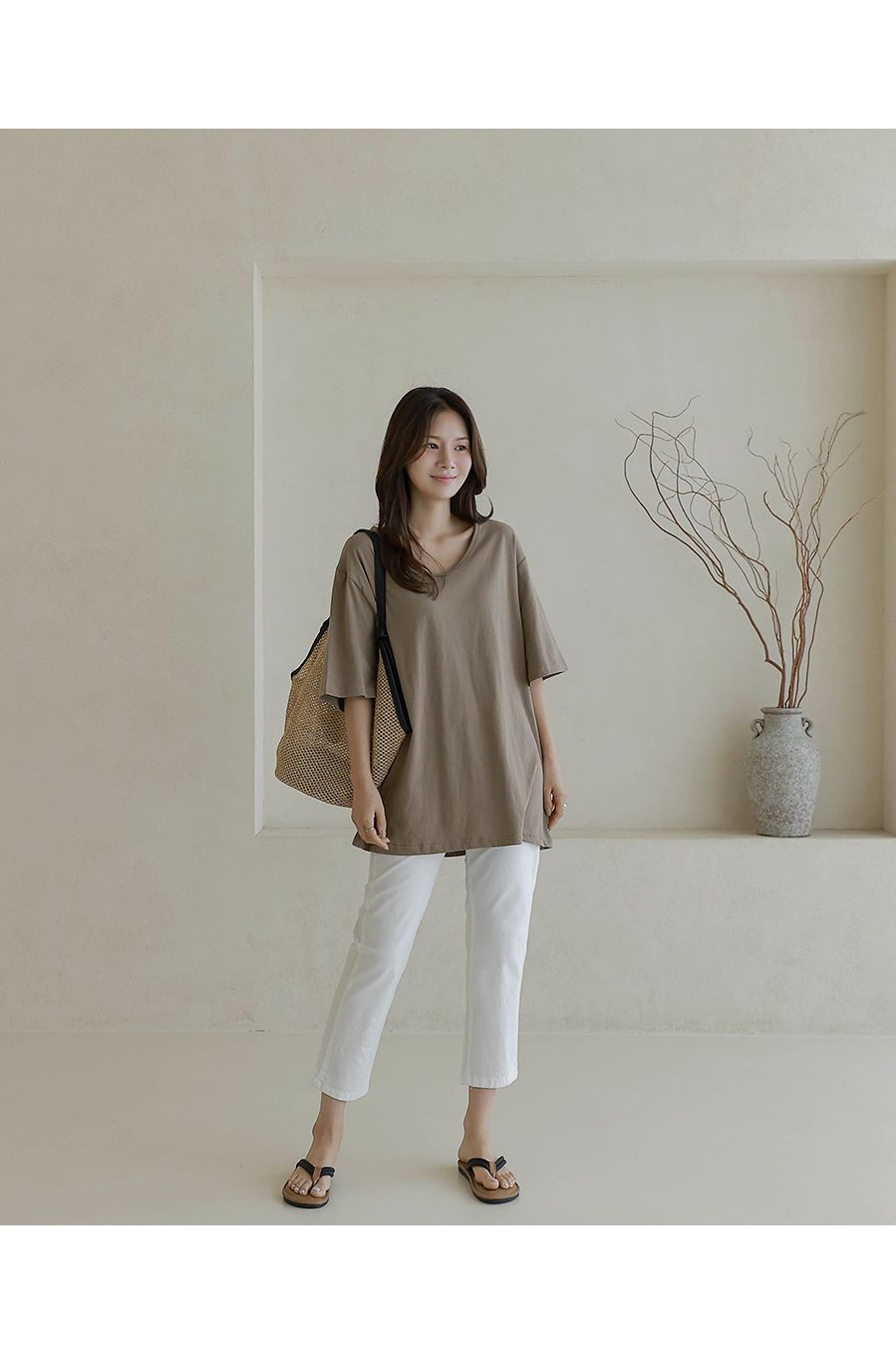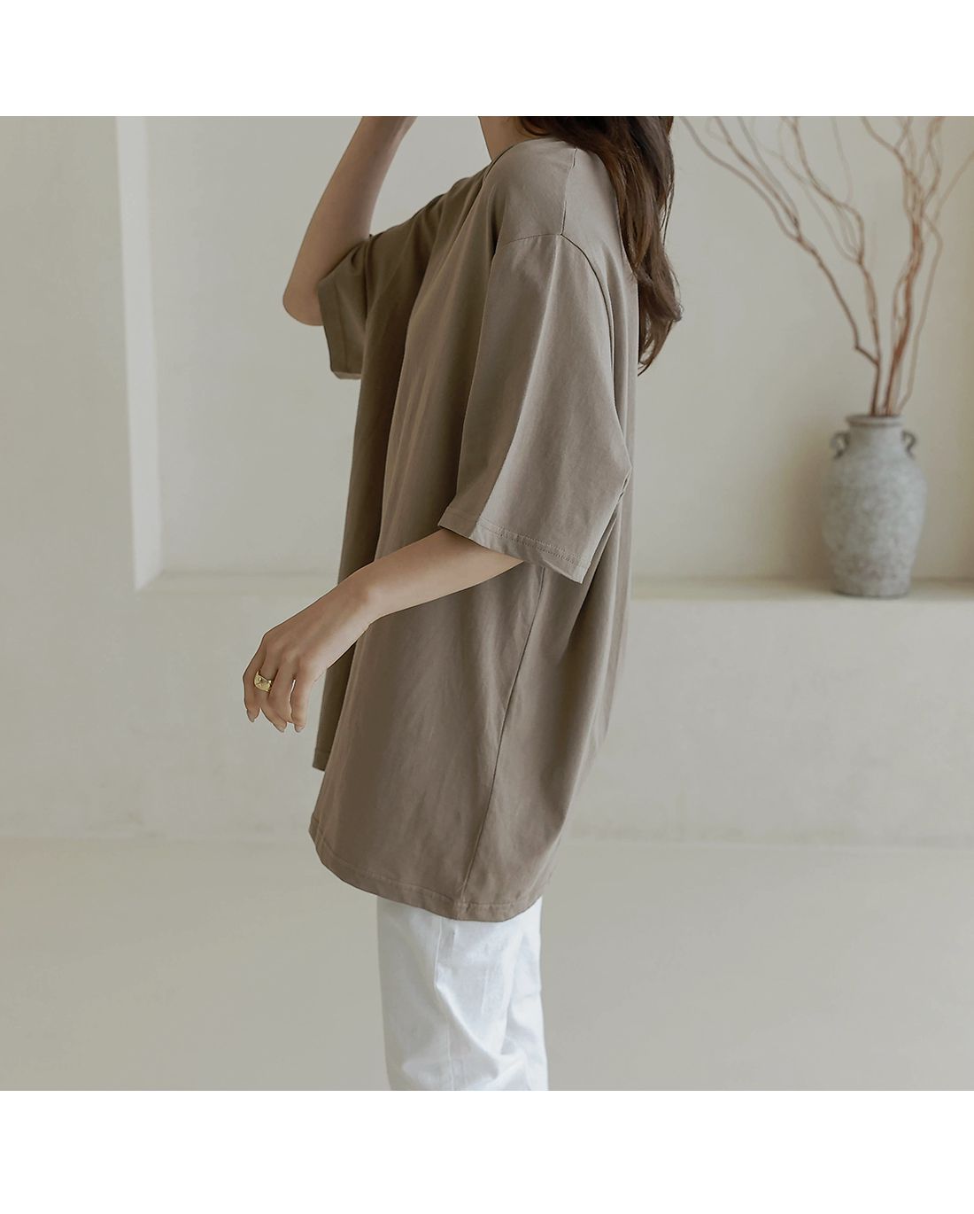 【C55287】韓國BLG 長版U領上衣-寬鬆素面棉質直筒寬袖七分袖T恤★★