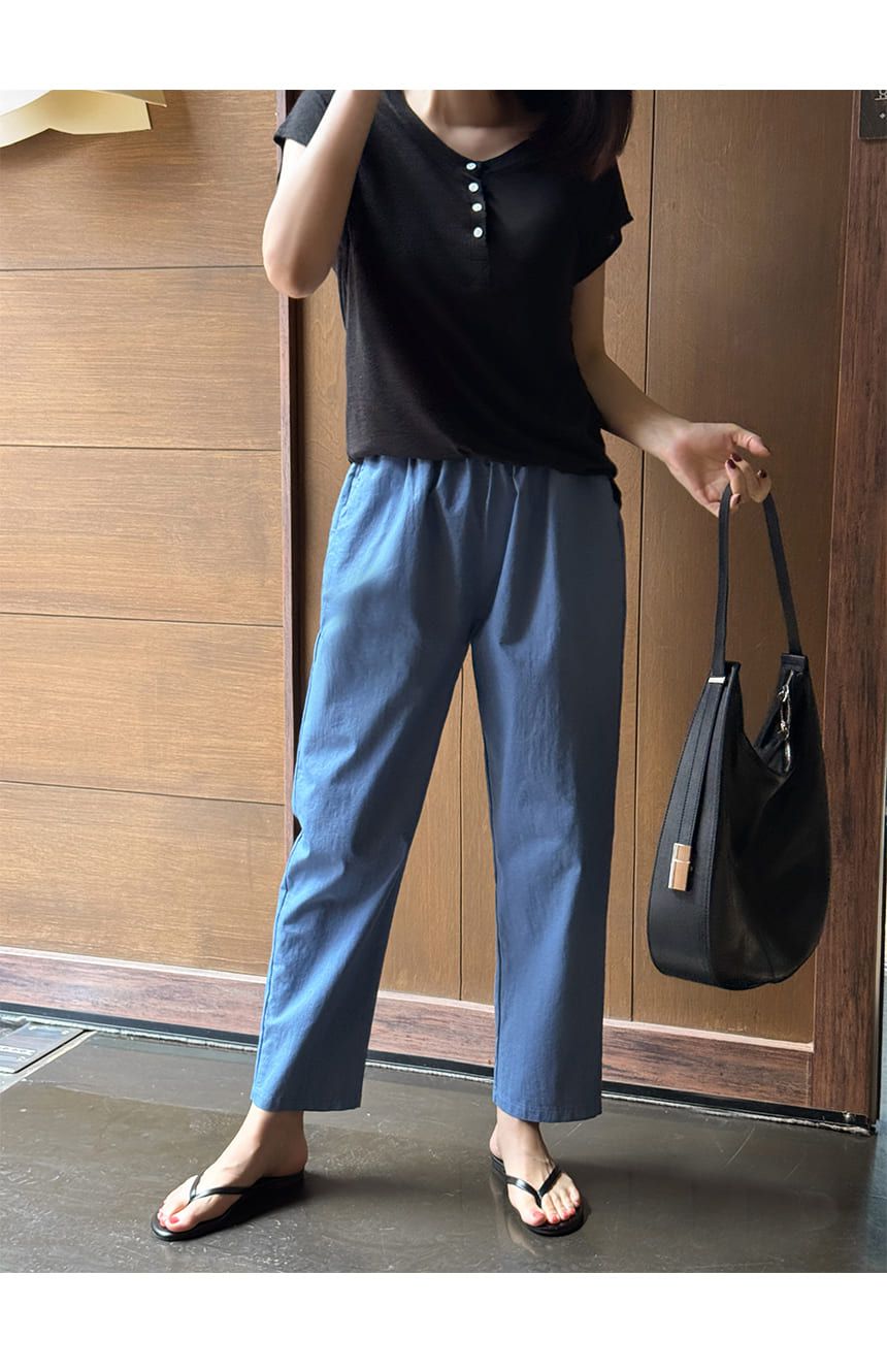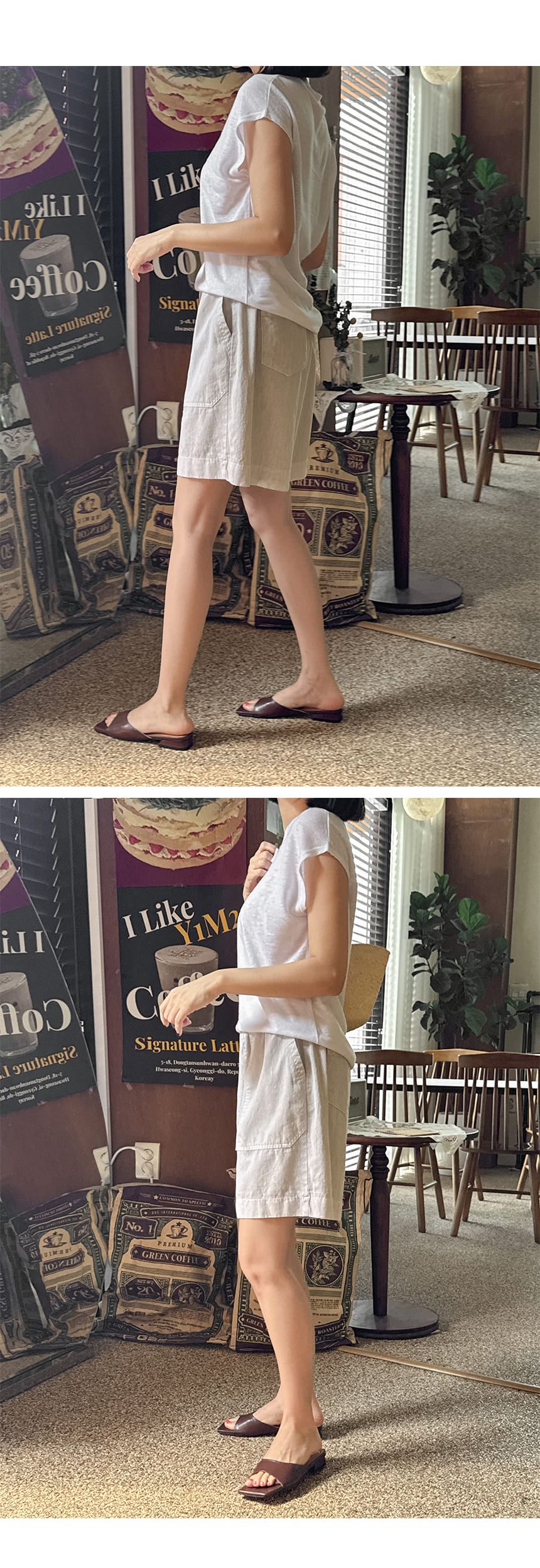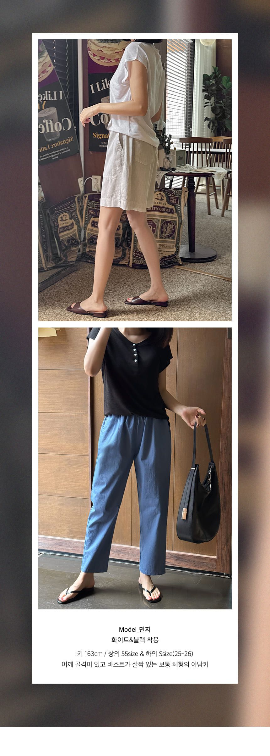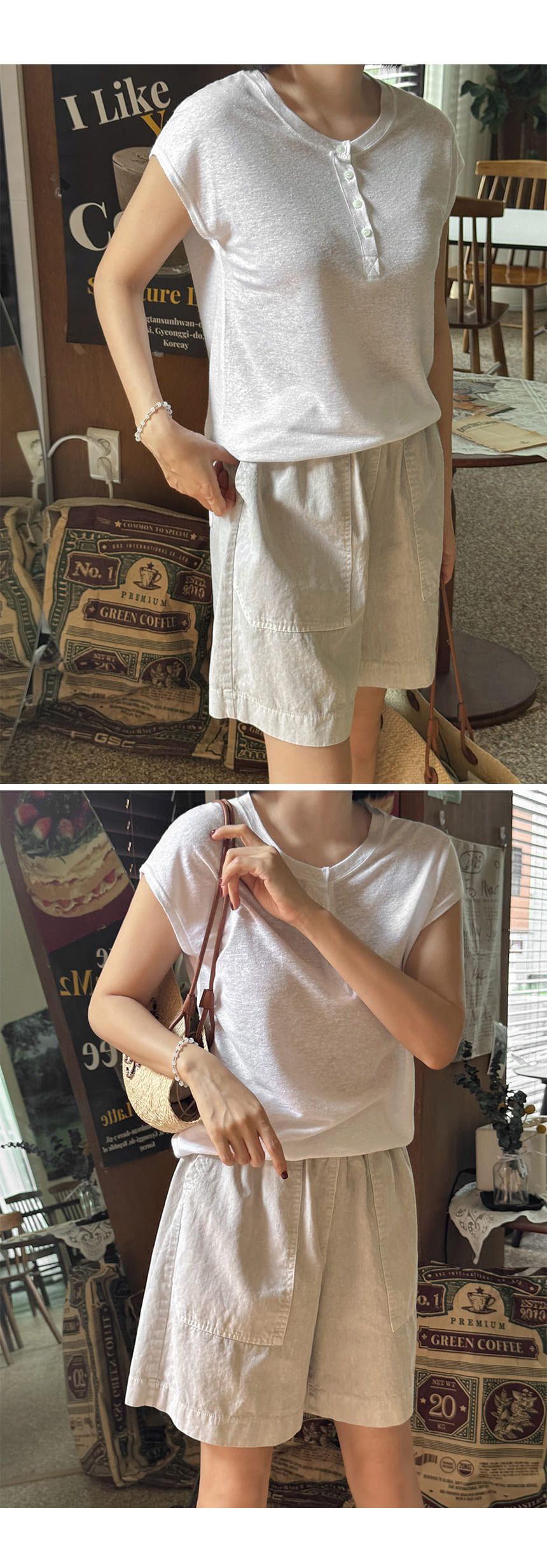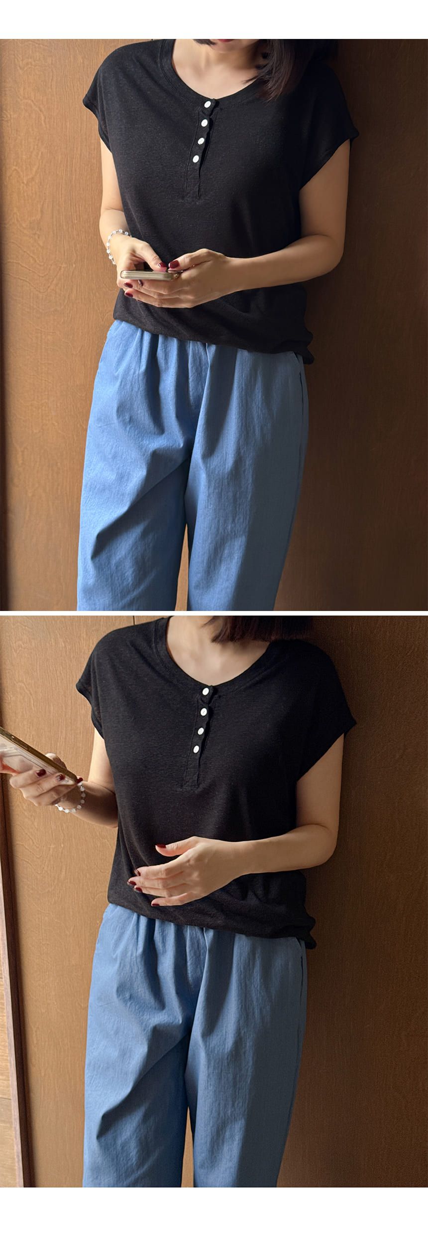 【C55299】韓國MAZ 混亞麻包肩上衣-素面半開襟圓領輕薄短袖T恤