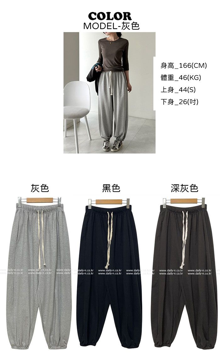 【C55305】韓國DLY 抽繩腰束口棉褲-綁帶腰素面輕薄運動長褲★★