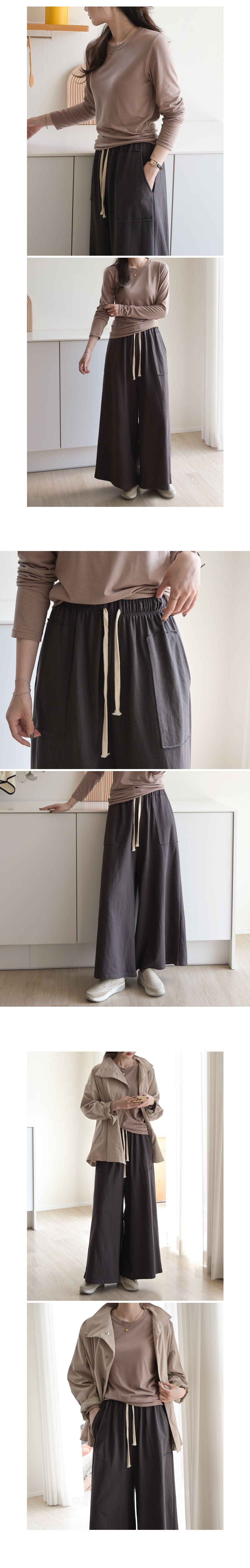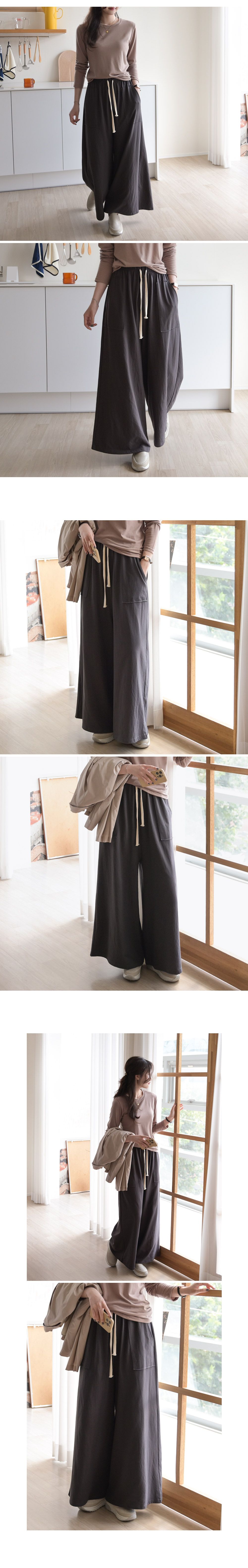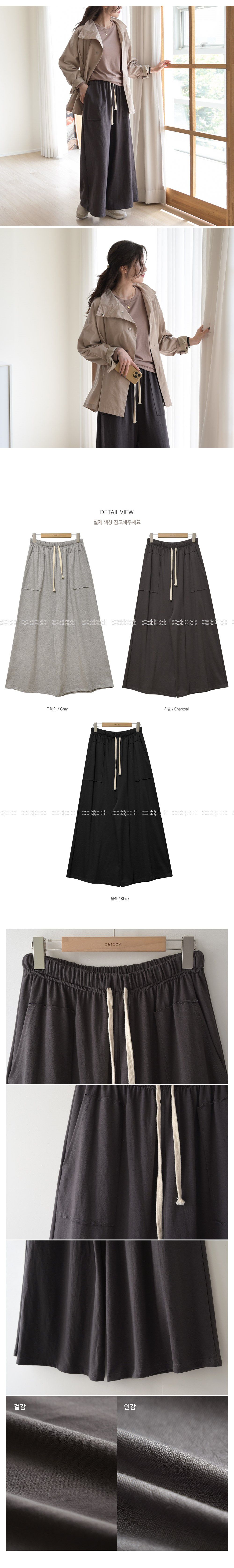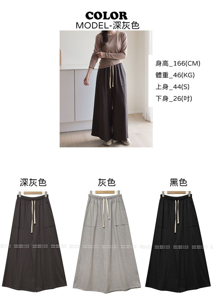 【C55306】韓國DLY 車布大口袋寬褲-素面抽繩鬆緊腰A字寬鬆長褲★★
