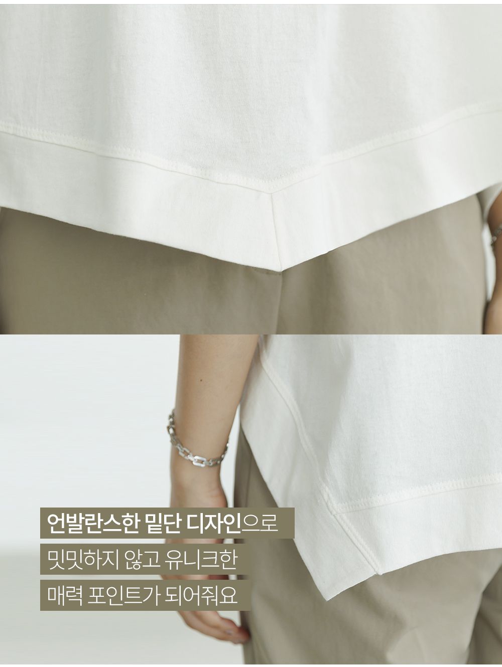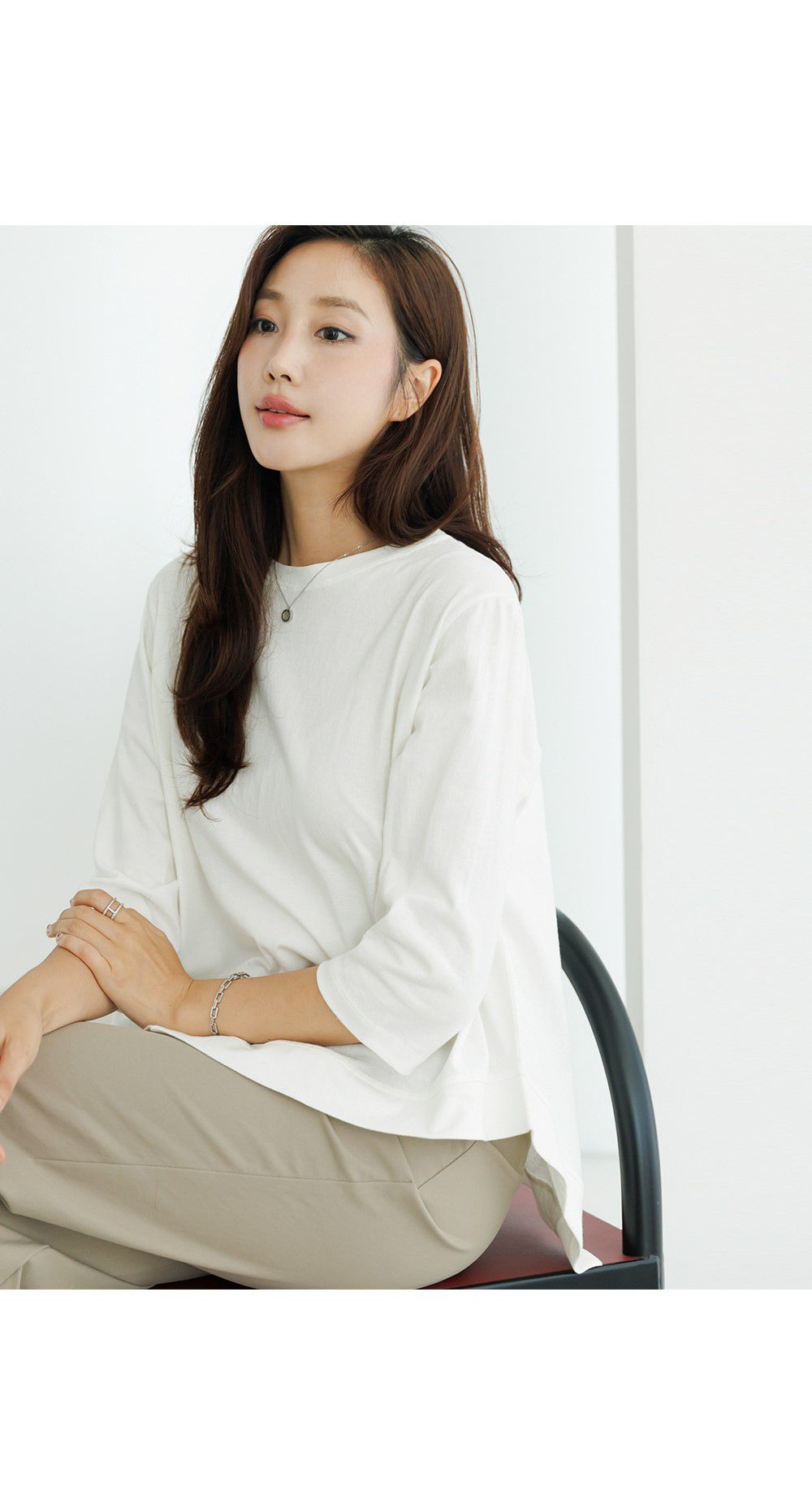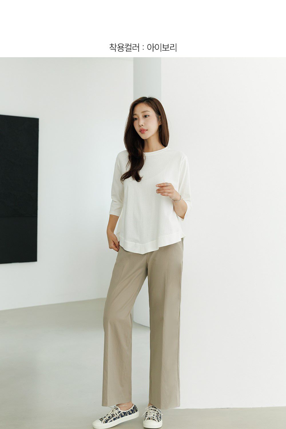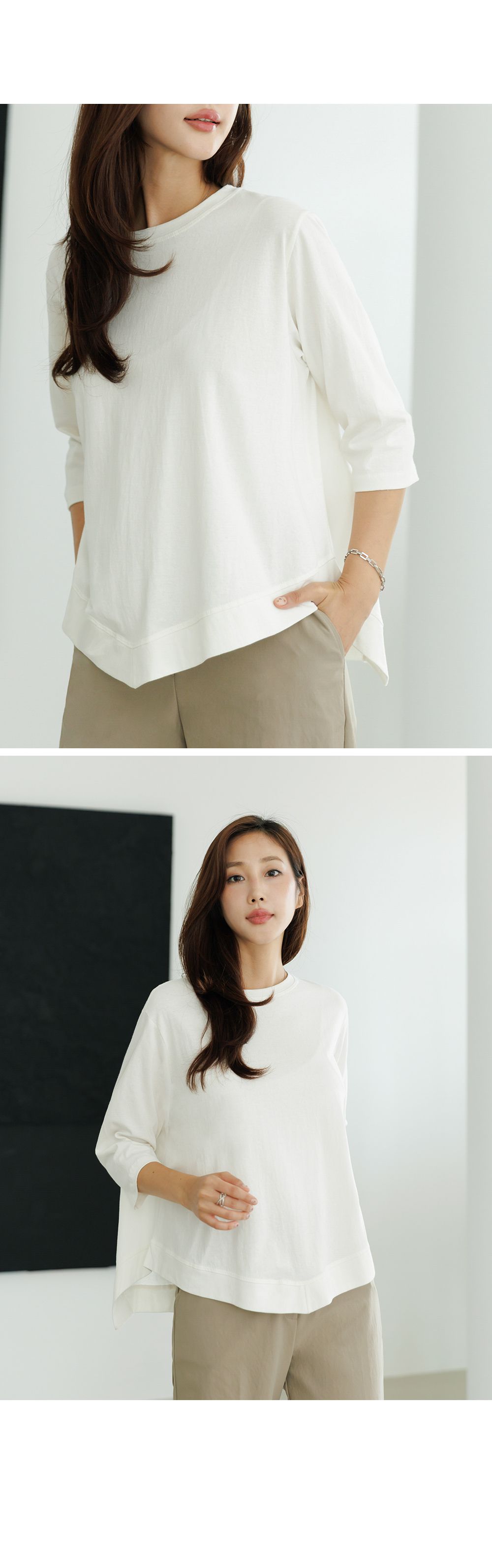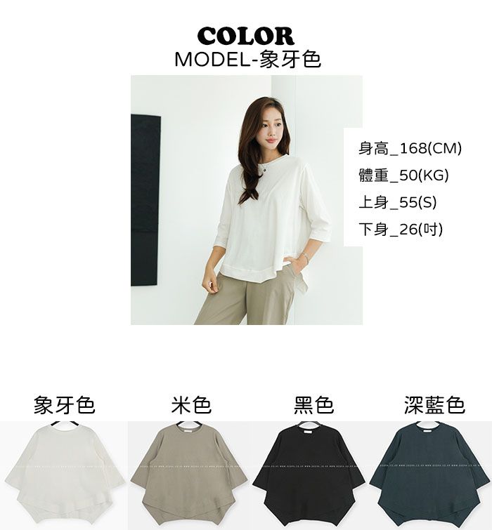 A字傘狀/圓領/不對稱下襬 - 休閒居家簡約百搭素面不規則傘狀上衣A字七分袖上衣T恤象牙色深藍色米色黑色
