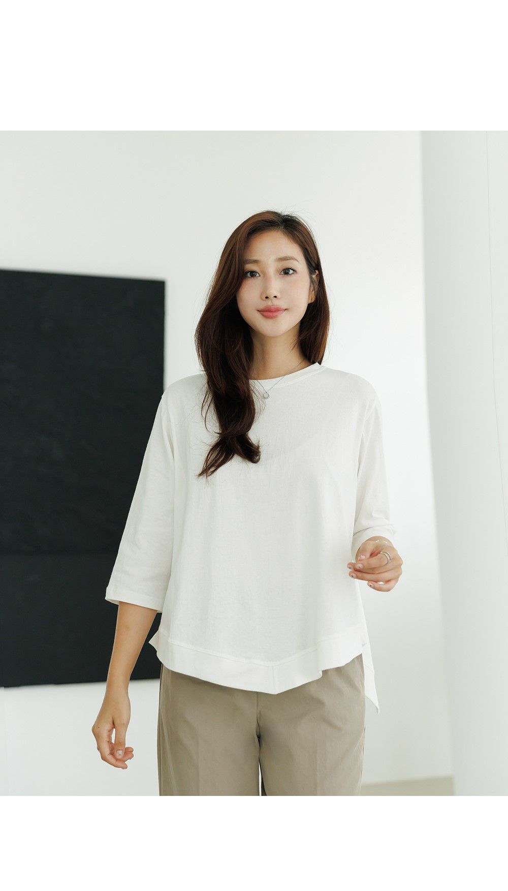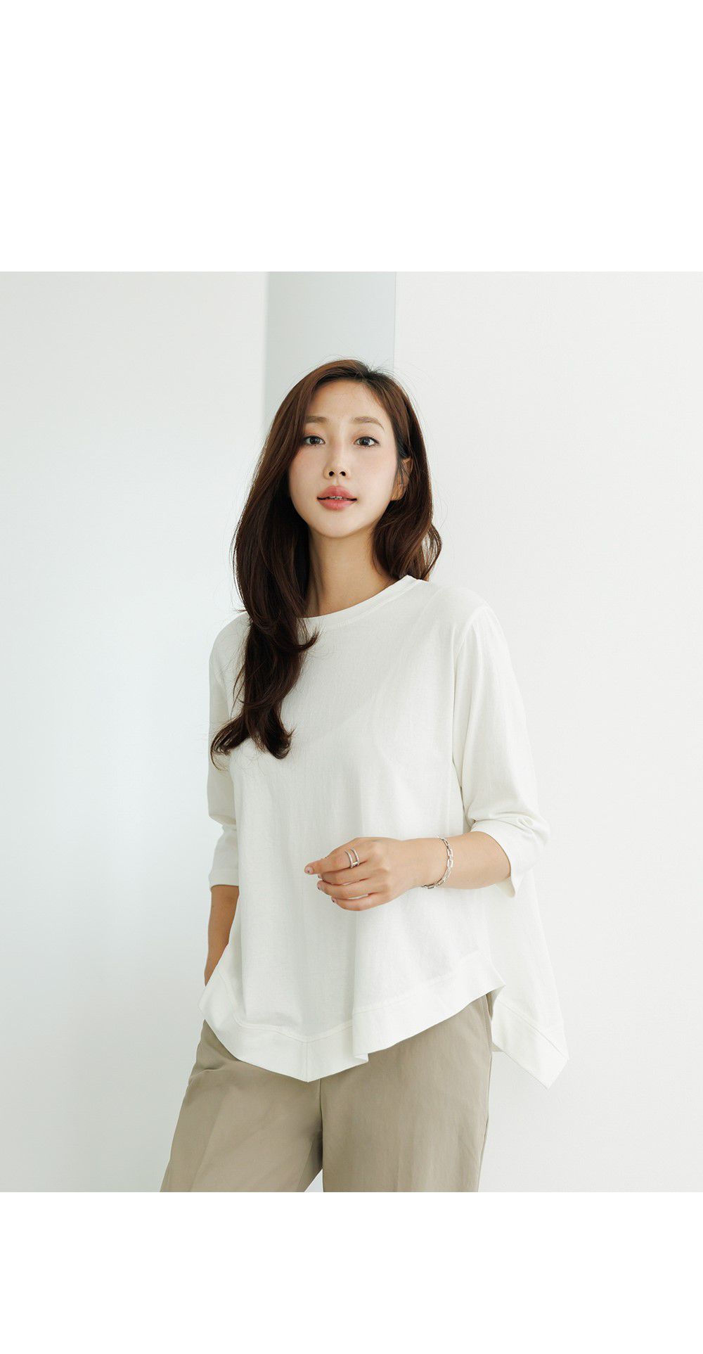 【C55314】韓國DED 不對稱傘狀上衣-素面A字圓領不規則下襬七分袖