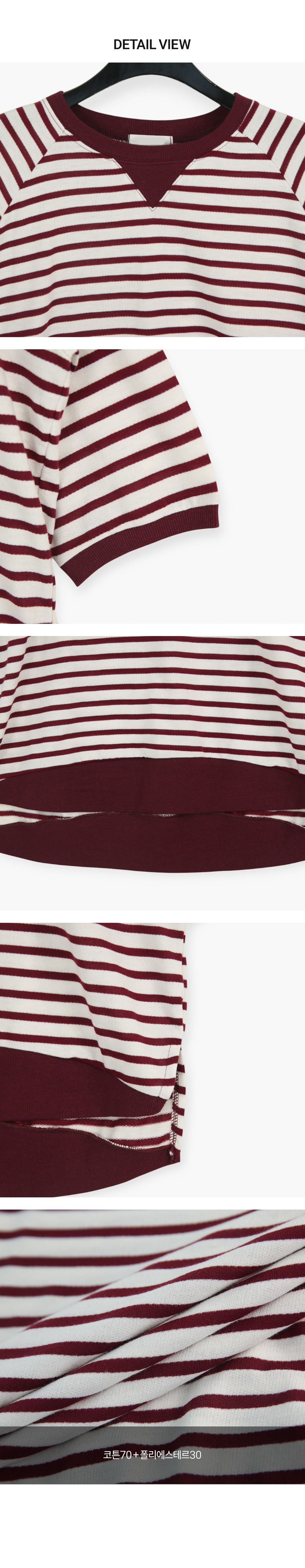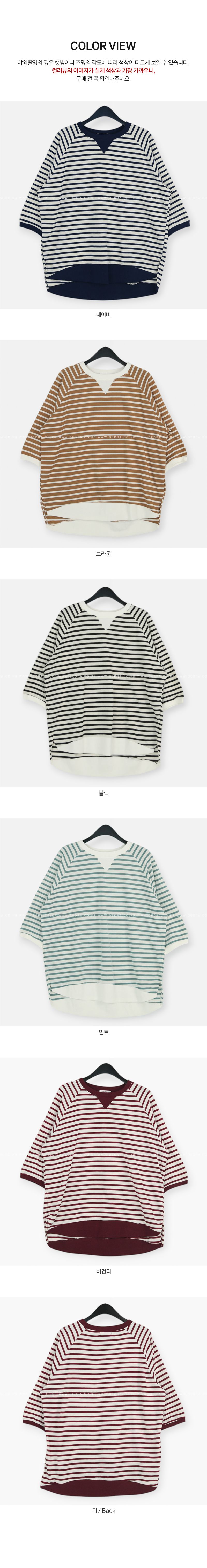 滾邊圓領/三角加固/弧形下襬/寬鬆長版/前短後長/側開衩/連肩袖/寬袖/毛圈棉 - 休閒居家配色條紋上衣條文T恤長版條紋上衣寬鬆大尺碼上衣七分袖上衣棕色薄荷色黑色深藍色酒紅色