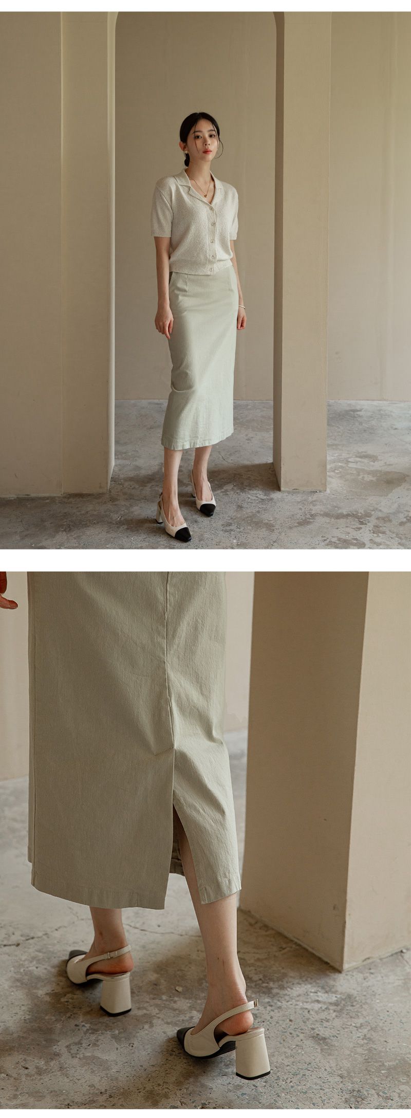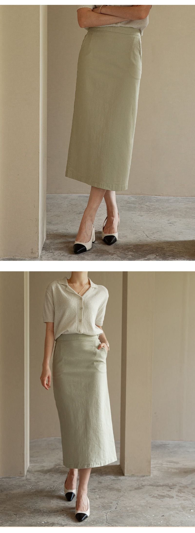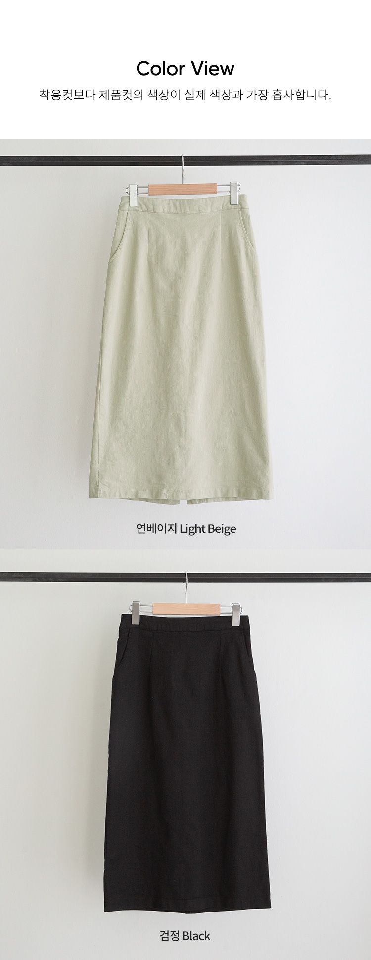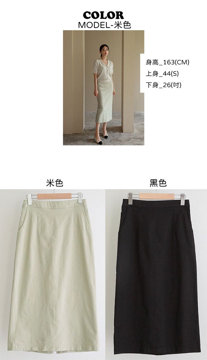 兩種尺寸/後腰鬆緊/後腰半圈鬆緊/雙口袋/包臀裙/後開衩 - 休閒OL上班族婚禮簡約百搭素面雙車線窄裙後開衩長裙多尺寸FL米色黑色