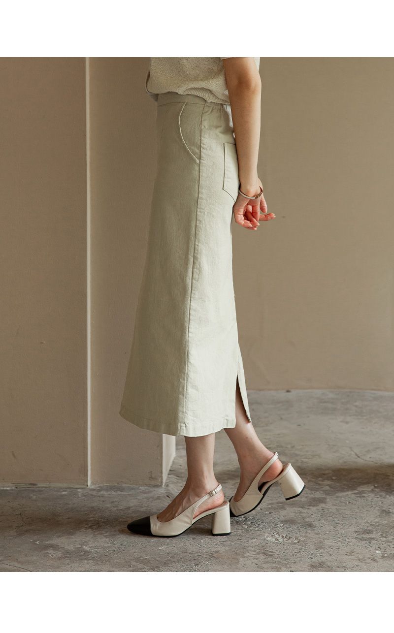 【C55330】韓國CAN 雙車線窄裙-素面後腰鬆緊OL雙口袋後開衩長裙★★