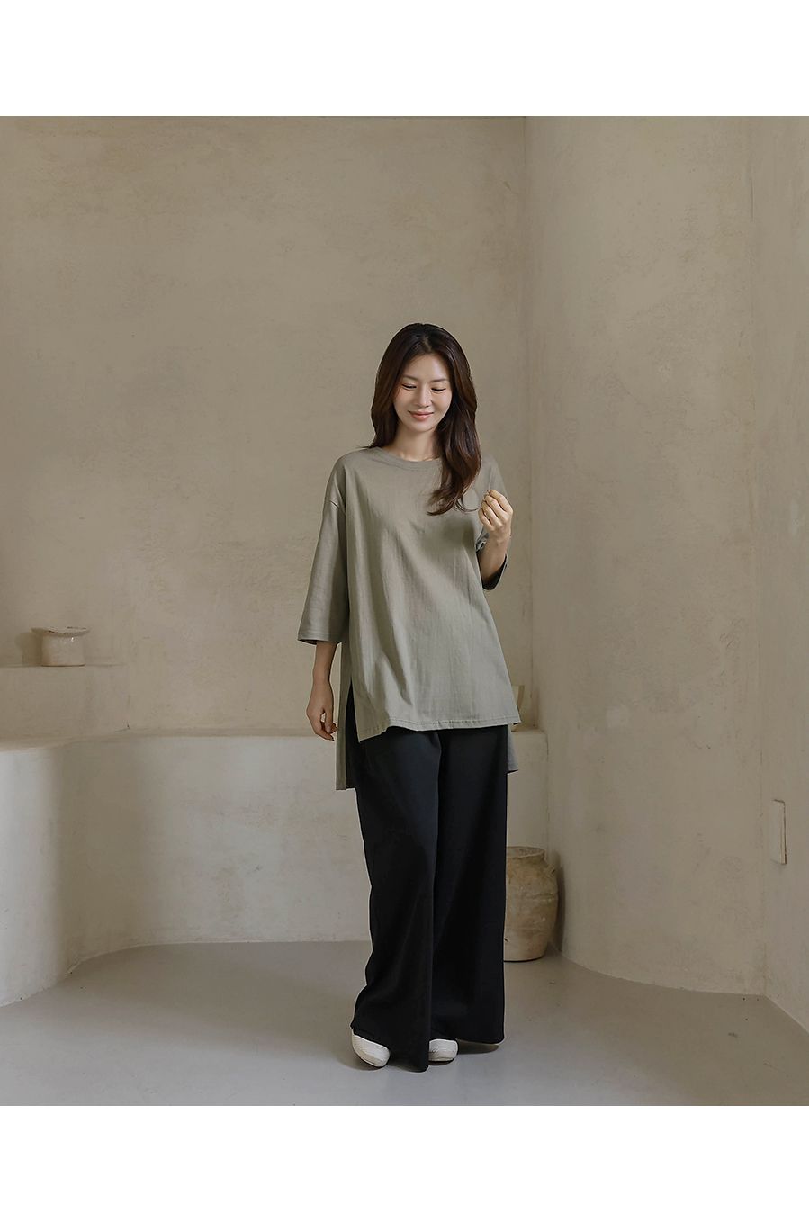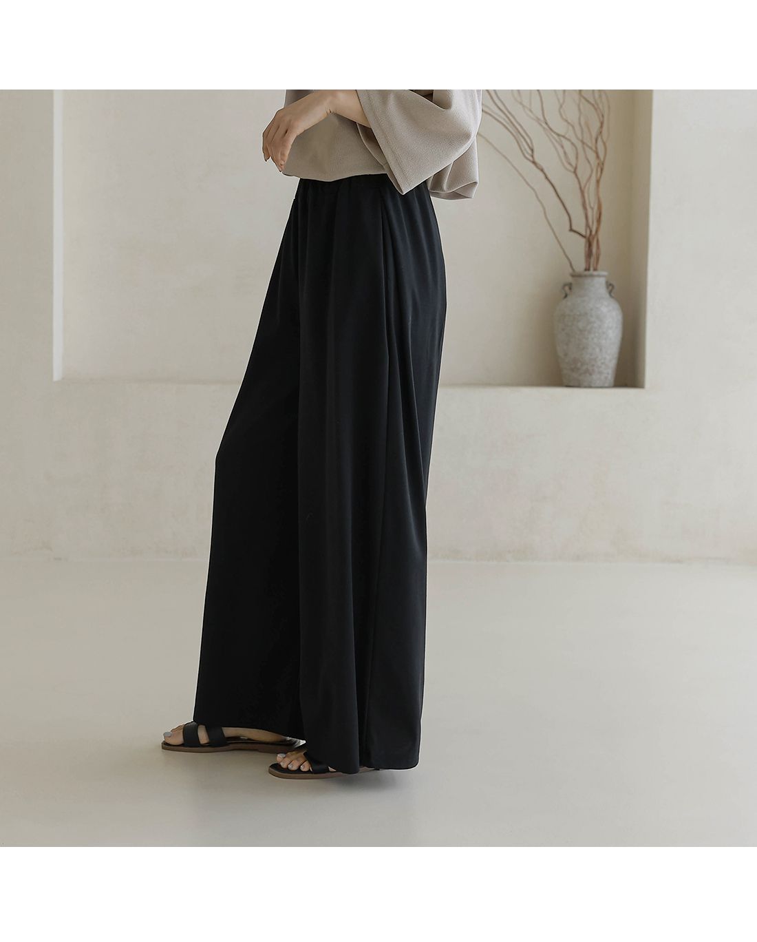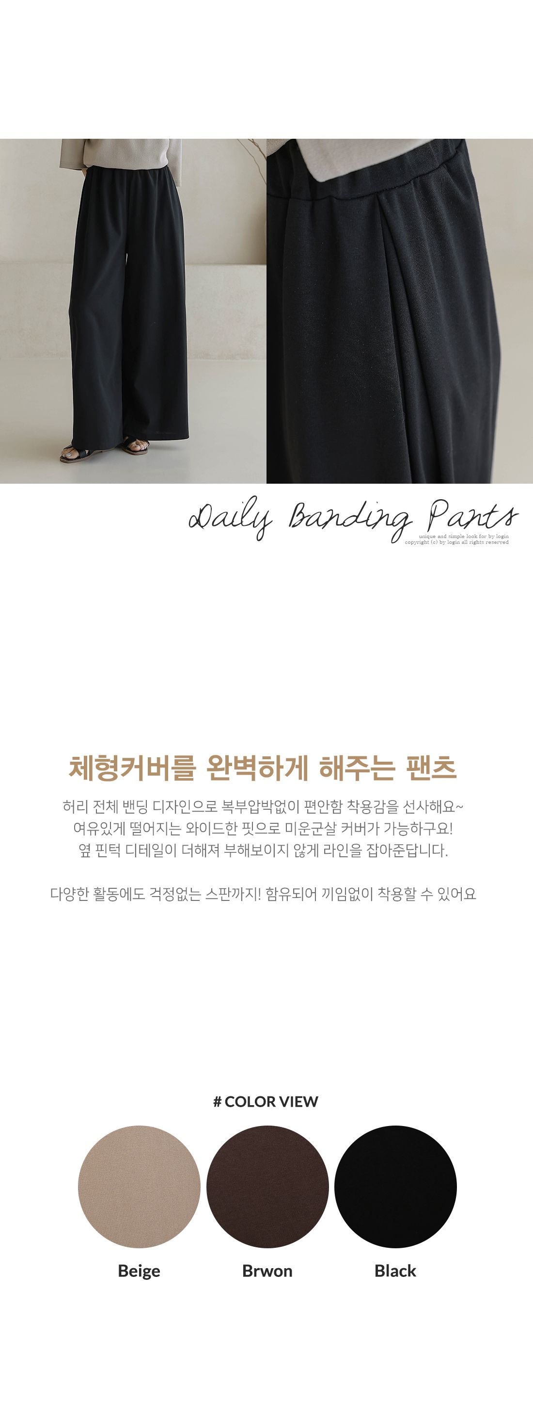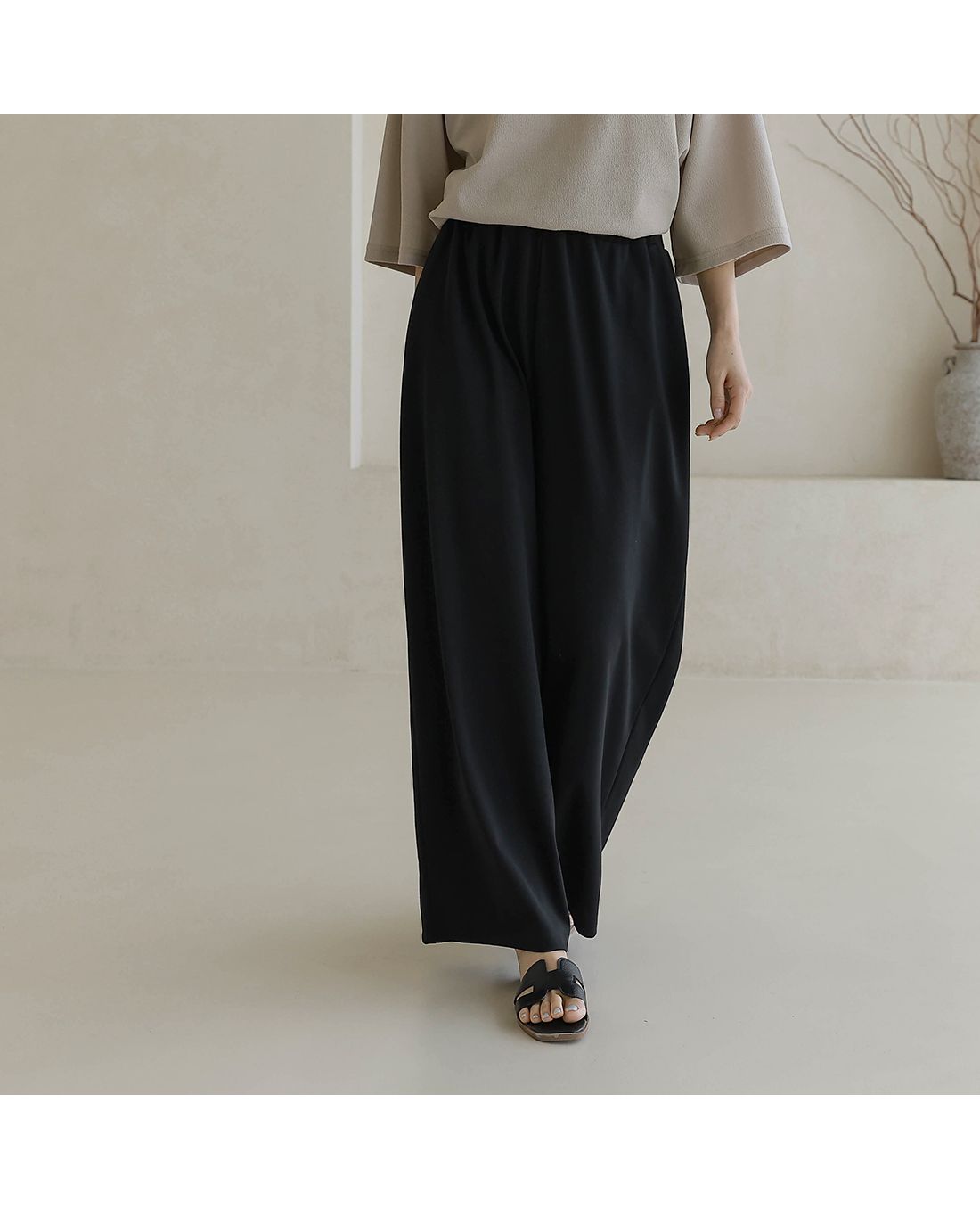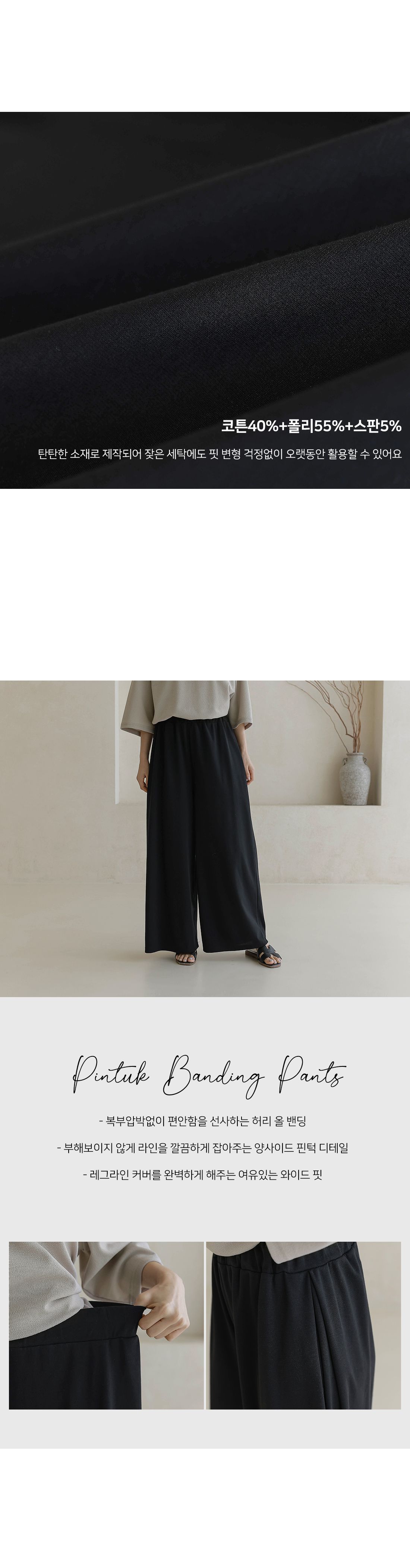 【C55335】韓國BLG 鬆緊腰寬褲-素面寬鬆雙口袋全腰鬆緊闊腿長褲