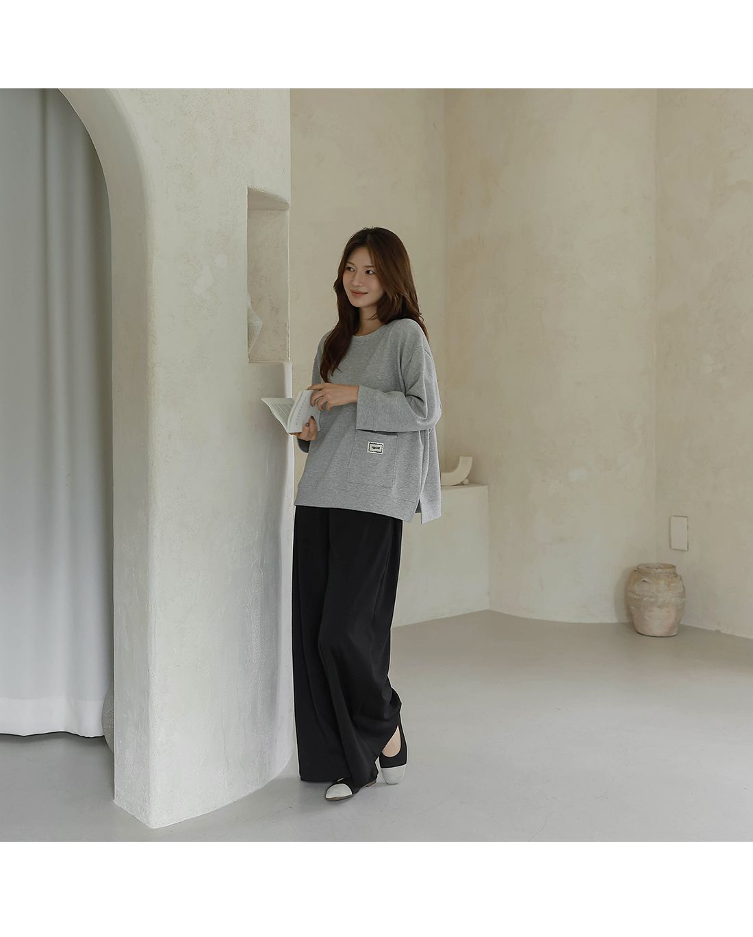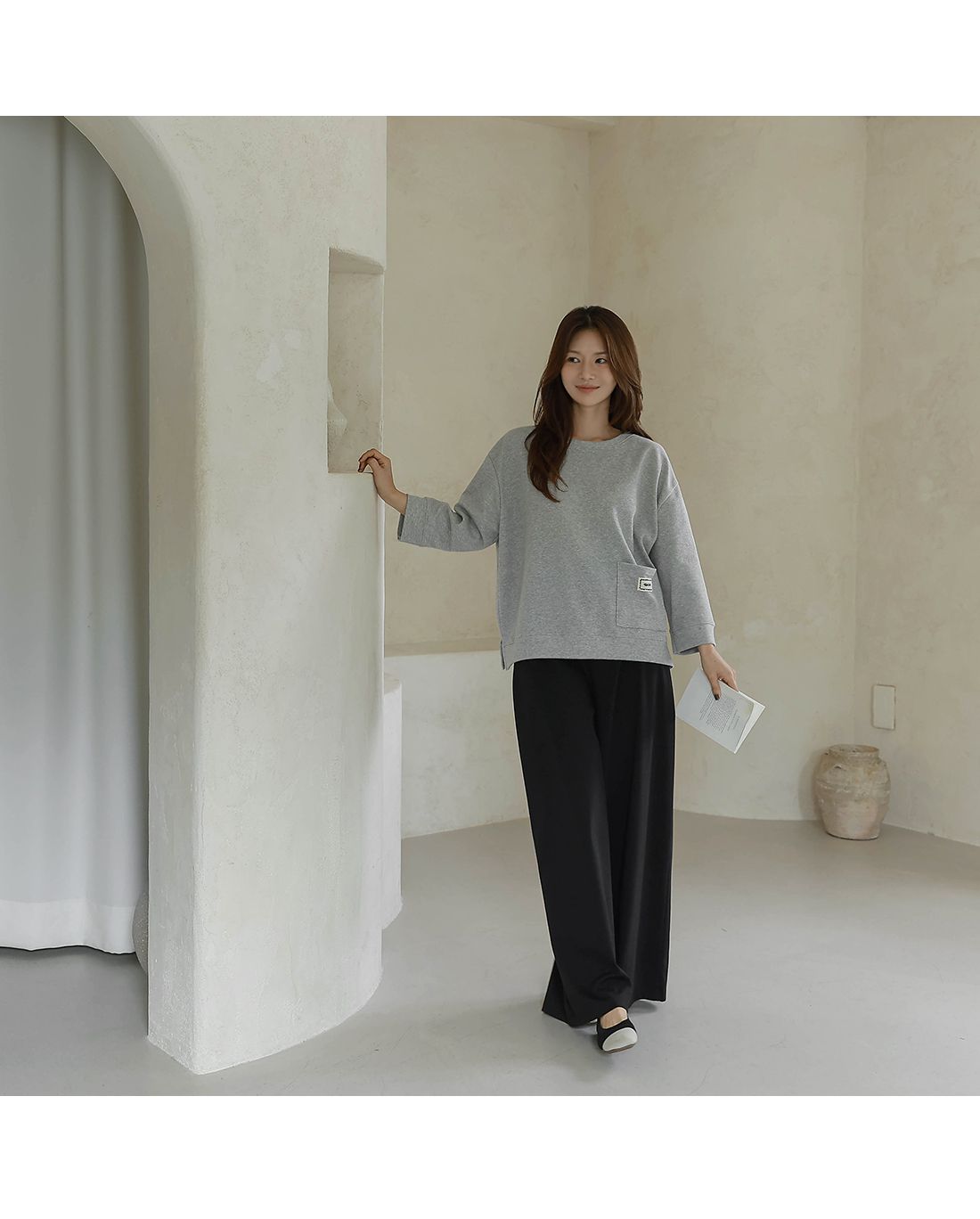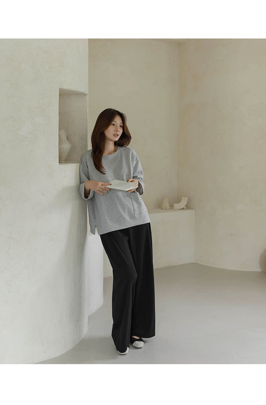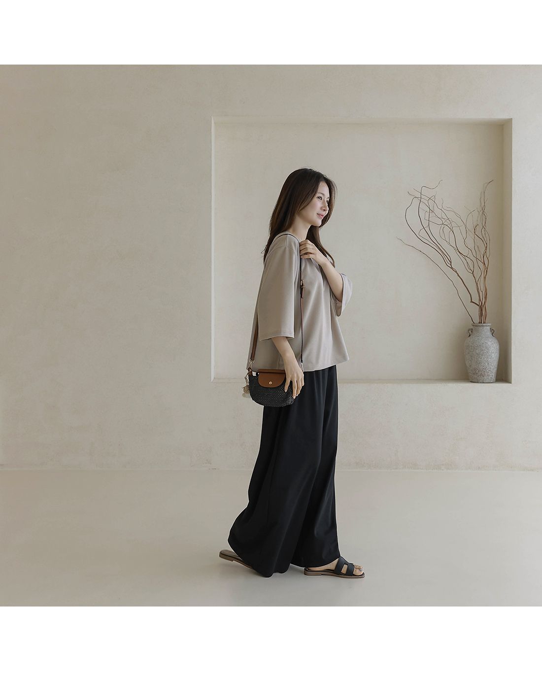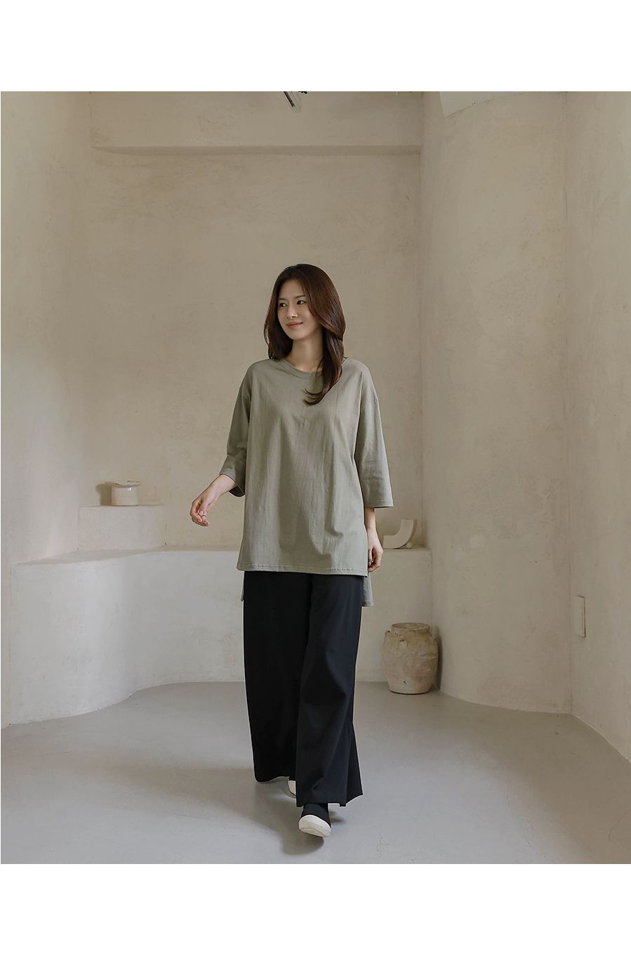 【C55335】韓國BLG 鬆緊腰寬褲-素面寬鬆雙口袋全腰鬆緊闊腿長褲