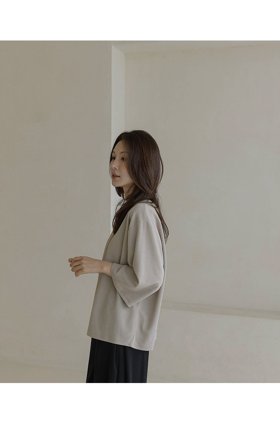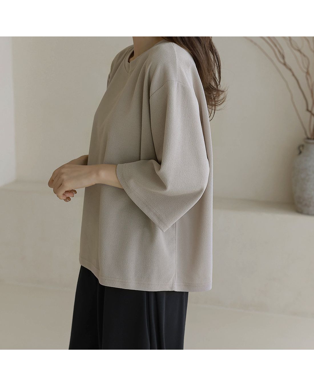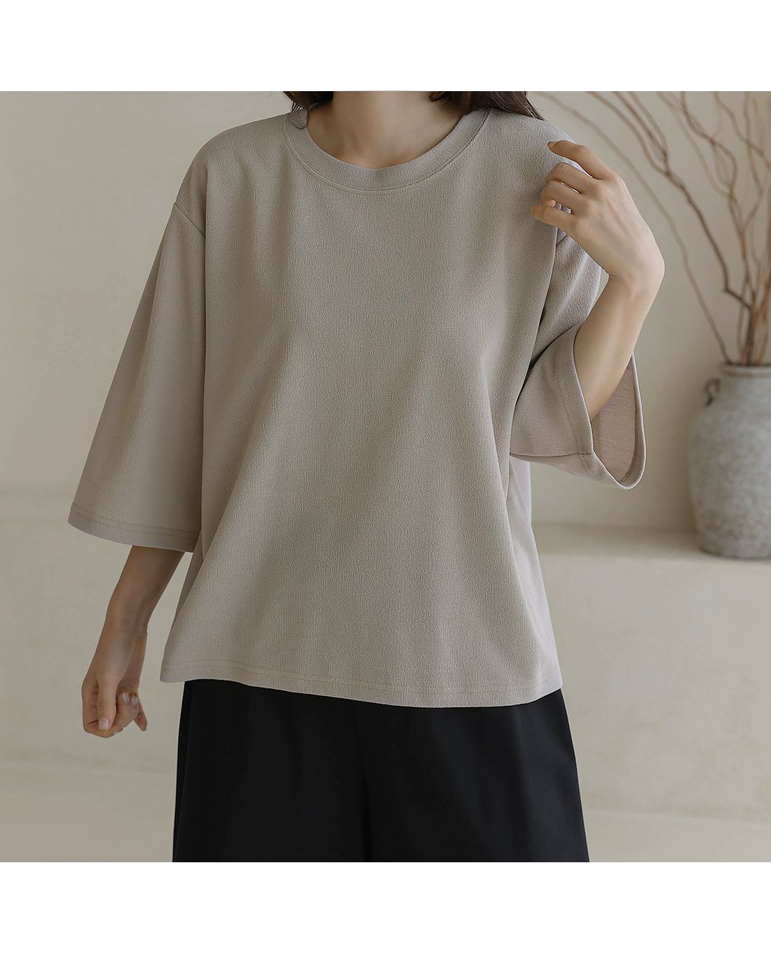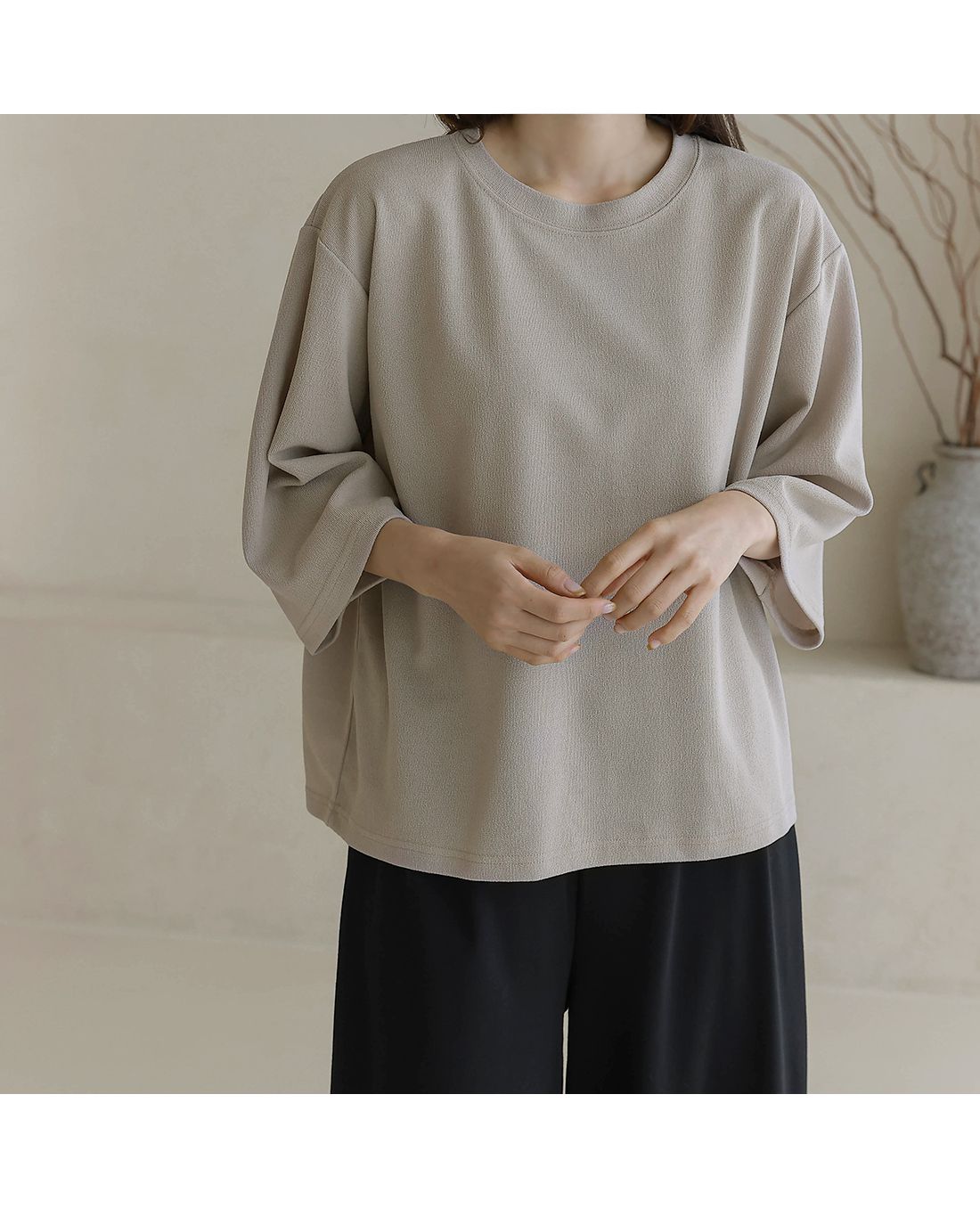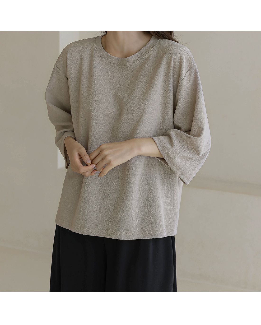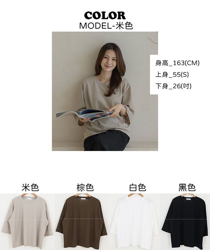 【C55342】韓國BLG 皺皺紋寬袖T恤-素面圓領落肩寬鬆七分袖上衣★★