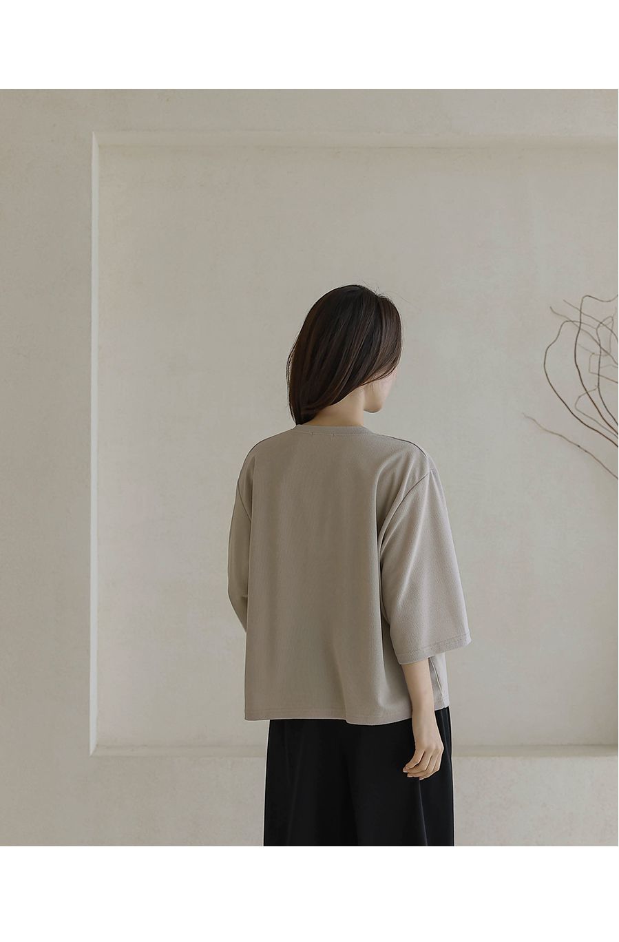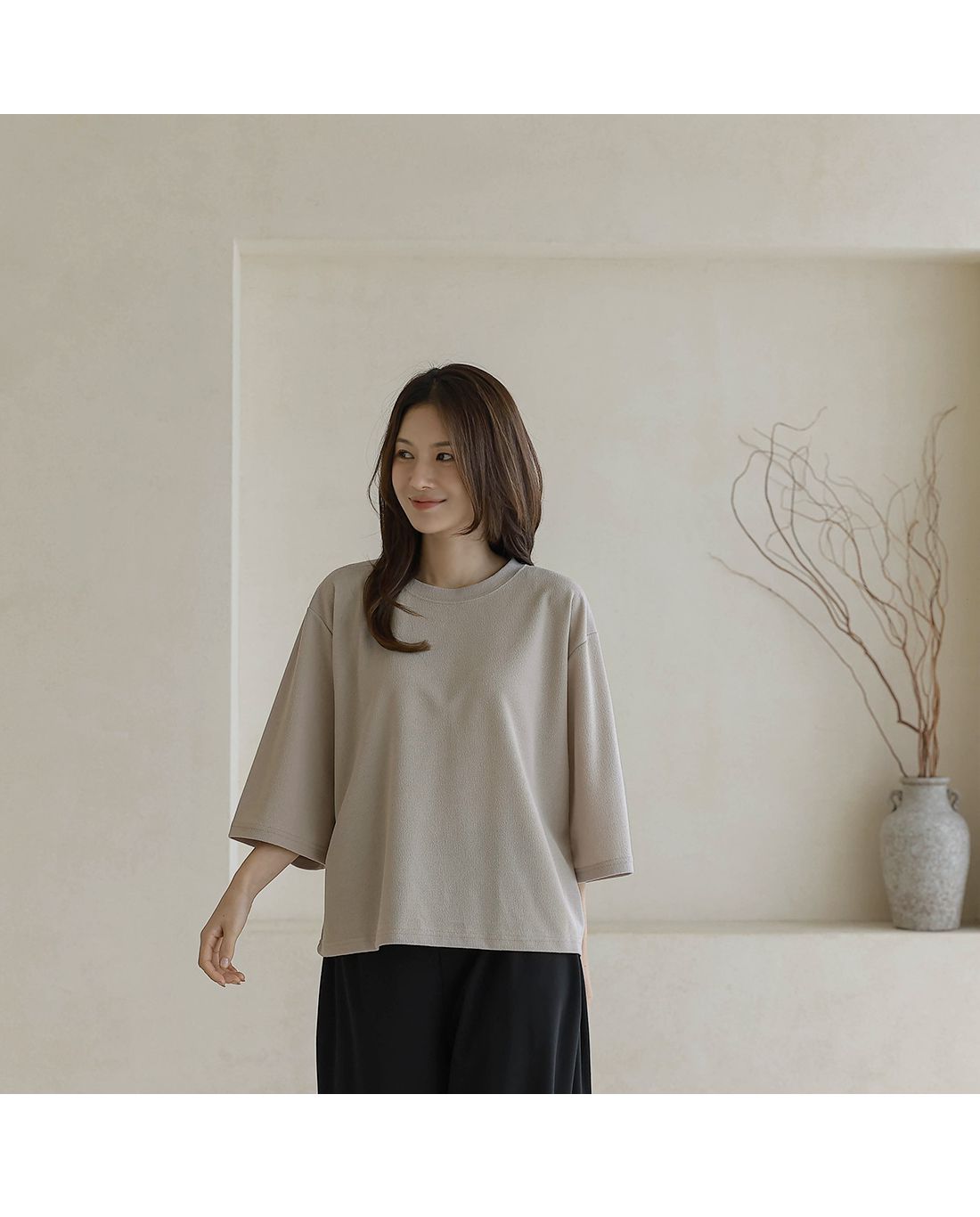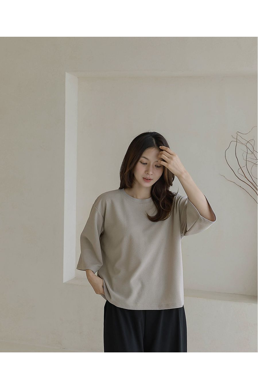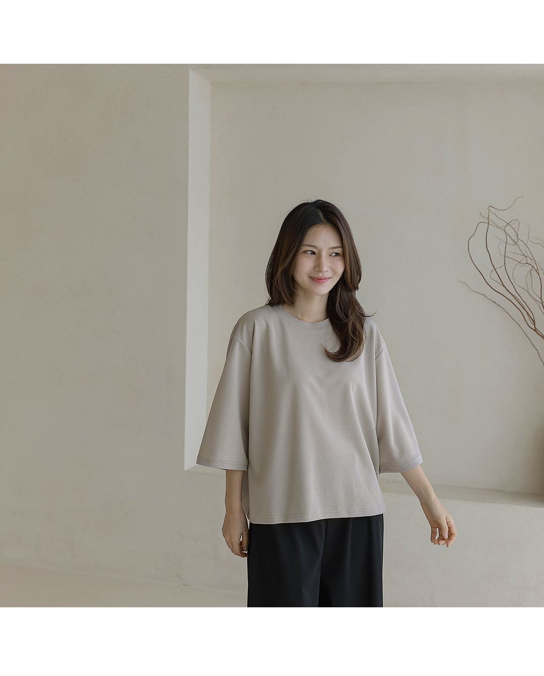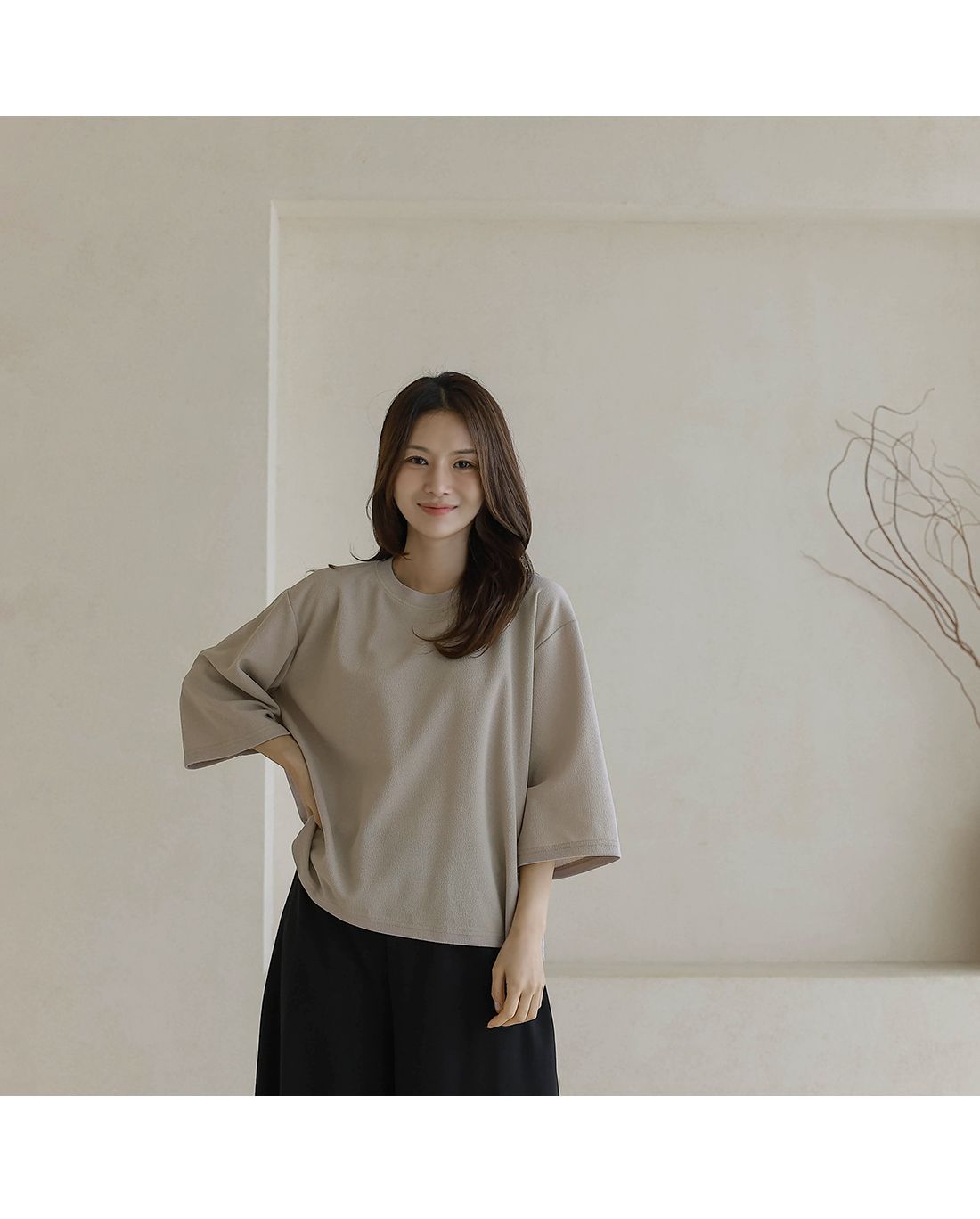 【C55342】韓國BLG 皺皺紋寬袖T恤-素面圓領落肩寬鬆七分袖上衣★★
