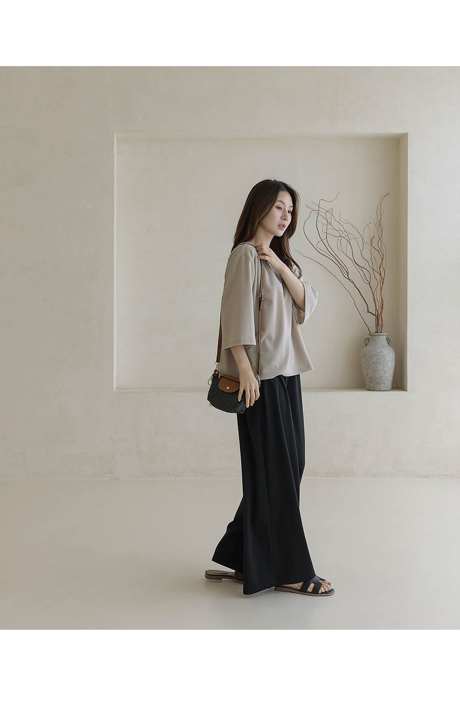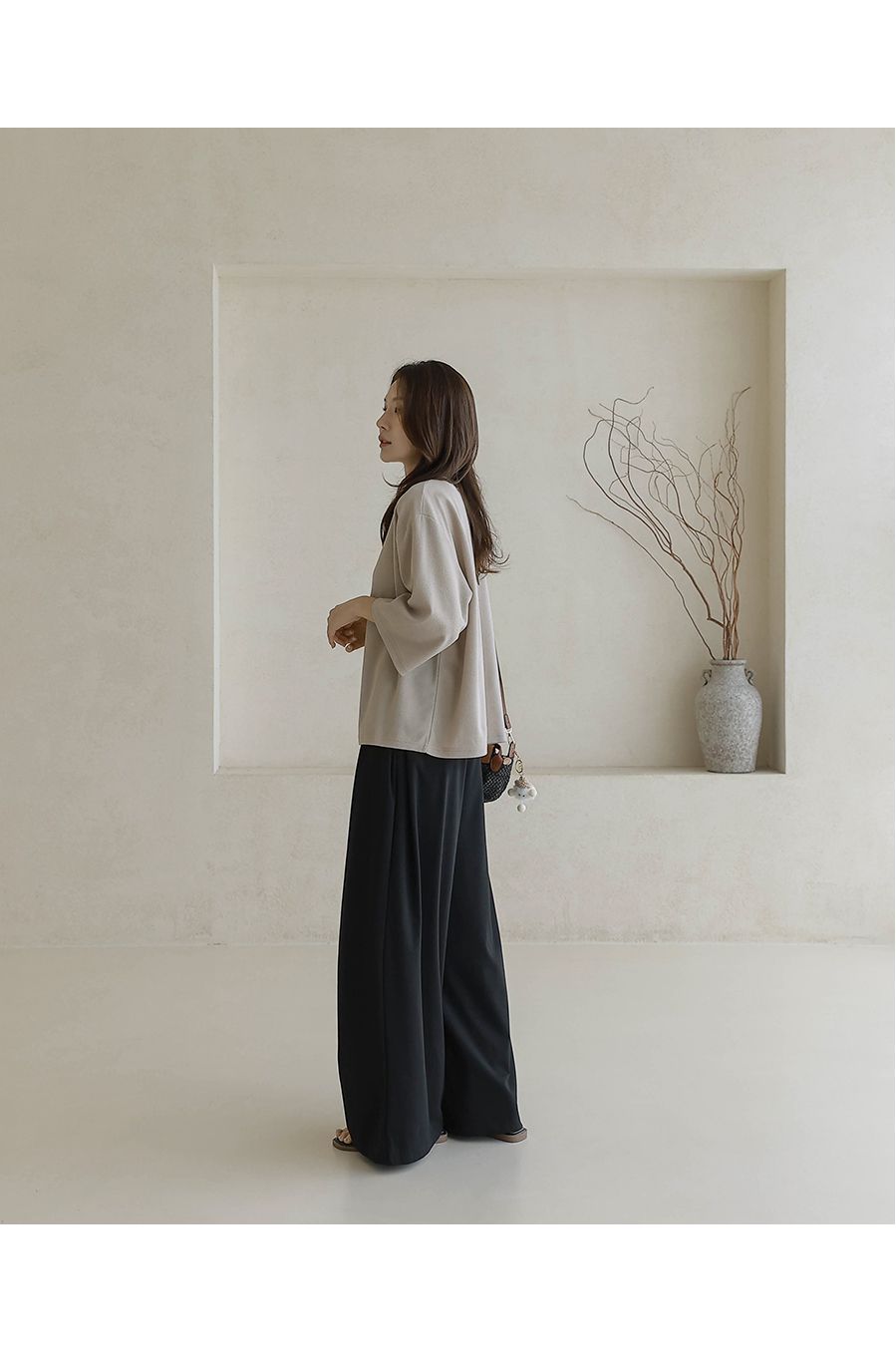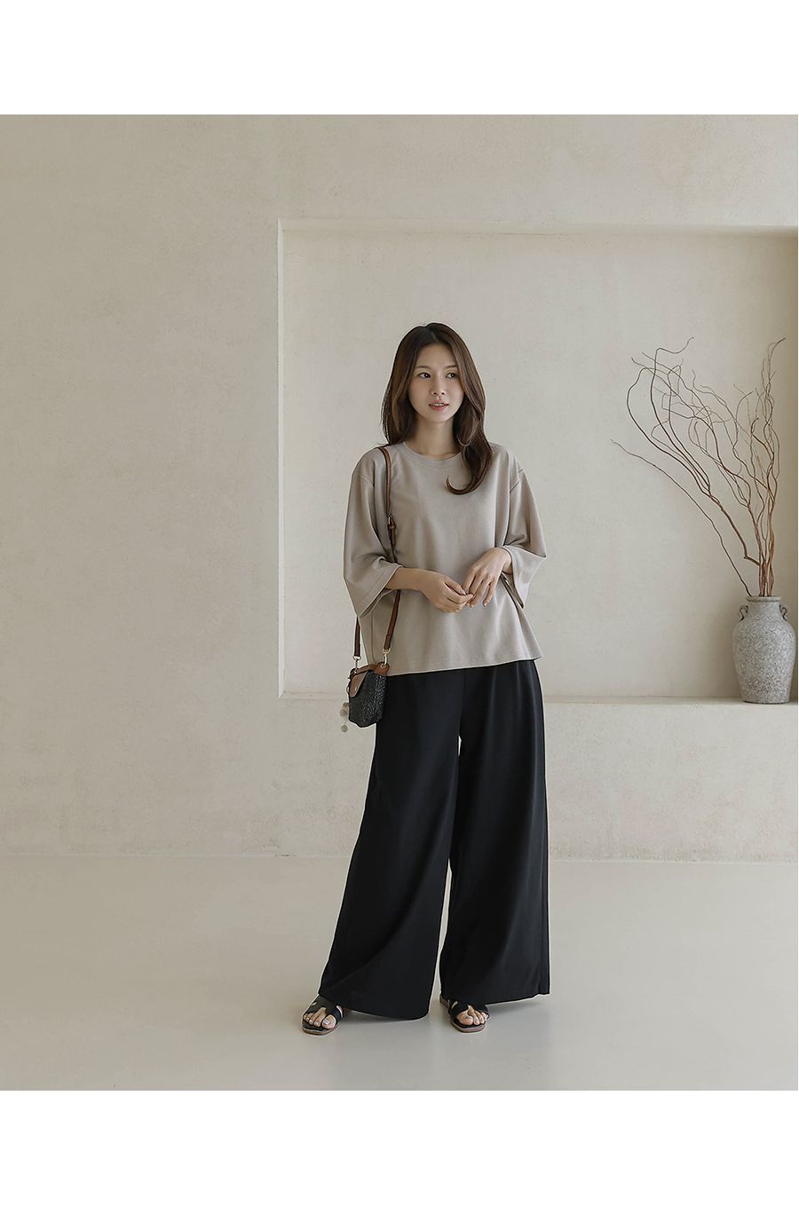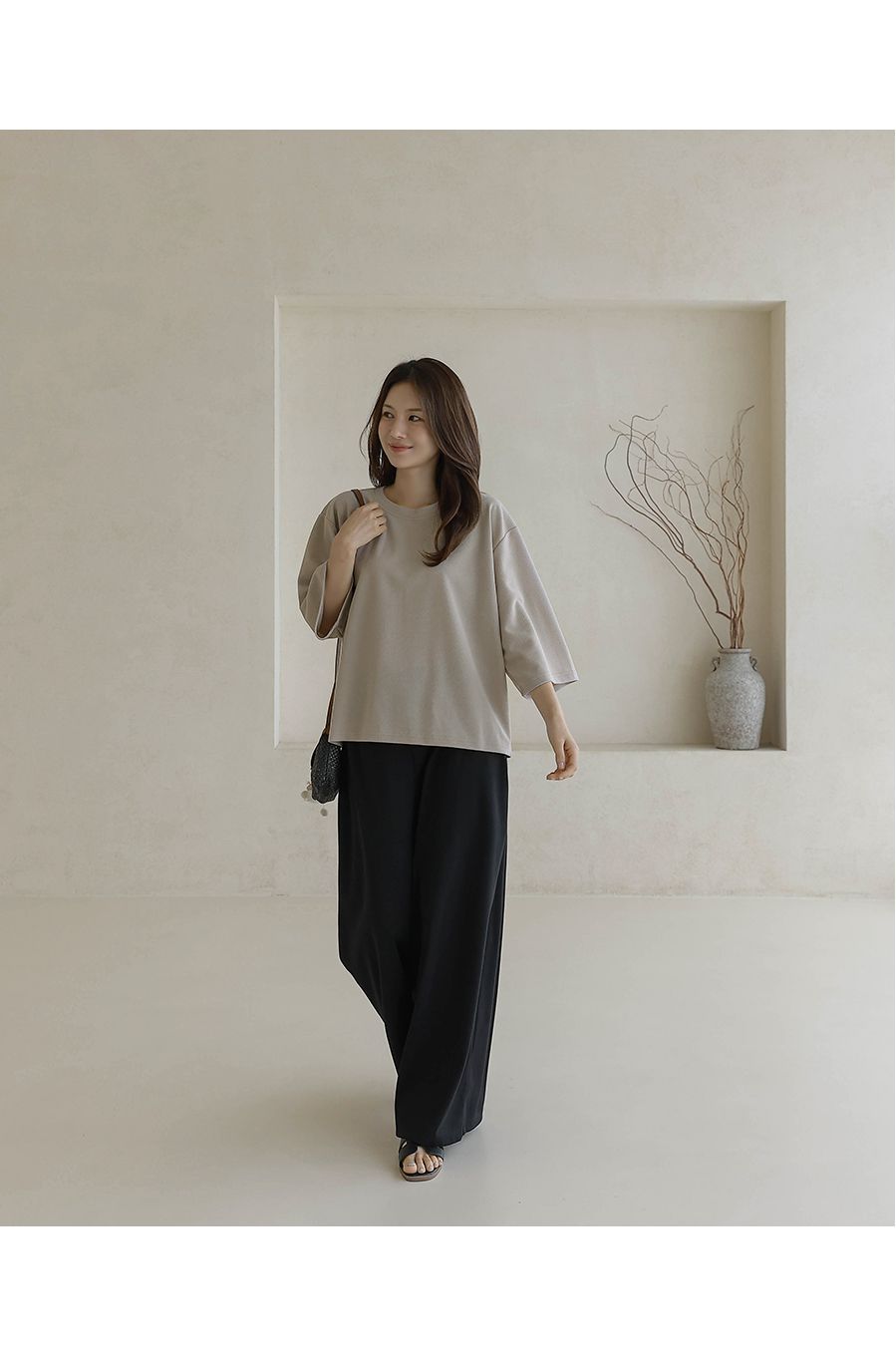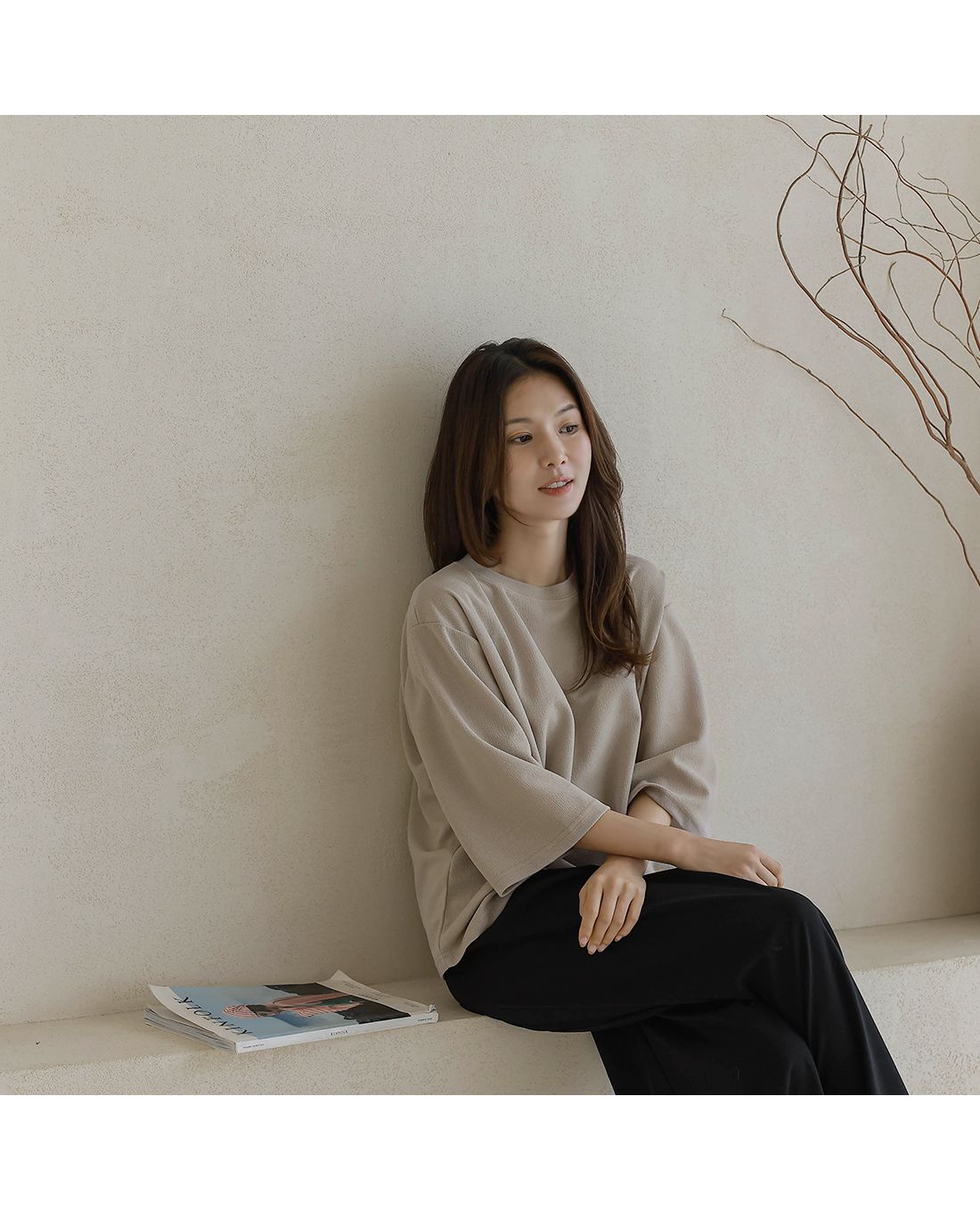 【C55342】韓國BLG 皺皺紋寬袖T恤-素面圓領落肩寬鬆七分袖上衣★★