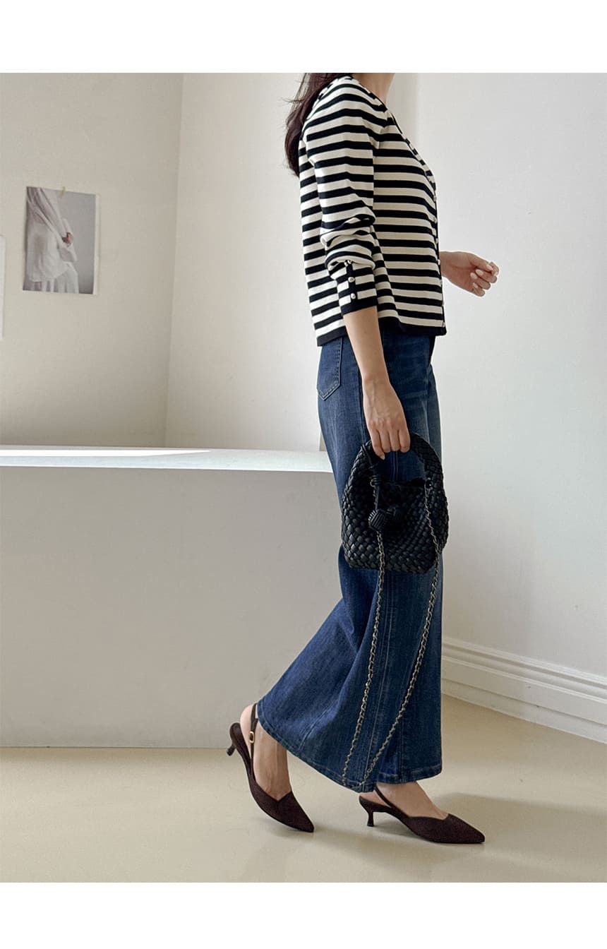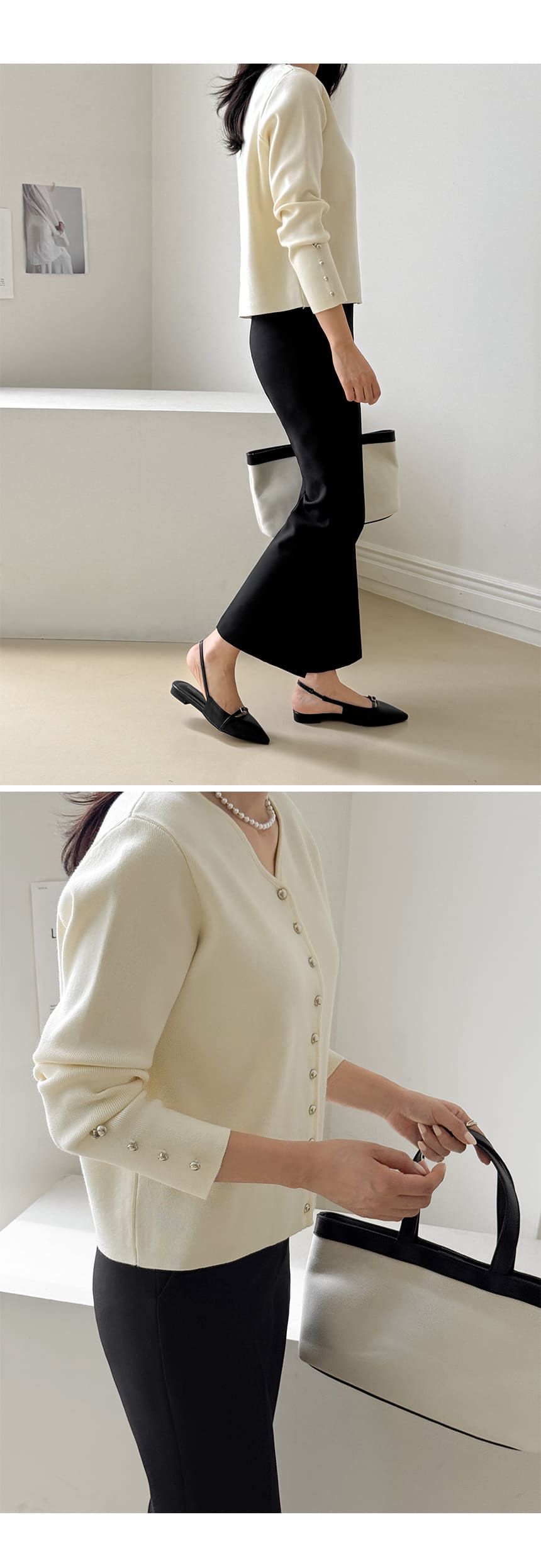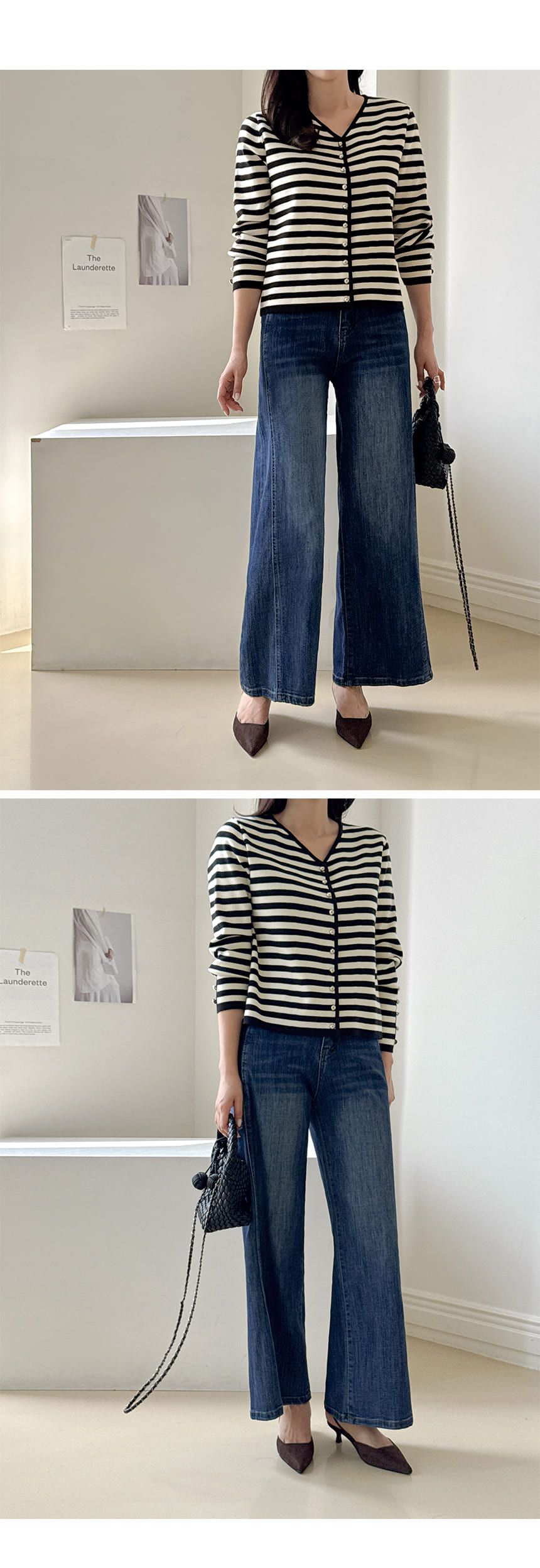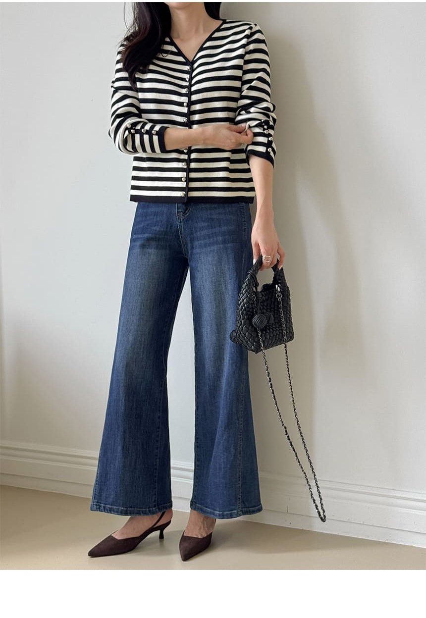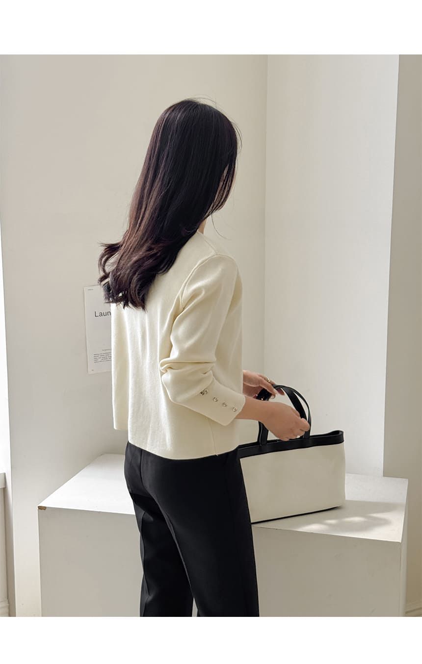 條紋色&素色/V領/開襟排釦/立體金屬鈕釦/袖釦造型 - 休閒居家簡約百搭素面配色條紋上衣條紋外套條紋針織衫針織上衣開襟衫立體排釦針織衫長袖上衣外套條紋色奶油色黑色
