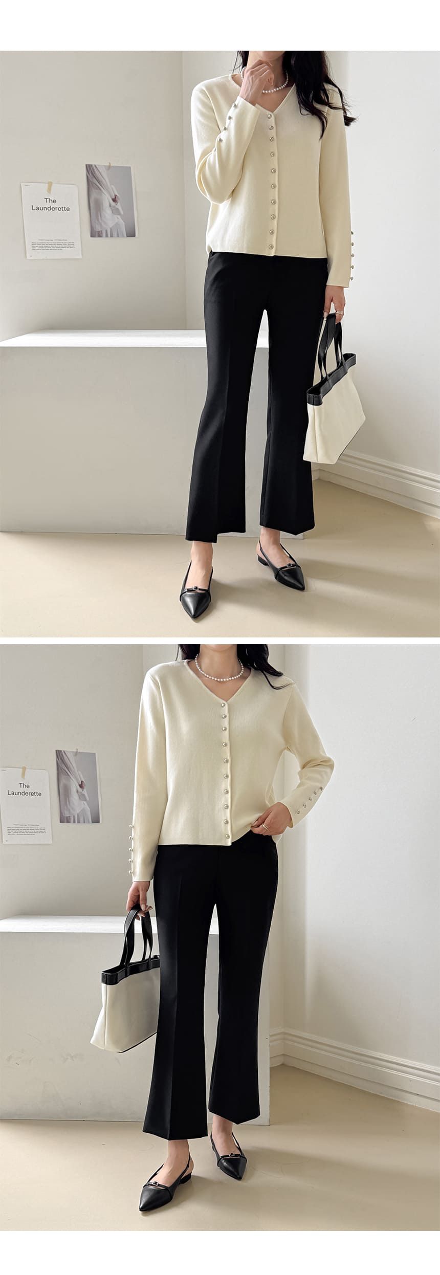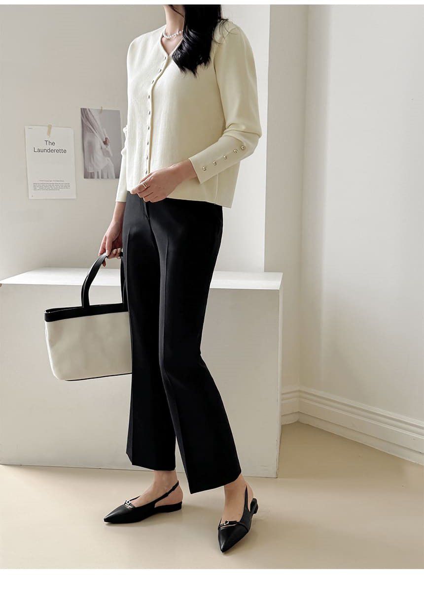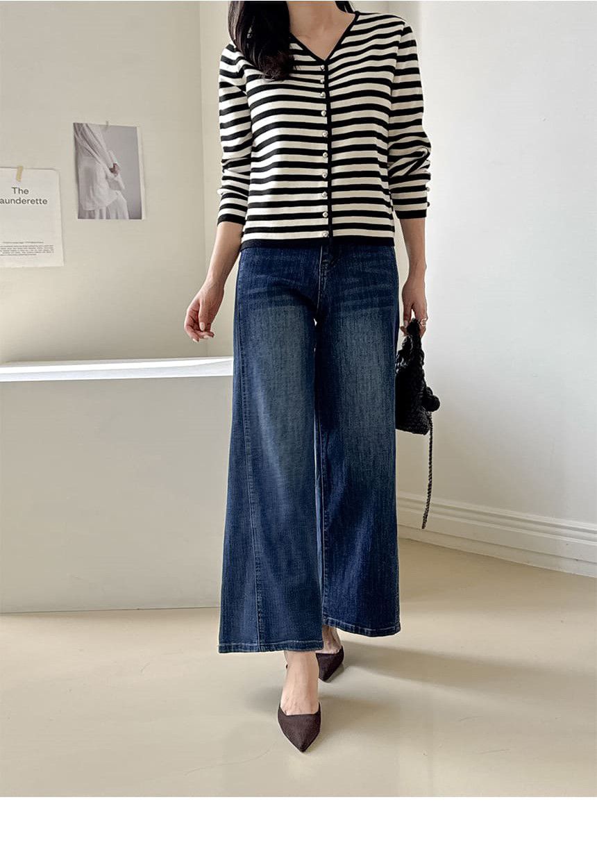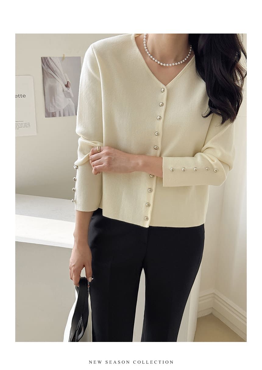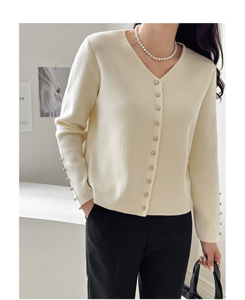 【C55360】韓國MAZ 立體排釦針織衫-條紋素面V領長袖上衣外套