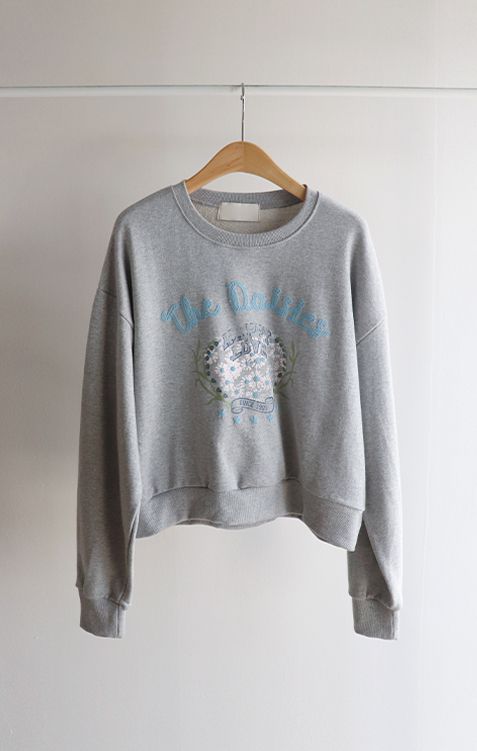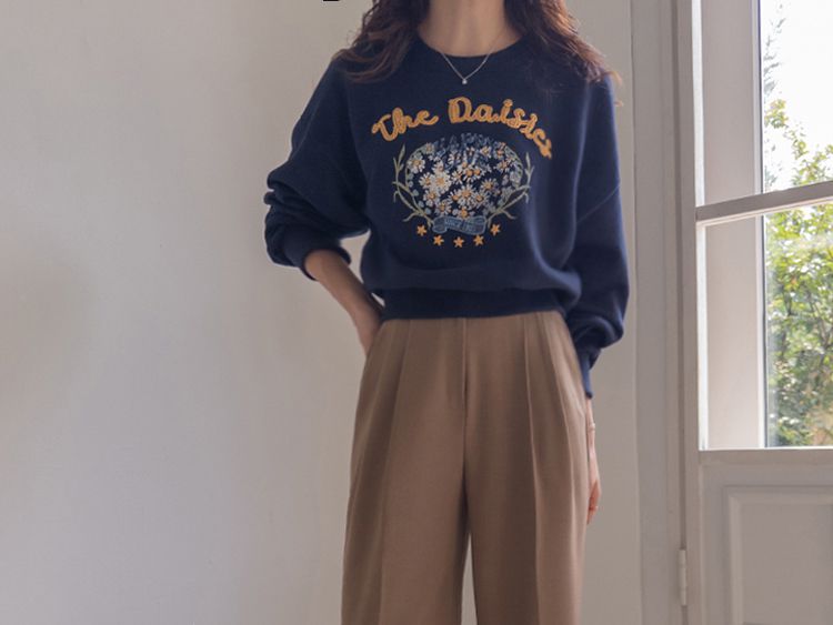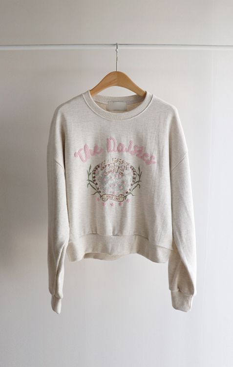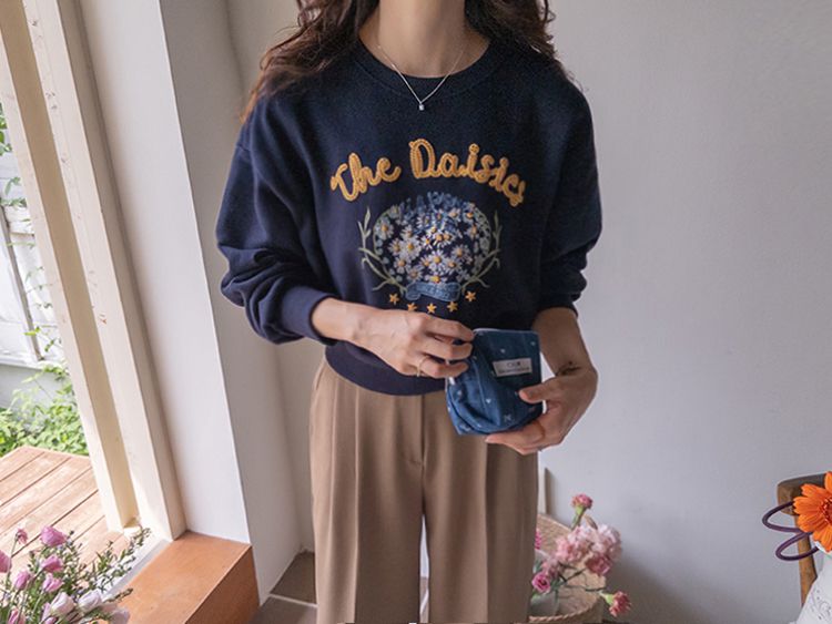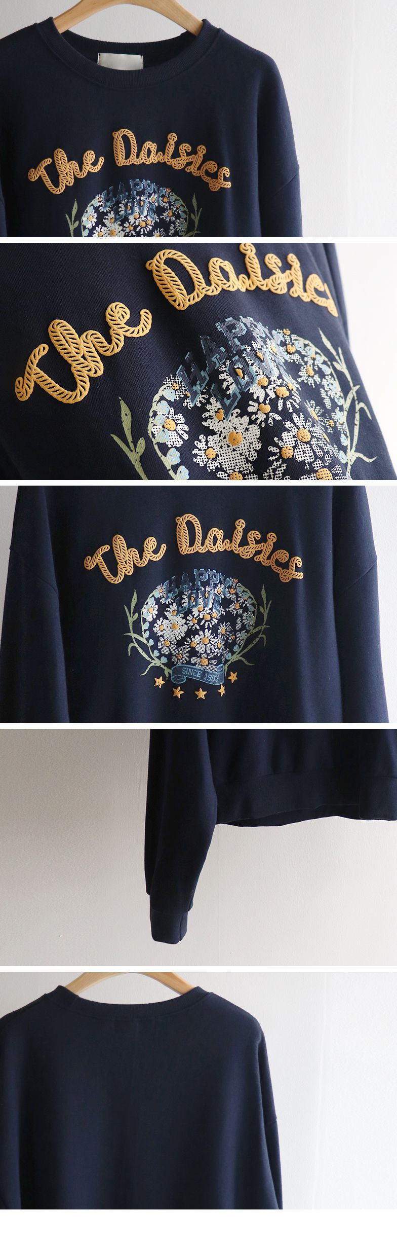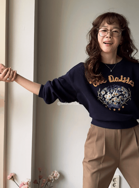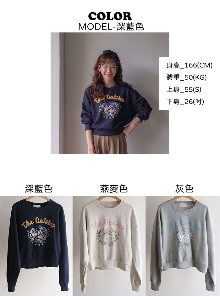 【C55365】韓國LEE 短版花花上衣-泡棉字母圓領寬鬆長袖棉質印花T恤