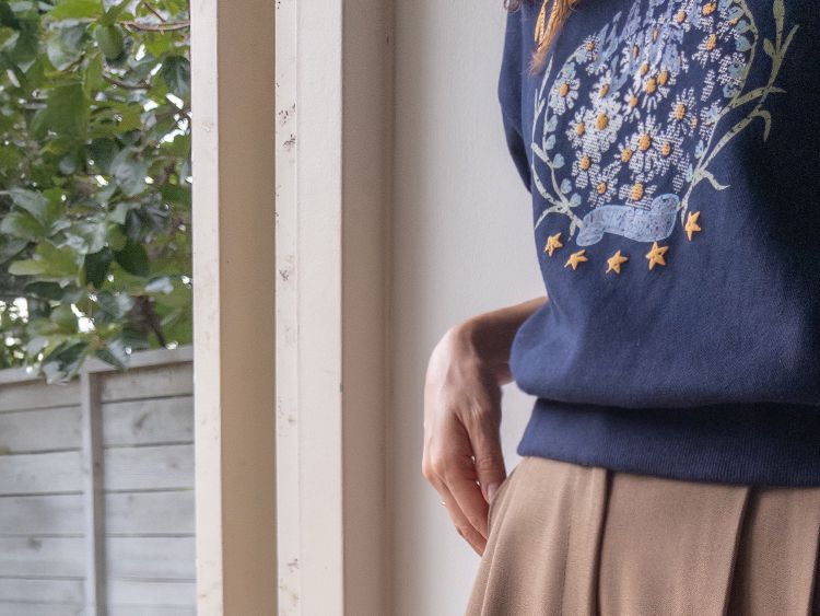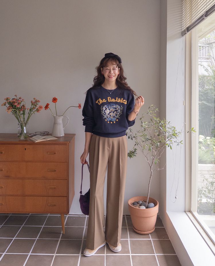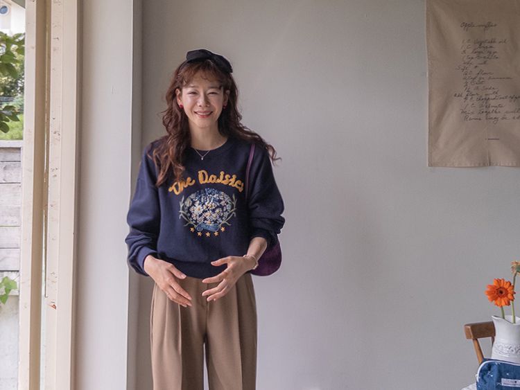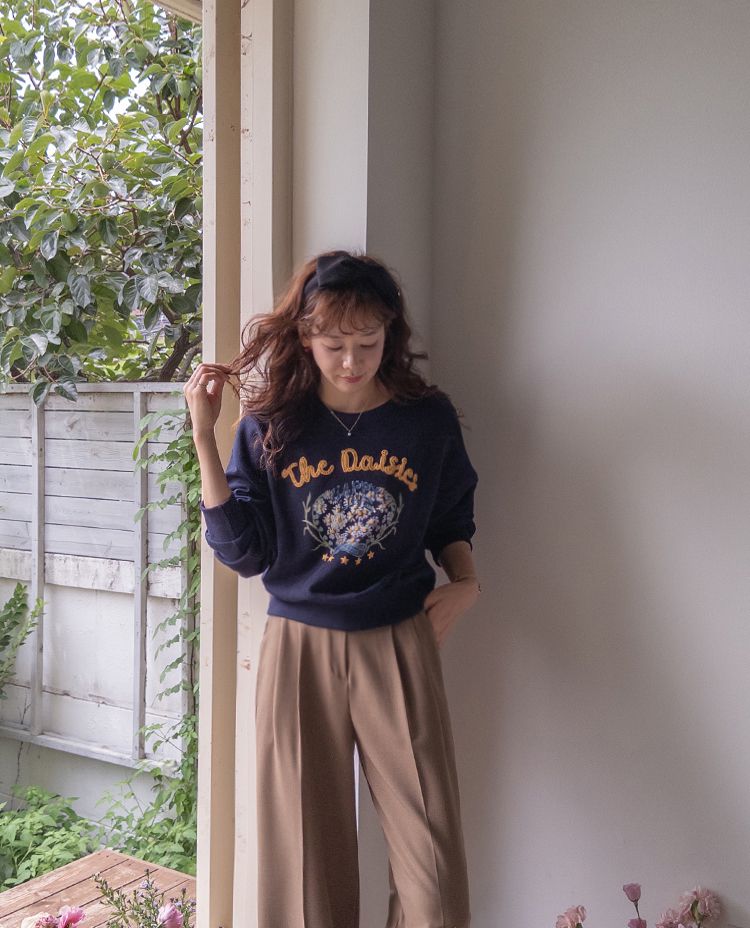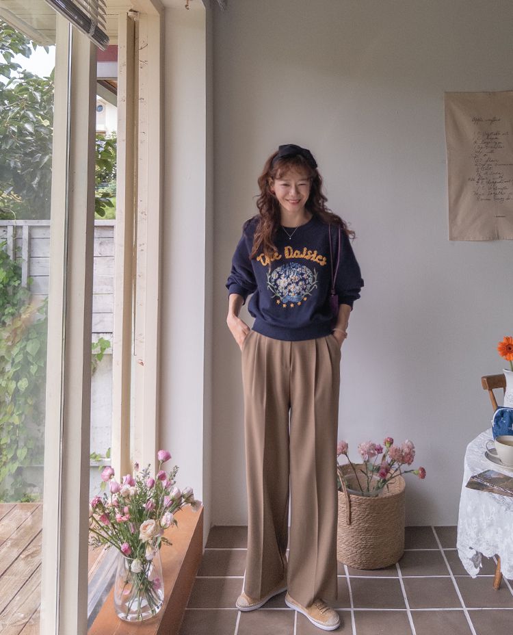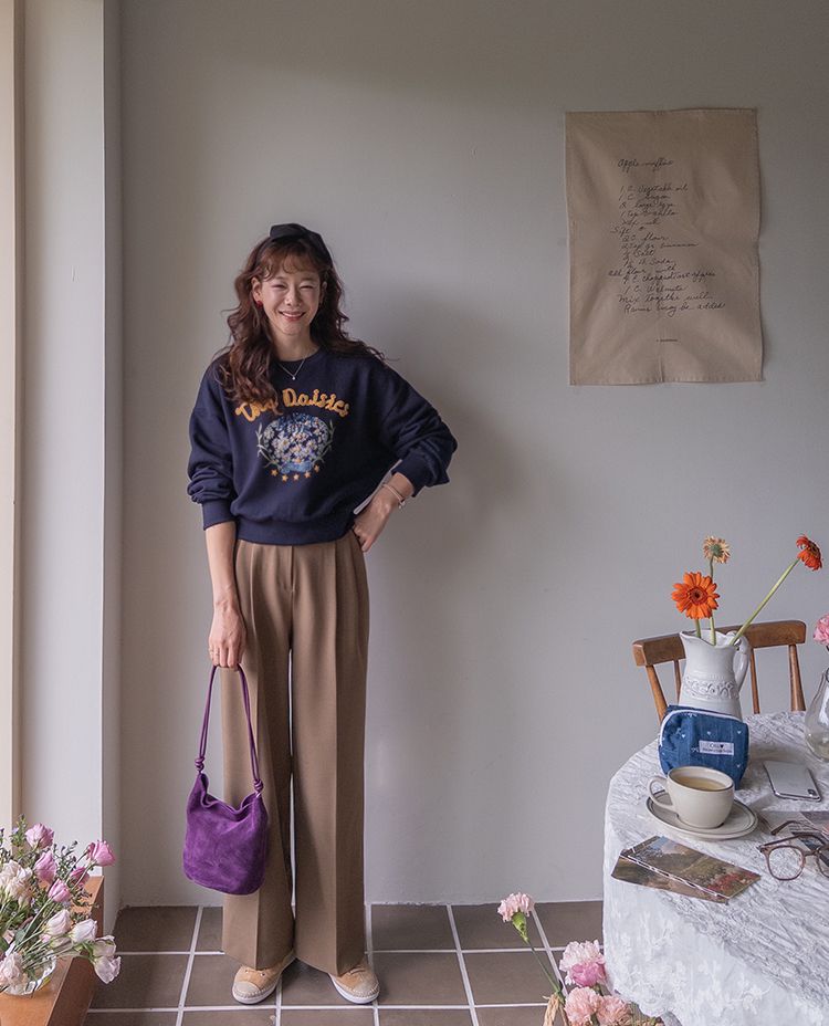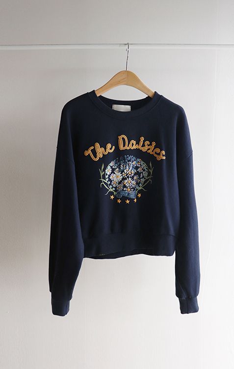 【C55365】韓國LEE 短版花花上衣-泡棉字母圓領寬鬆長袖棉質印花T恤
