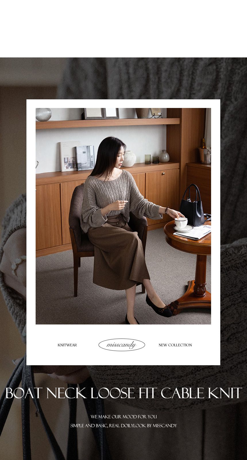 【C55366】韓國MCD 寬鬆麻花針織衫-慵懶一字領落肩長袖素面上衣★★