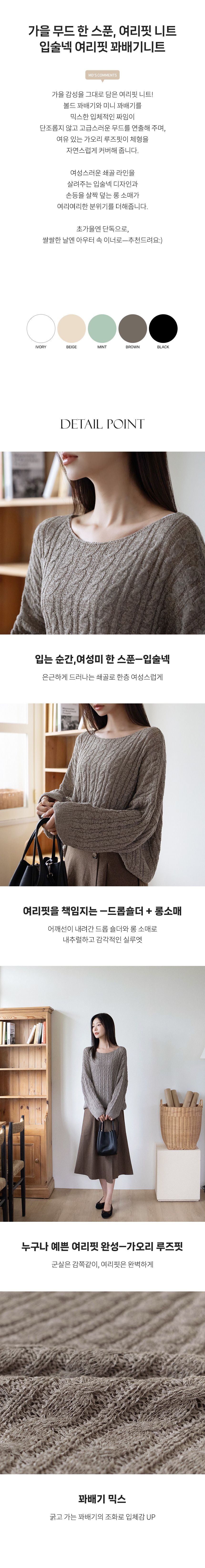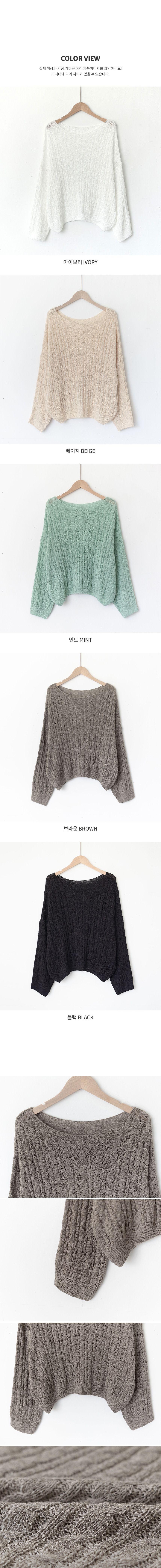 慵懶一字領/落肩長袖/大U領/鉤針編織/麻花編織紋 - 休閒居家簡約百搭素面寬鬆麻花針織衫針織上衣落肩長袖上衣薄荷色象牙色米色棕色黑色