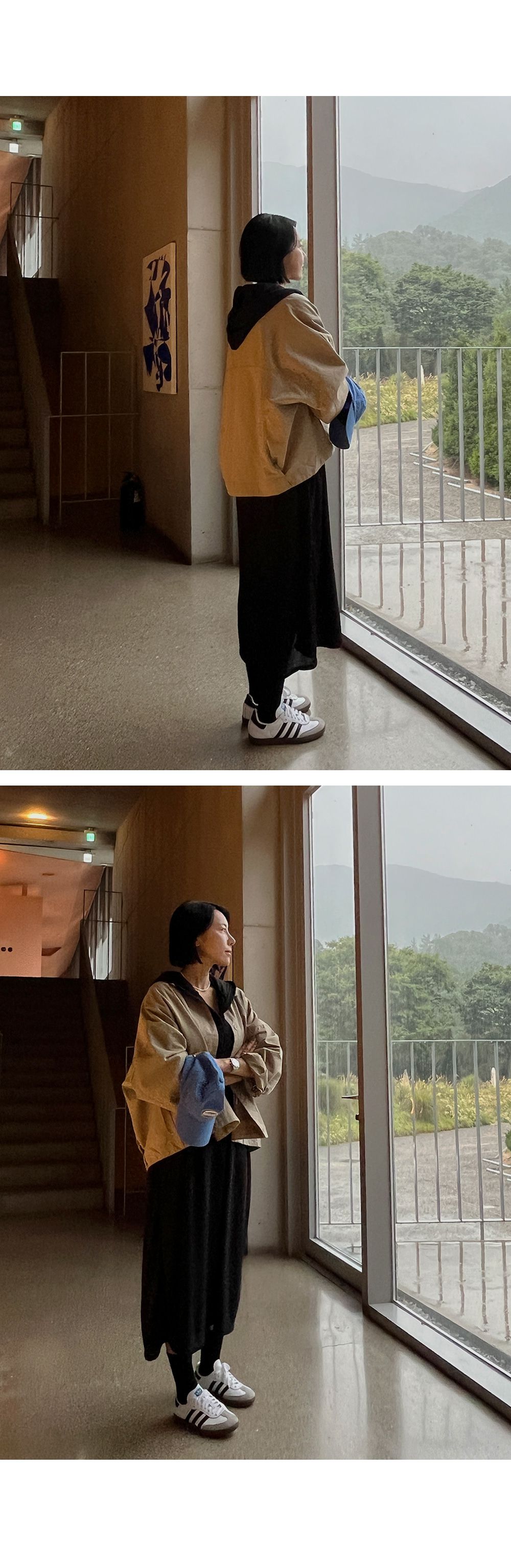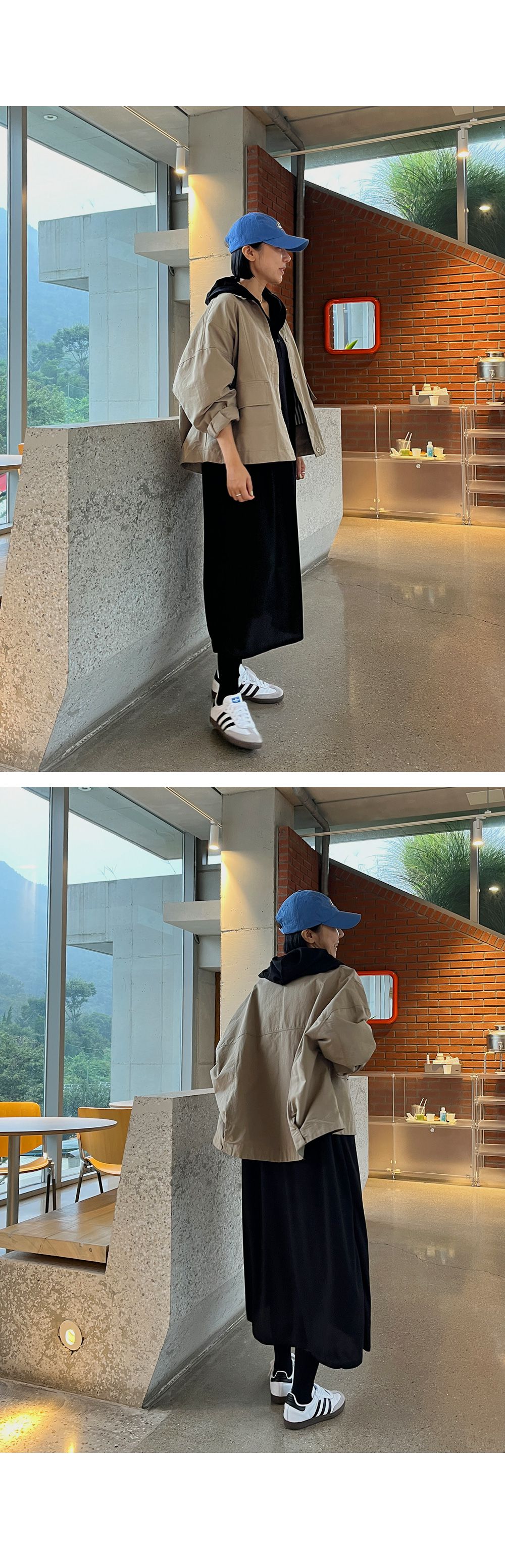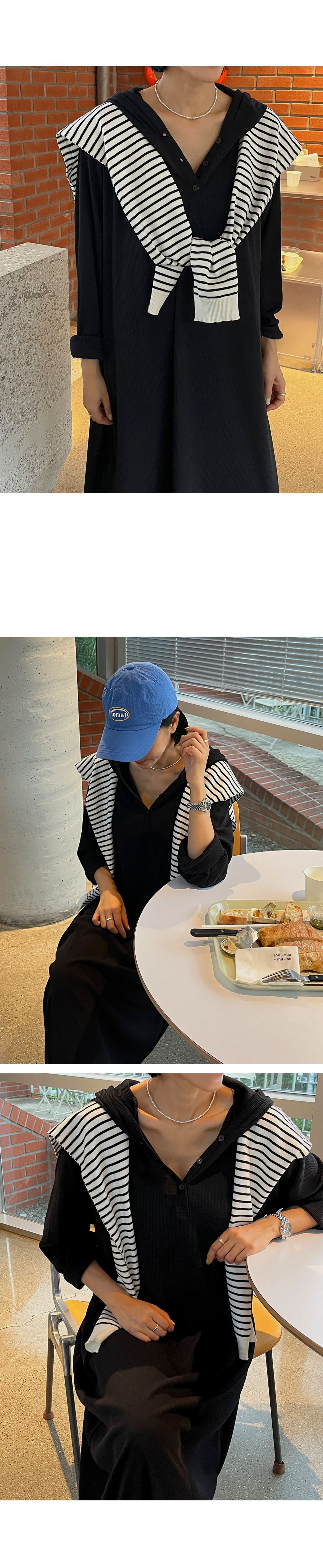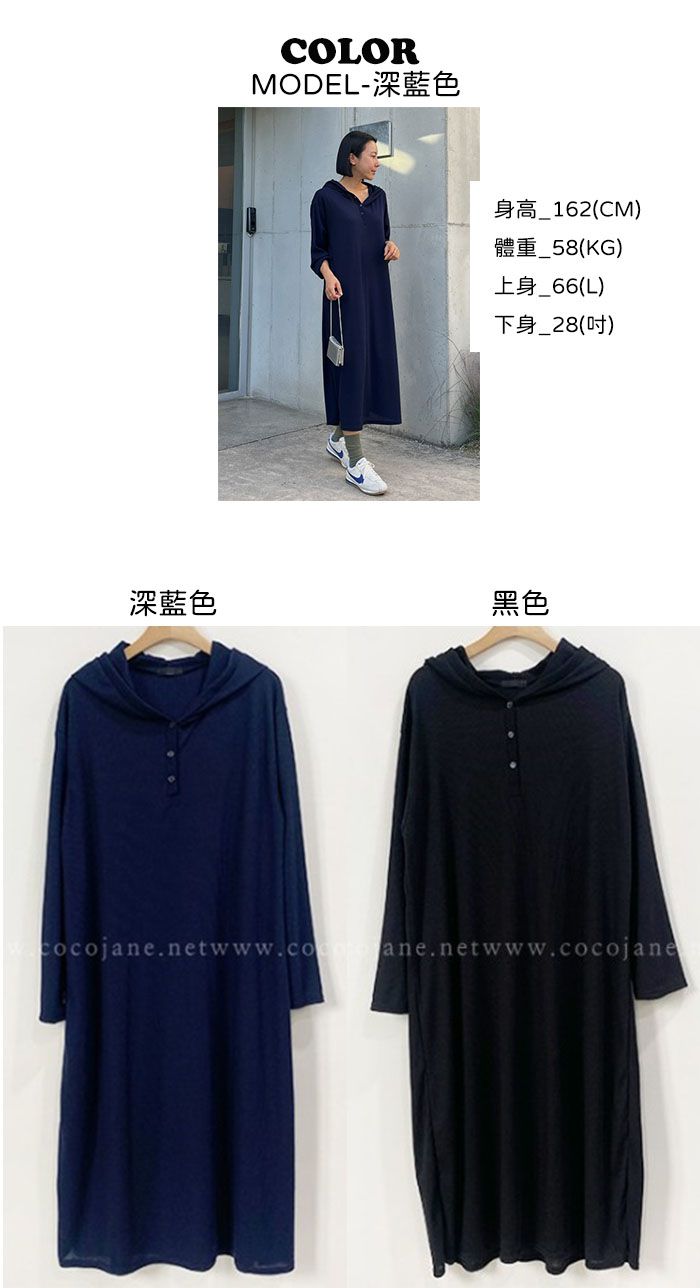 【C55373】韓國COJ 坑條連帽洋裝-素面半開襟排釦直筒長袖連身裙★★