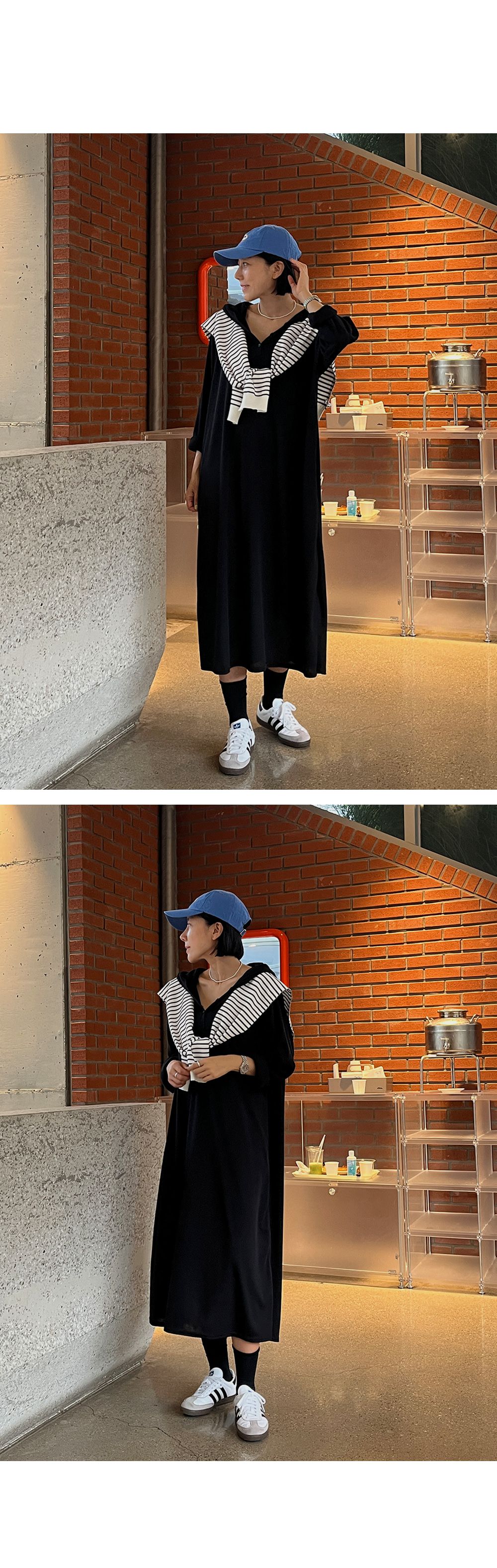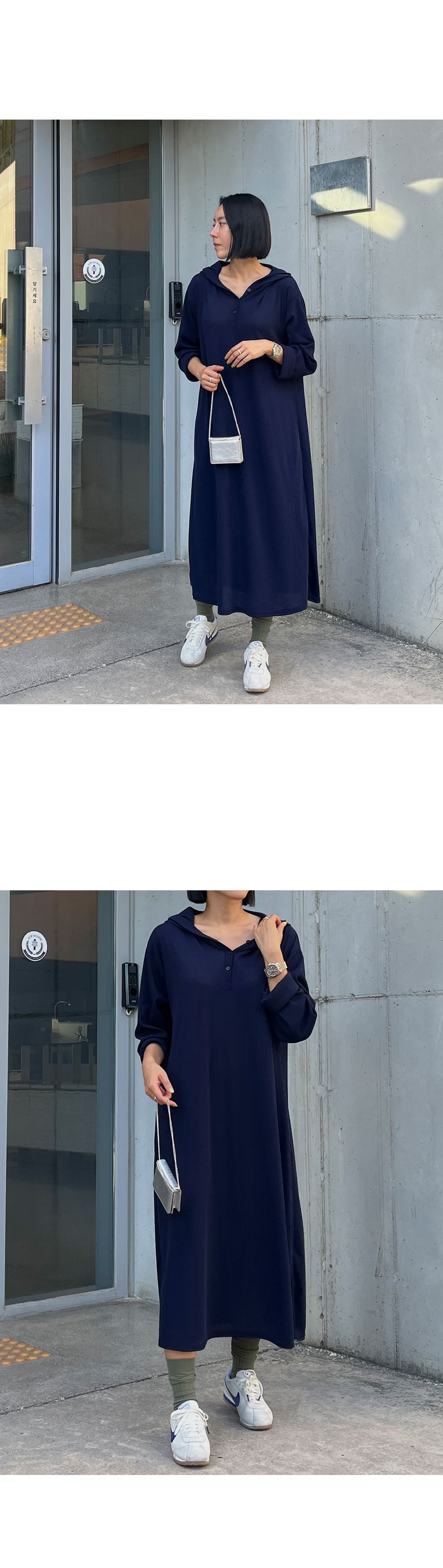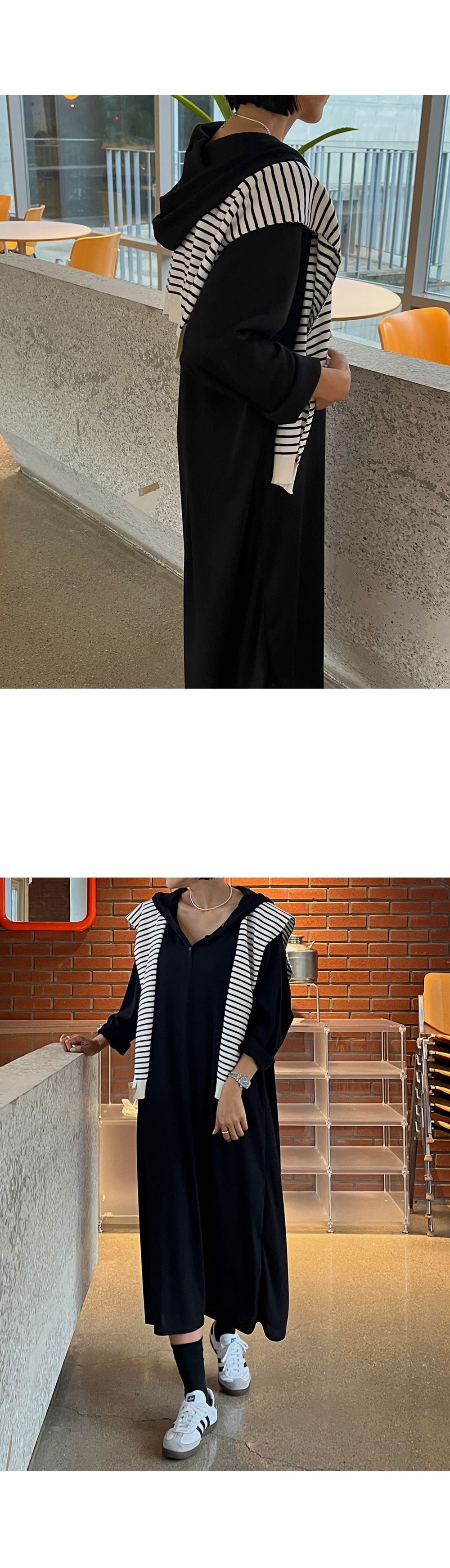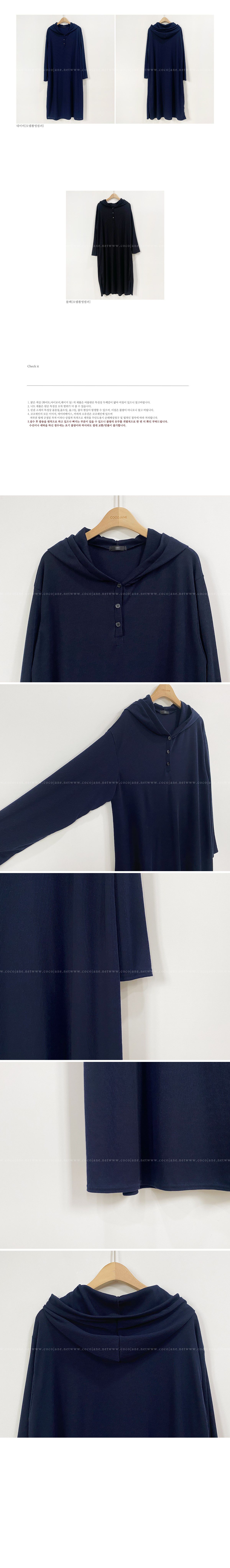 坑條羅紋面料/半開襟排釦/直筒洋裝/連帽/無口袋 - 休閒居家簡約百搭素面坑條連帽洋裝坑條洋裝羅紋洋裝長袖連身裙一件式洋裝深藍色黑色