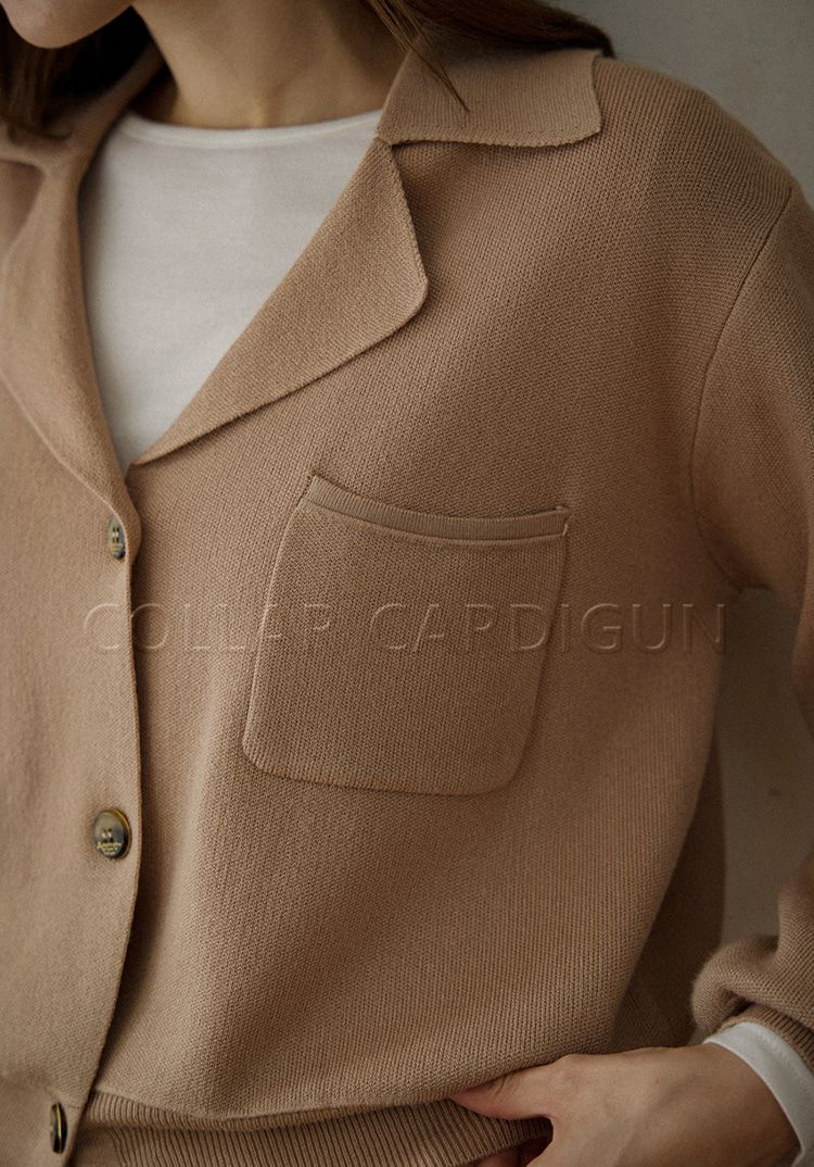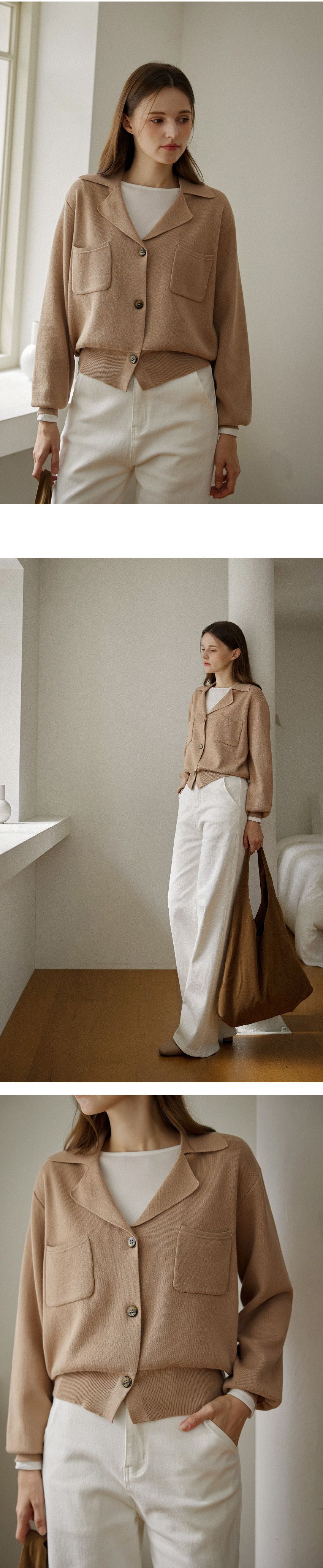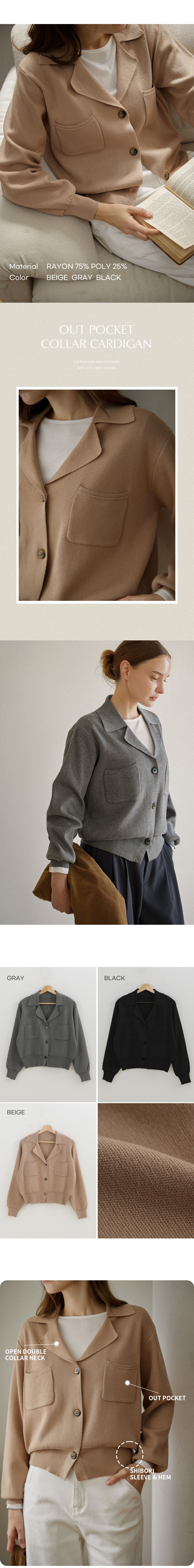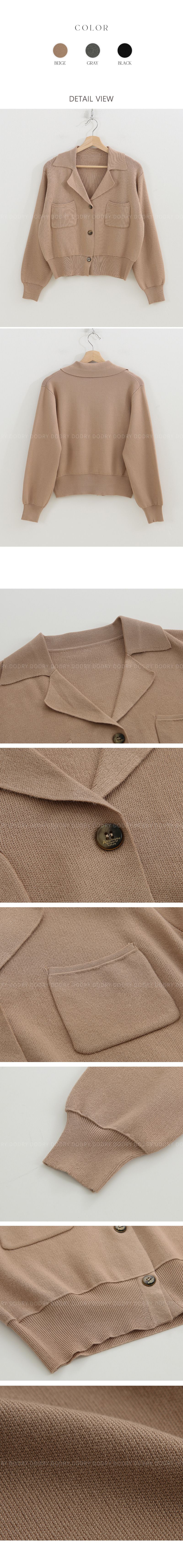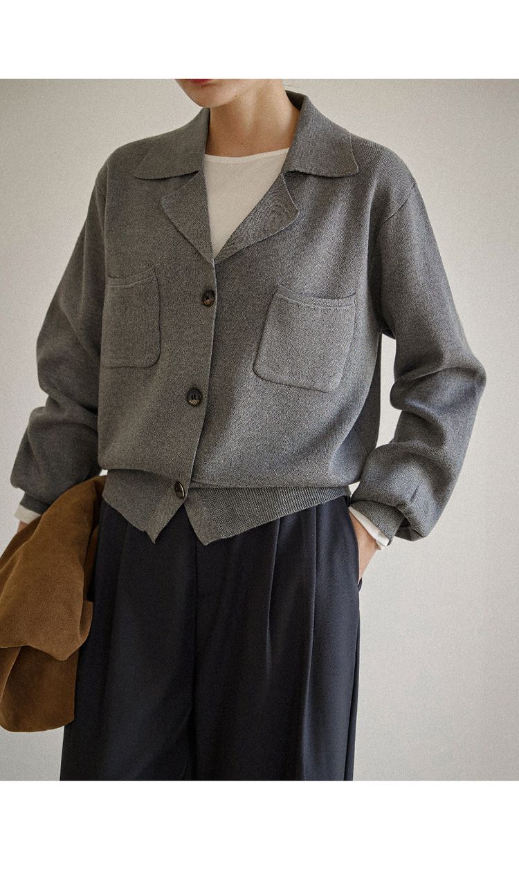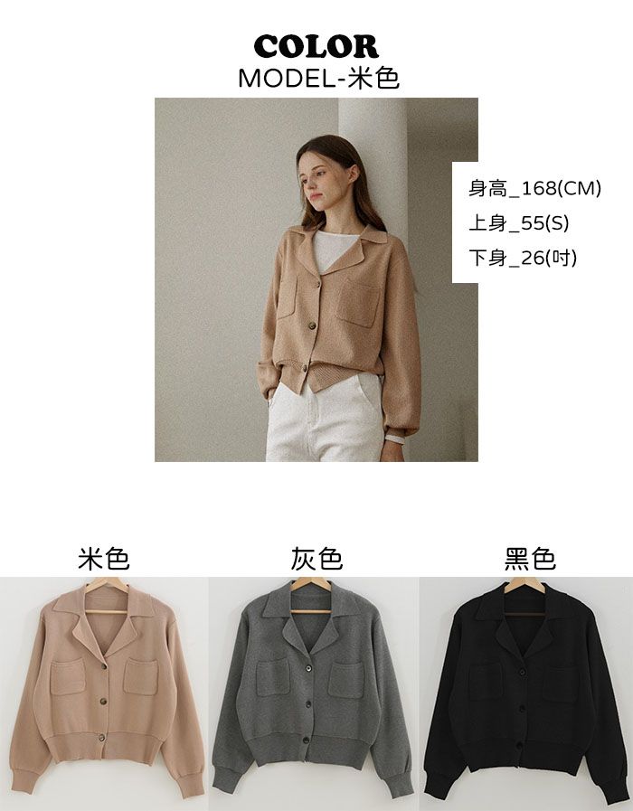 V領/大鈕釦/開襟排釦/雙口袋/雙領/俐落短版 - 休閒居家簡約百搭素面雙領針織外套針織衫針織上衣長袖上衣米色灰色黑色