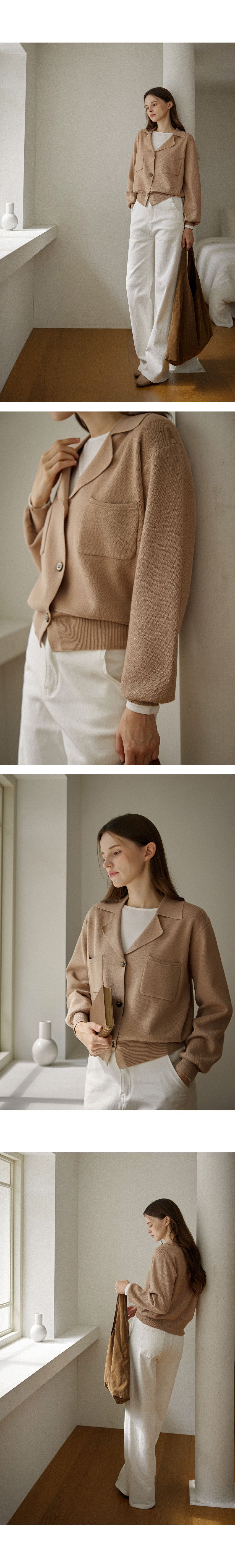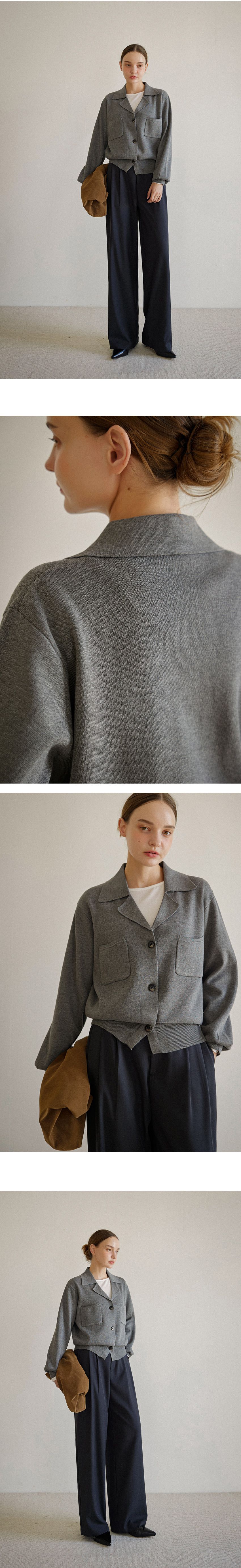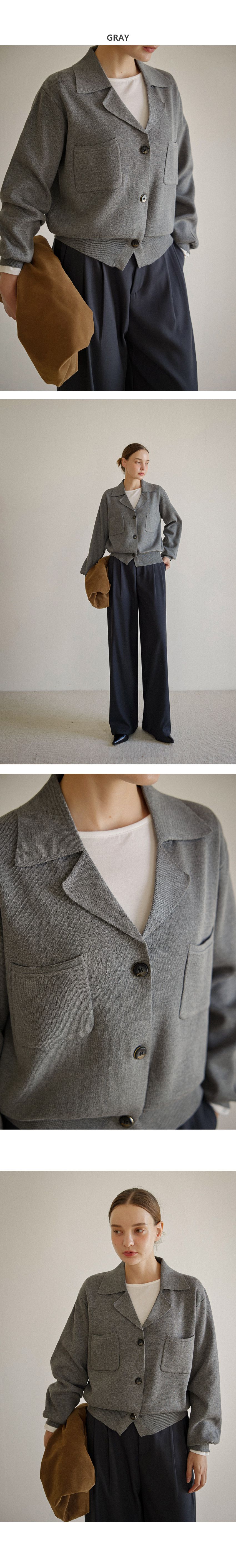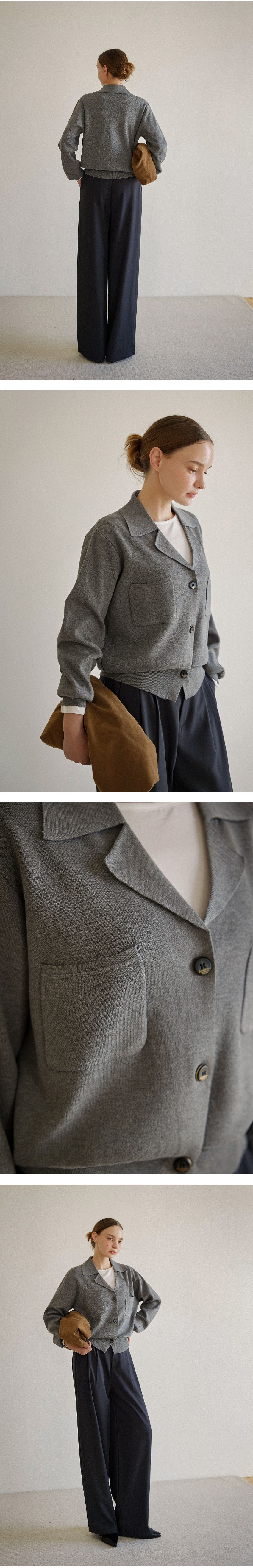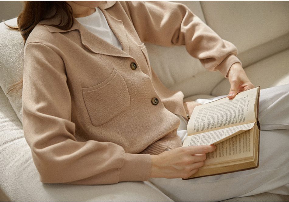 V領/大鈕釦/開襟排釦/雙口袋/雙領/俐落短版 - 休閒居家簡約百搭素面雙領針織外套針織衫針織上衣長袖上衣米色灰色黑色