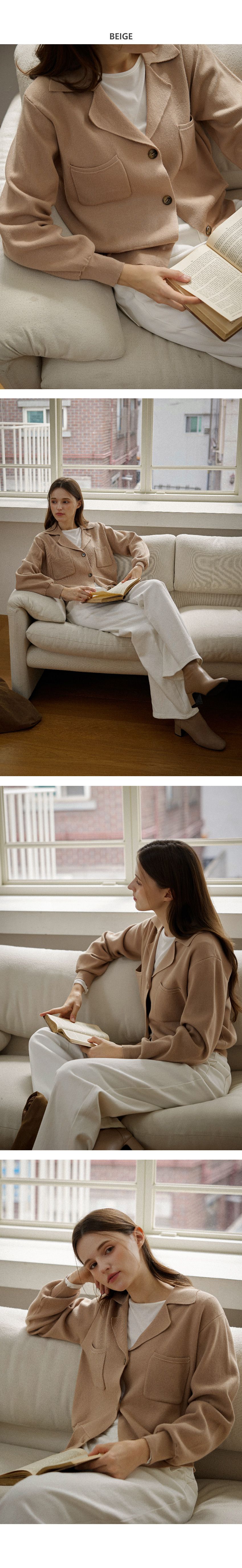 【C55418】韓國DDR 雙領針織外套-素面V領大鈕釦雙口袋短版長袖上衣