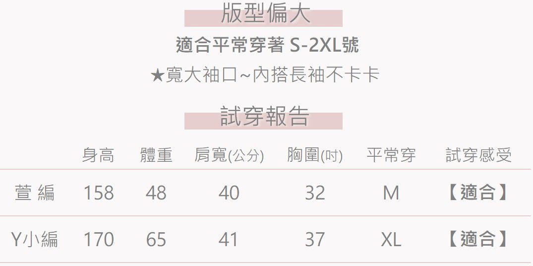 S 號到 2XL 號 的姐妹都能輕鬆穿出時髦感~~