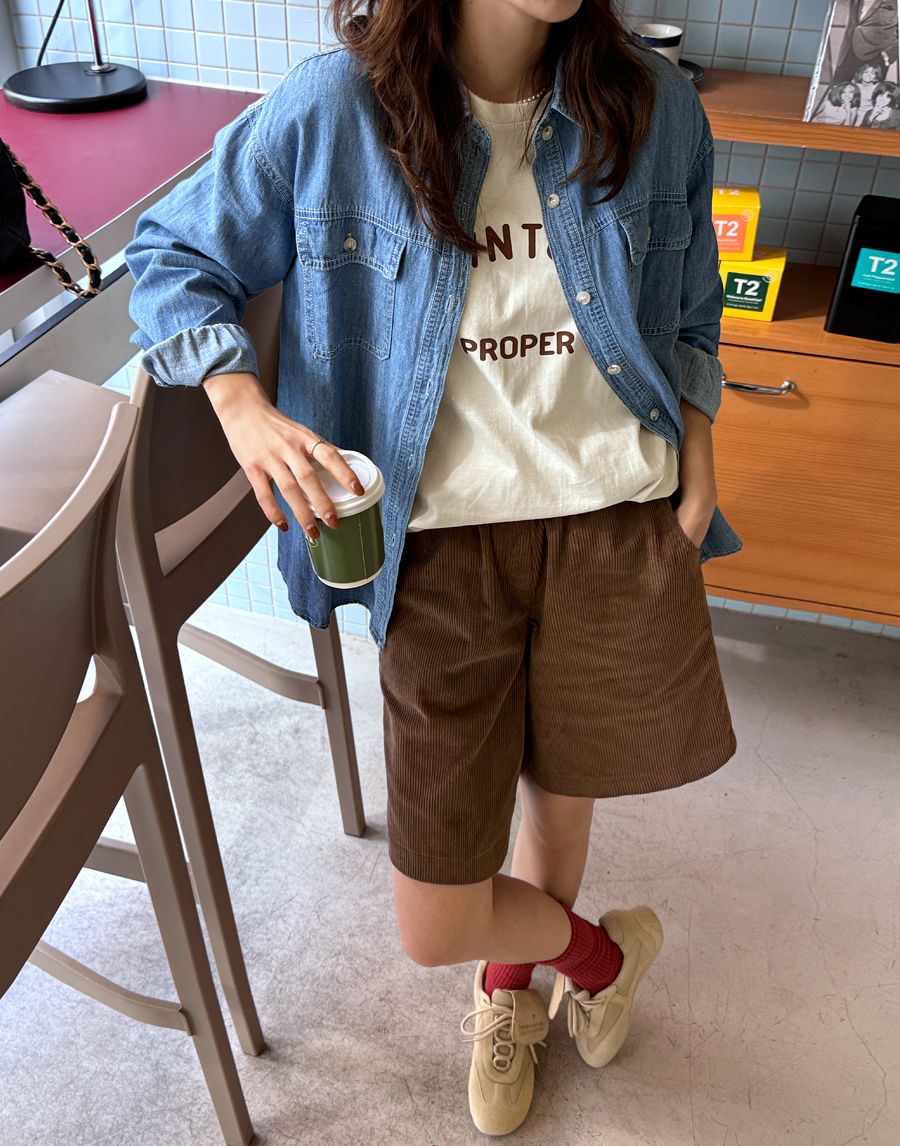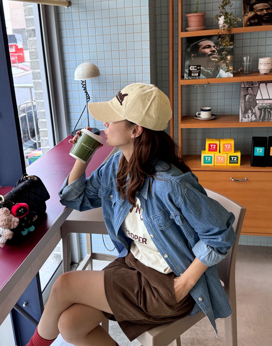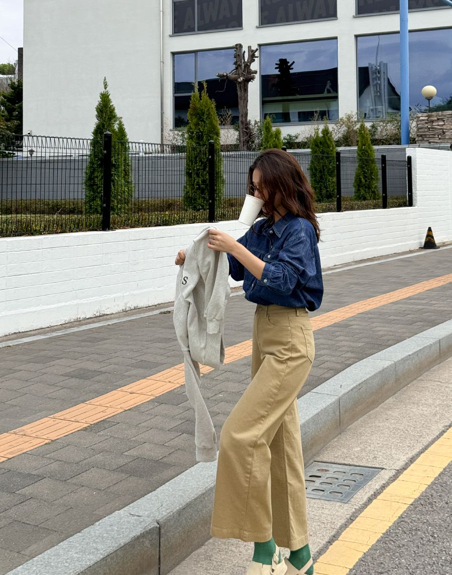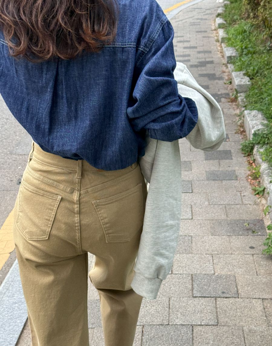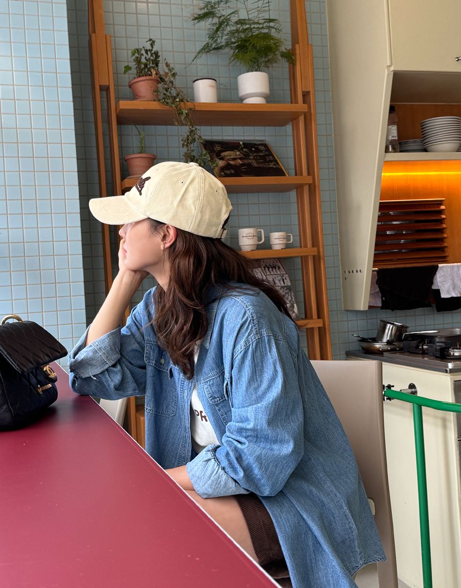 【C55442】韓國MBL 雙口袋牛仔襯衫-素面跳色車線長袖上衣外套