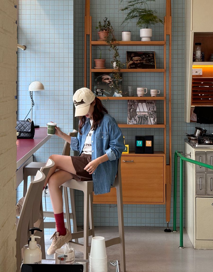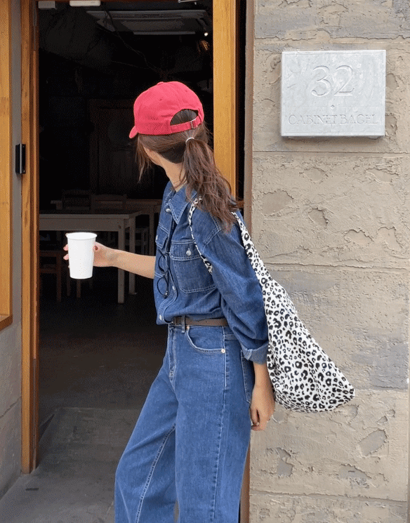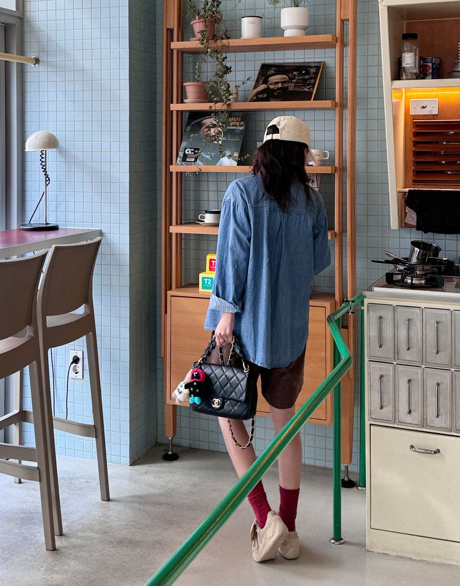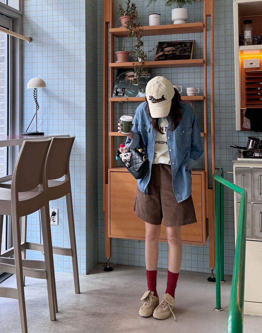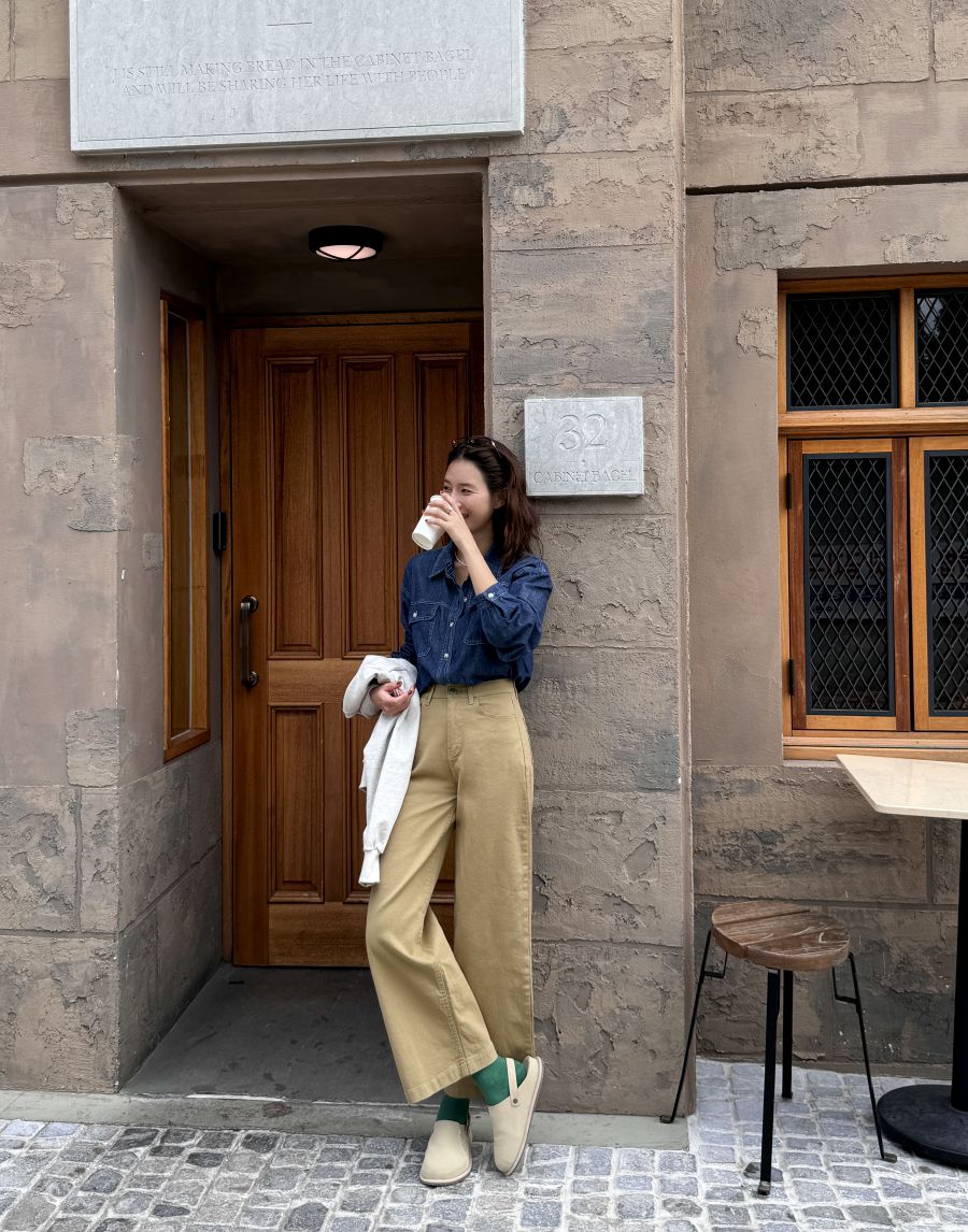 【C55442】韓國MBL 雙口袋牛仔襯衫-素面跳色車線長袖上衣外套