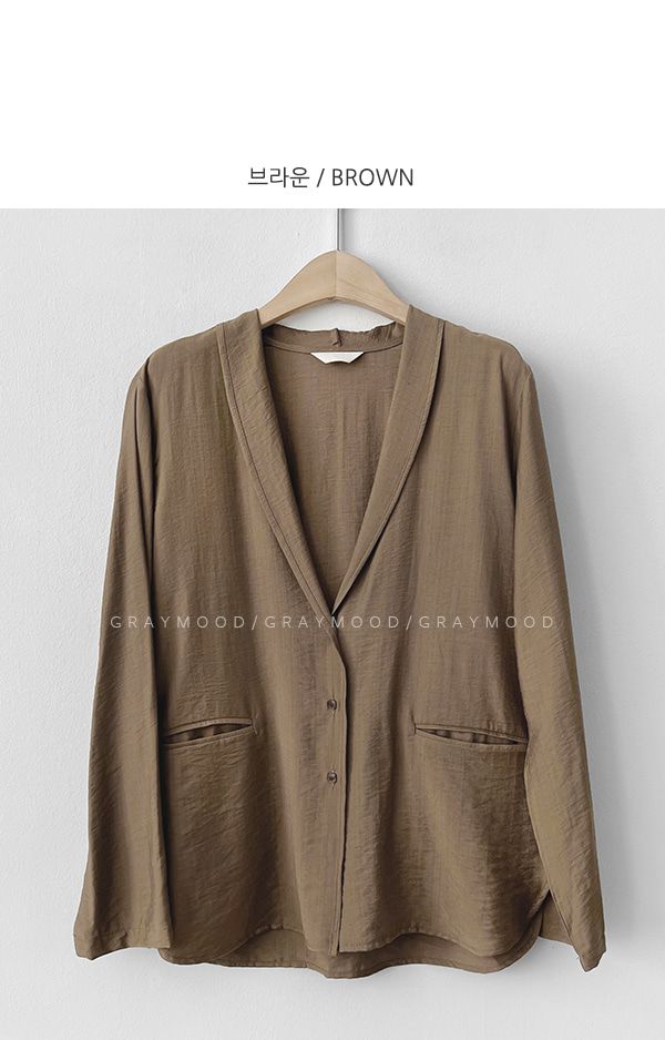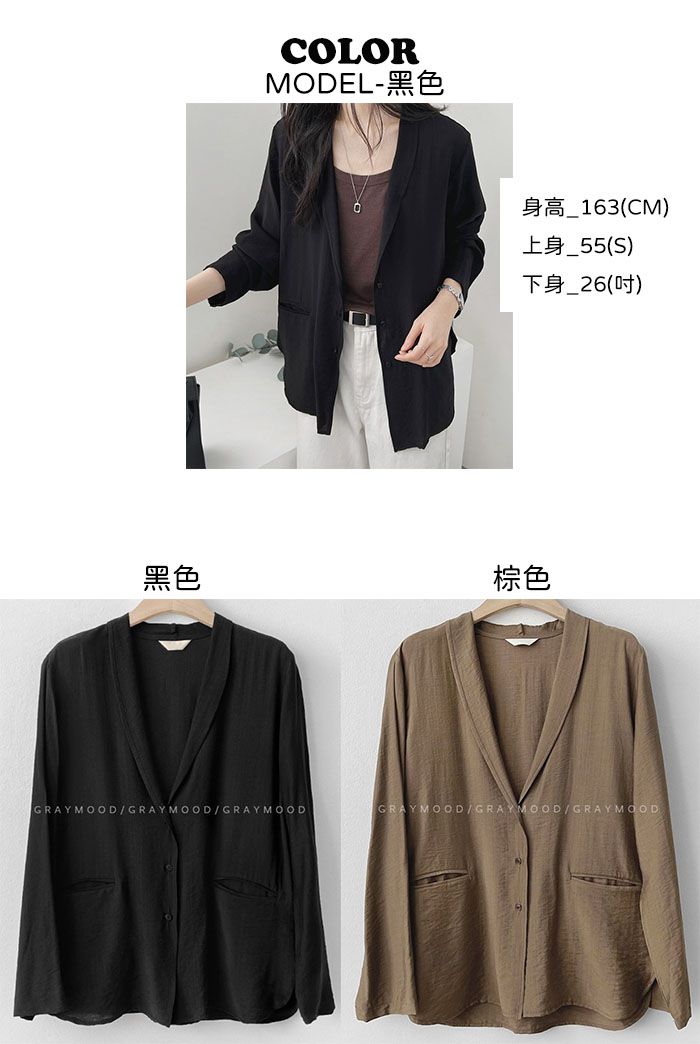 小鈕釦可愛又小巧/V領修飾小臉蛋/帥氣又俐落外套單品-休閒居家簡約百搭素面V領素面翻領開襟排釦口袋OL長袖外套黑色棕色