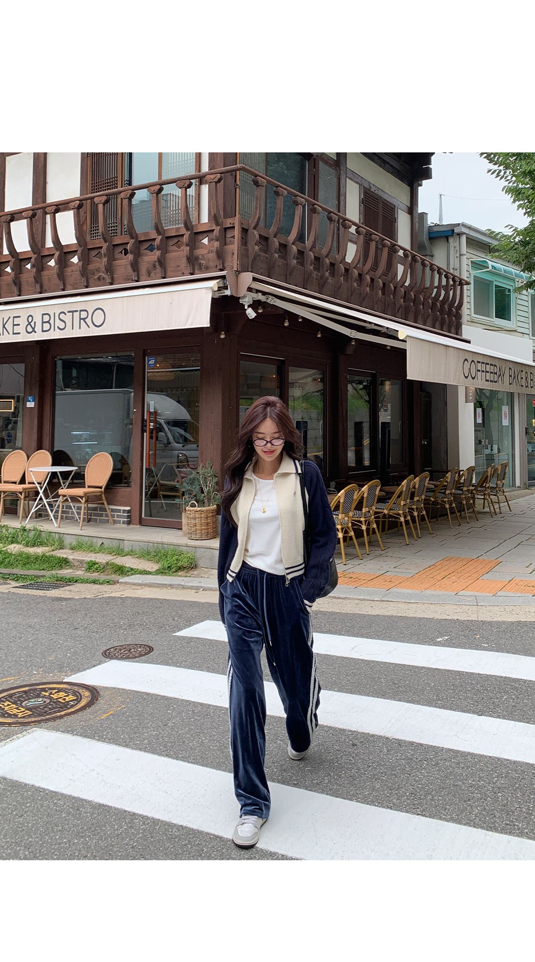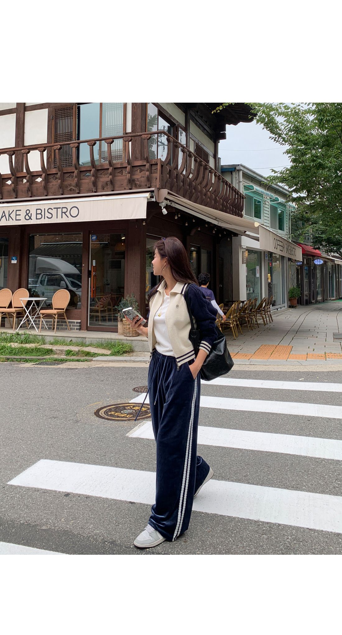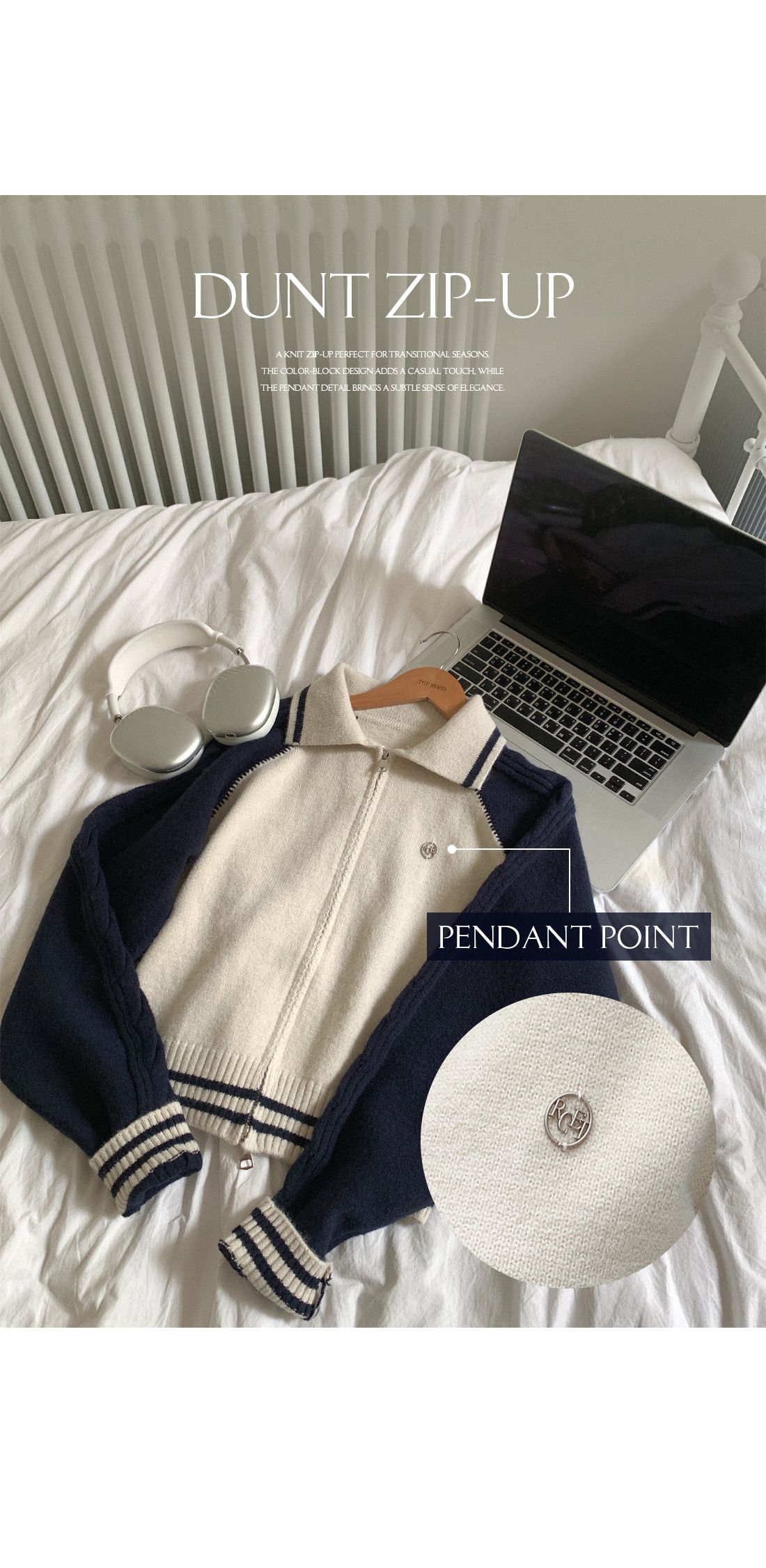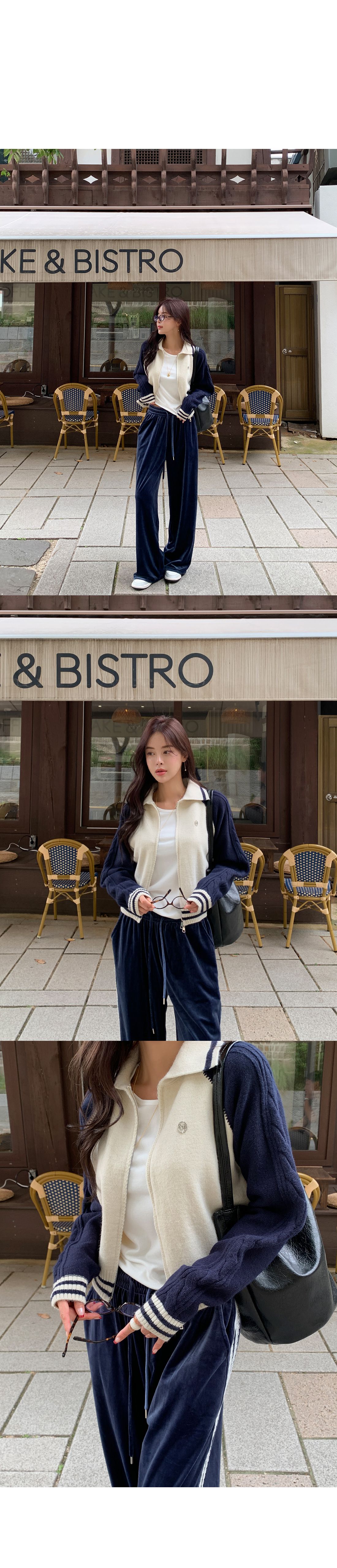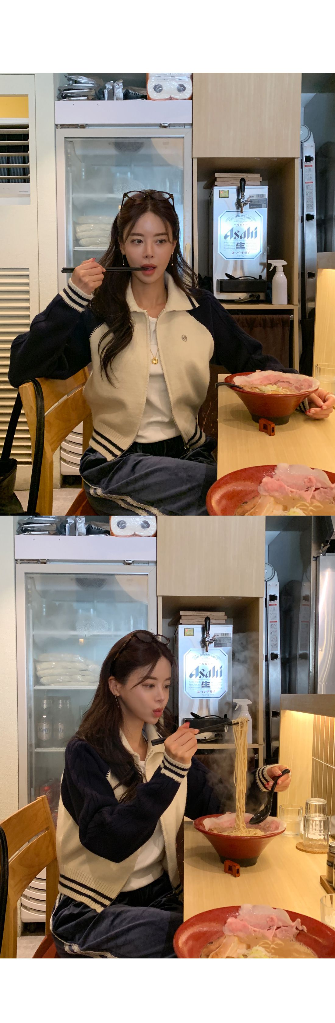 雙色拼接/連肩袖/雙開拉鍊/LOGO標/翻領/短版外套 - 休閒居家撞色針織外套長袖外套奶油色紅色條紋滾邊