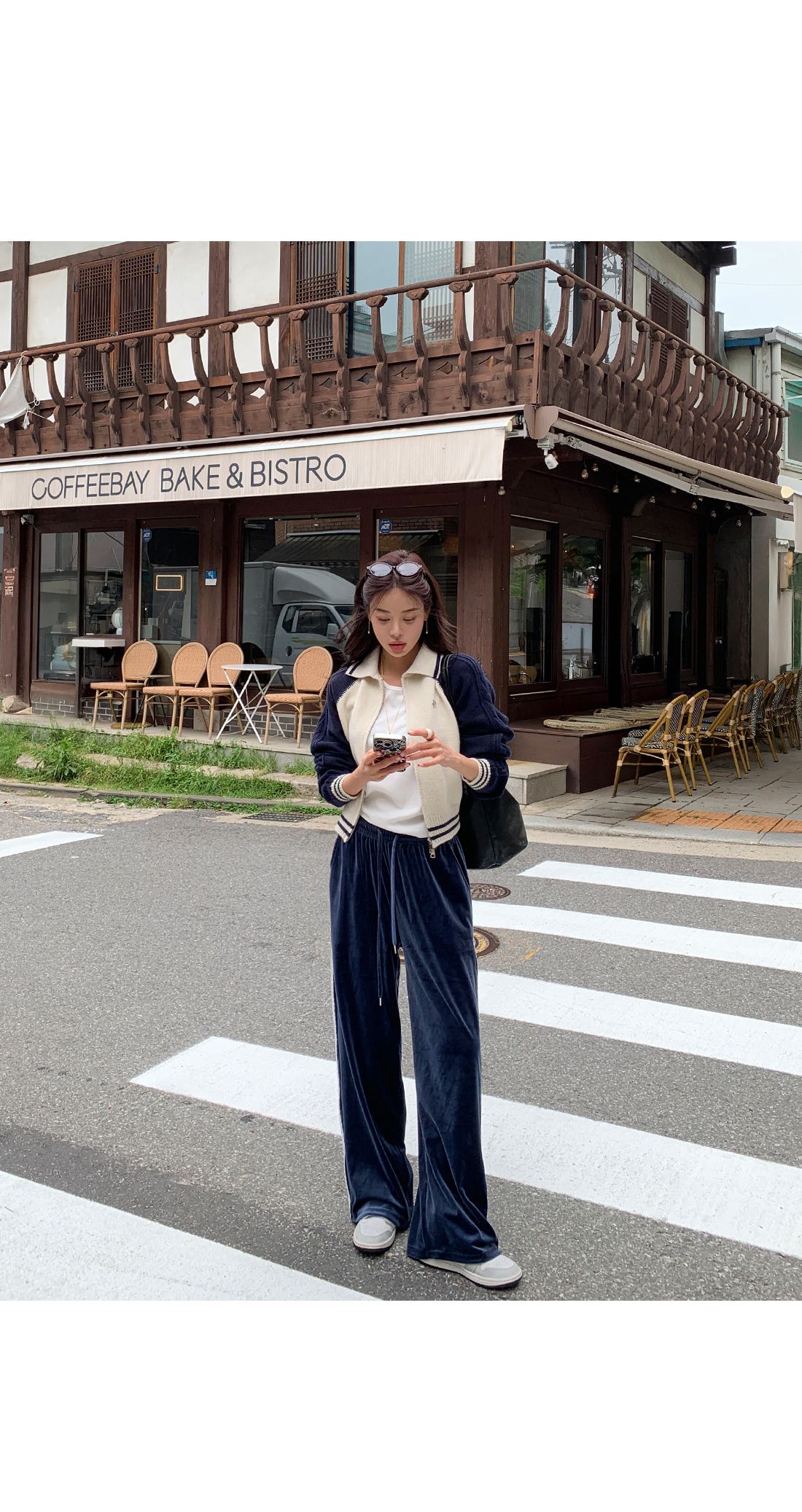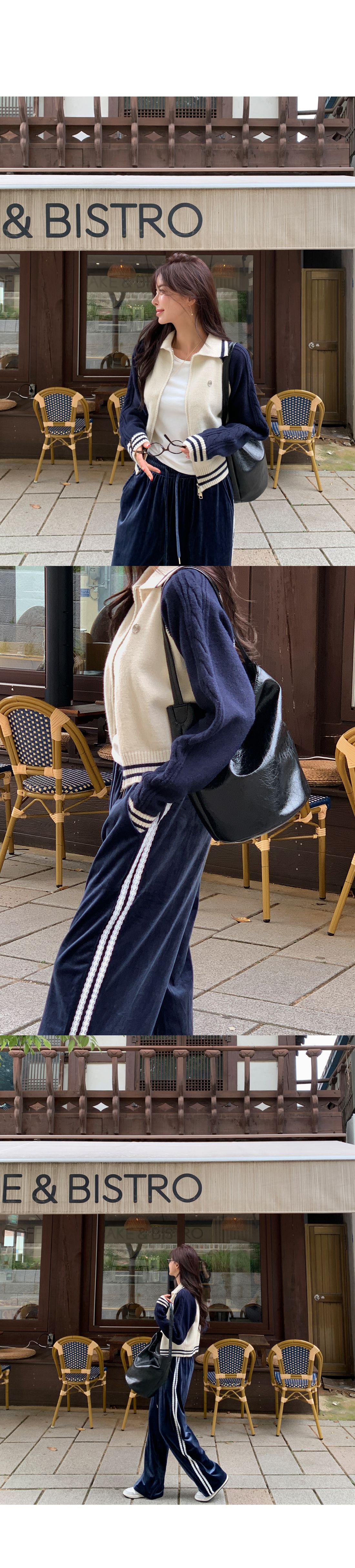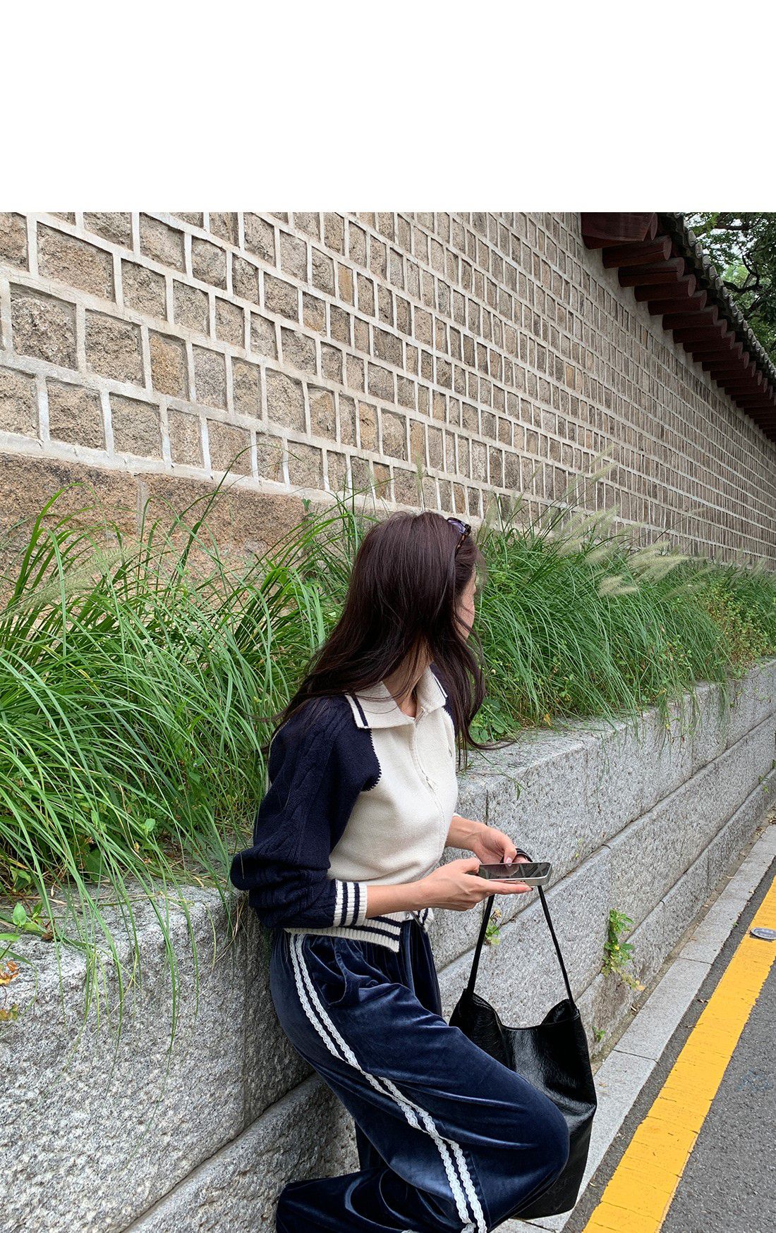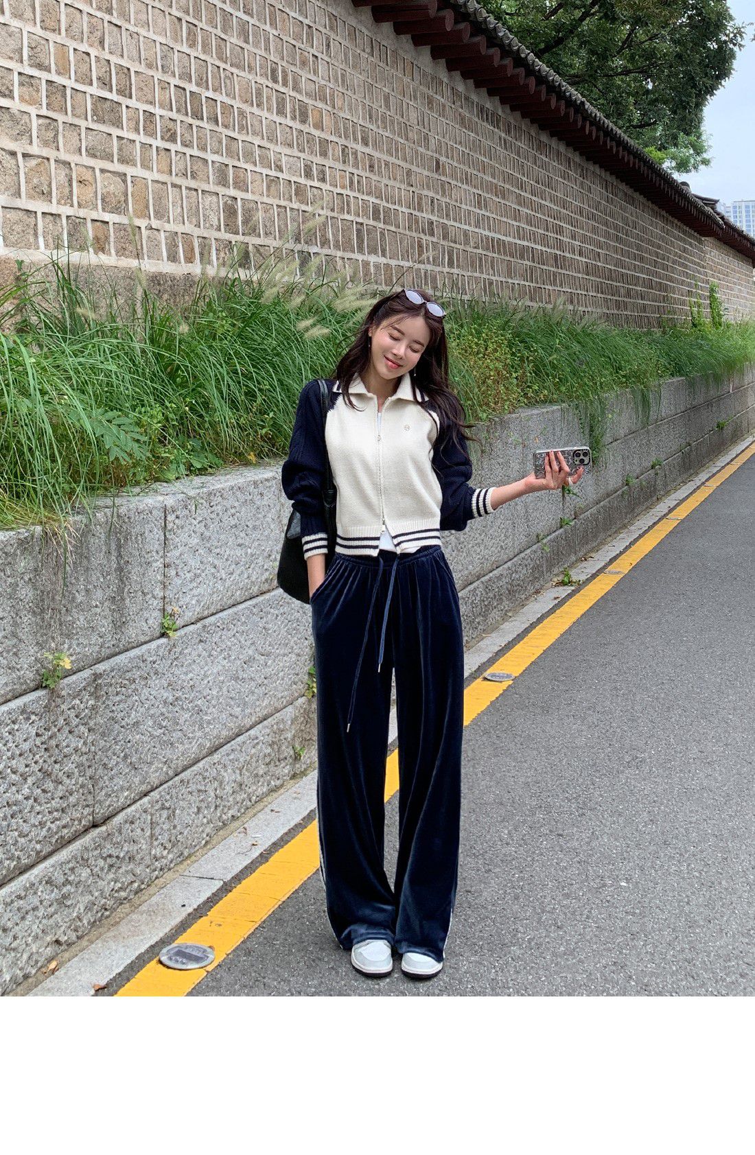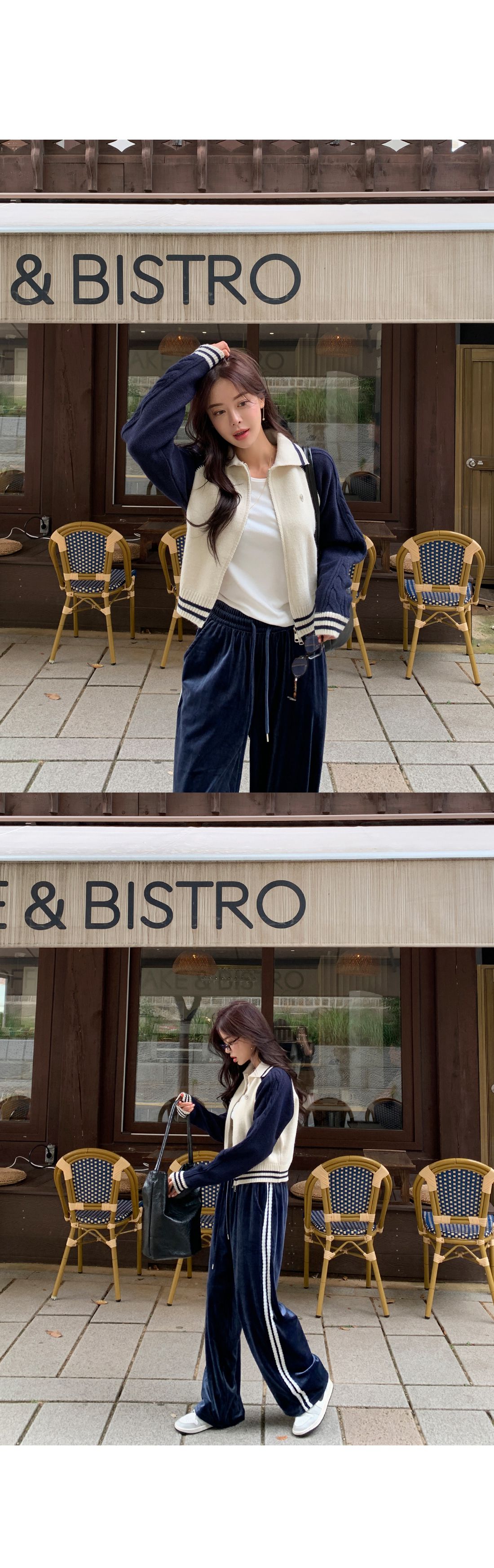 【C55489】韓國TMO 撞色針織外套-條紋滾邊雙開拉鍊翻領短版長袖外套★★