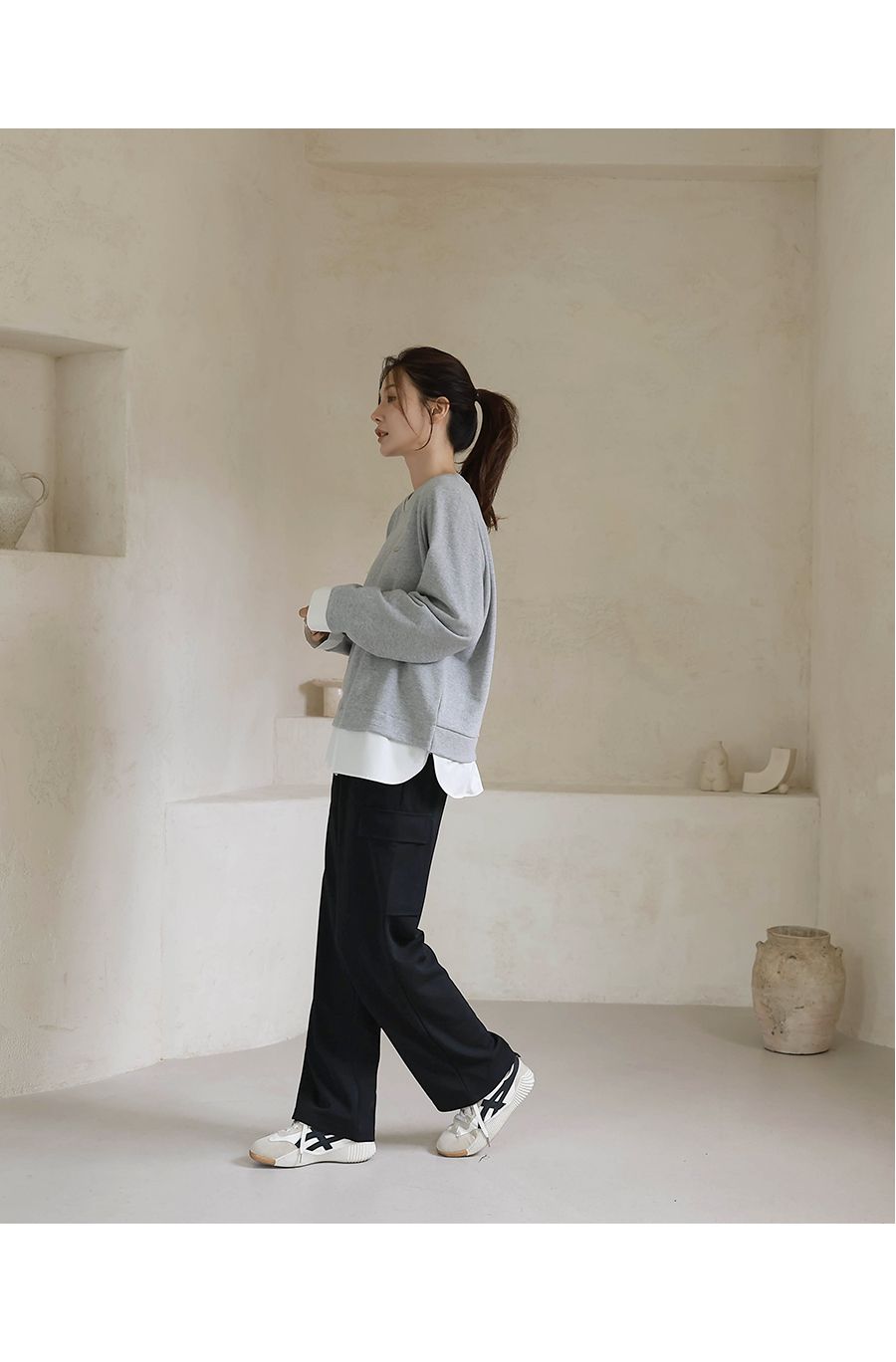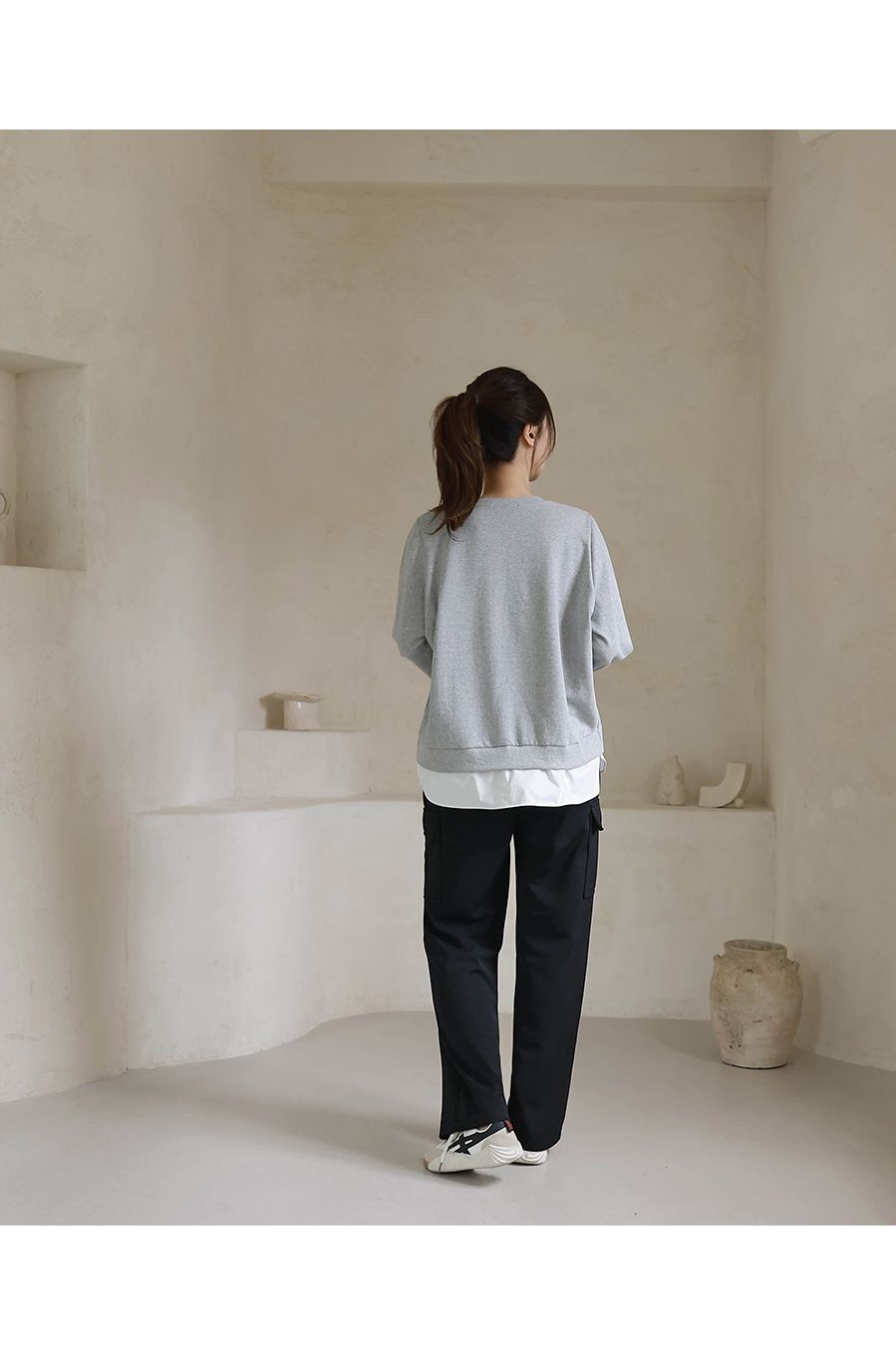 【C55491】韓國BLG 長版拼接上衣-素面假兩件LOGO標寬鬆長袖T恤★★