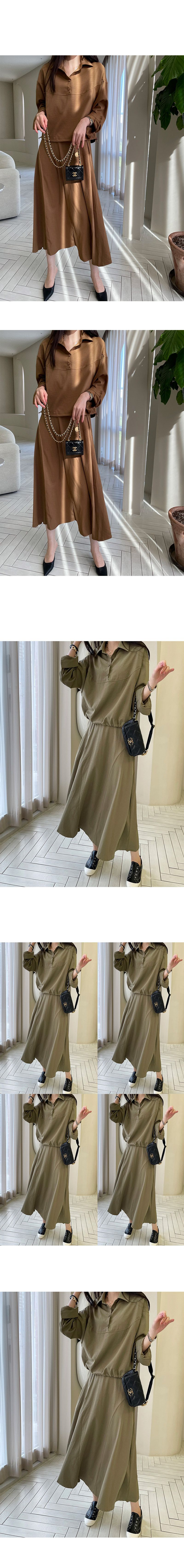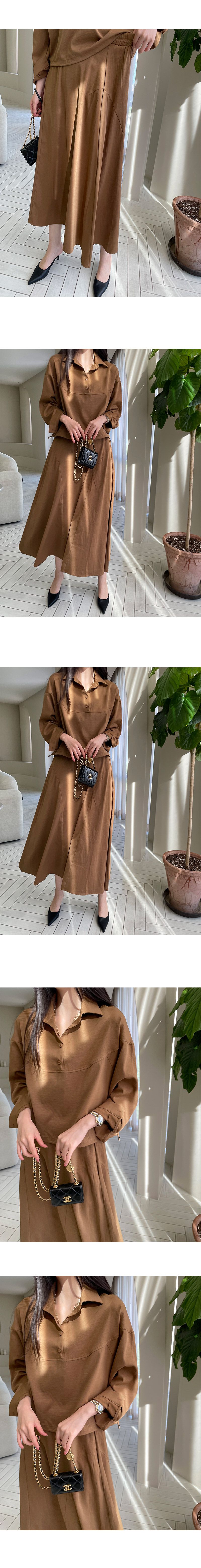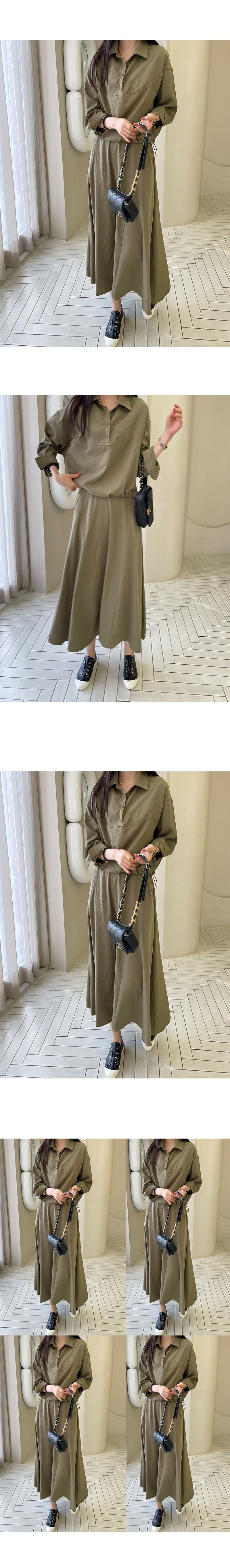 【C55502】韓國MNR 襯衫傘裙套裝-收腰長袖上衣+素面後腰鬆緊長裙