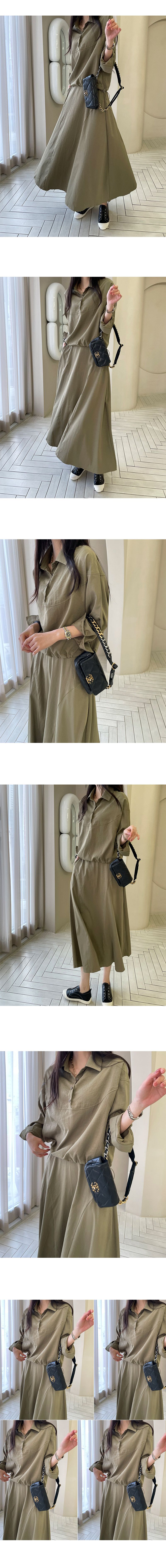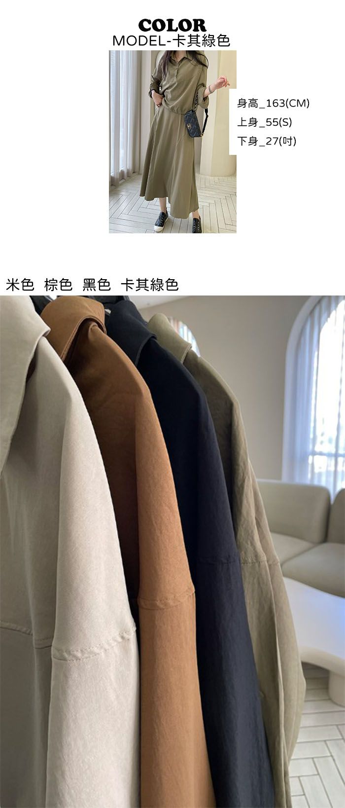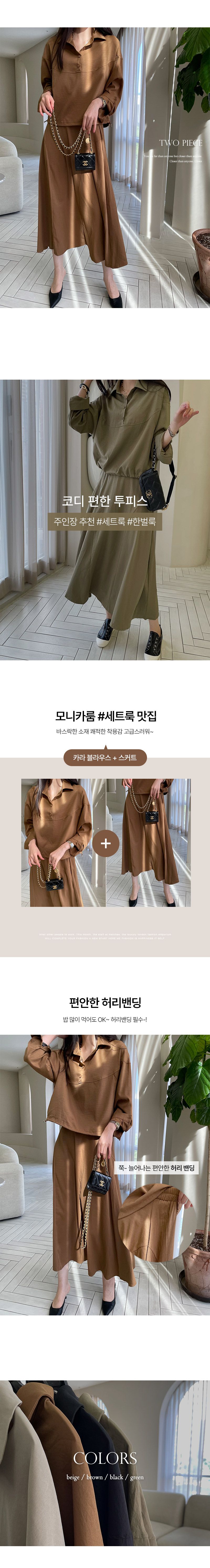 【C55502】韓國MNR 襯衫傘裙套裝-收腰長袖上衣+素面後腰鬆緊長裙