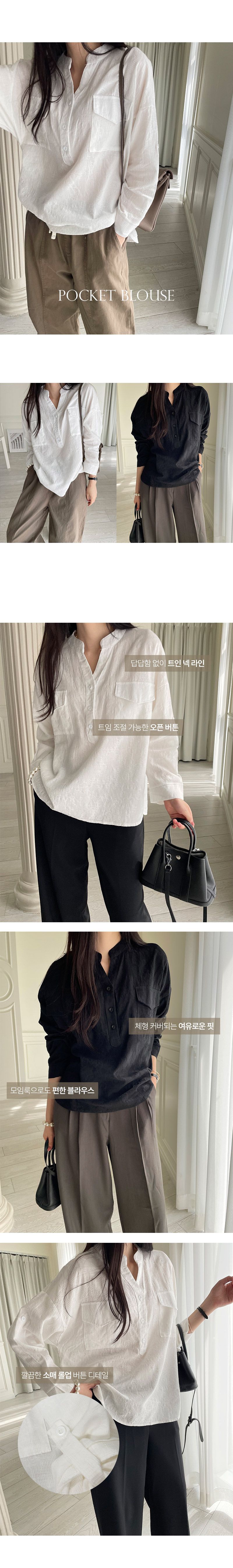 【C55511】韓國MNR 亨利領襯衫-素面Y字領雙口袋寬鬆長版長袖上衣★★