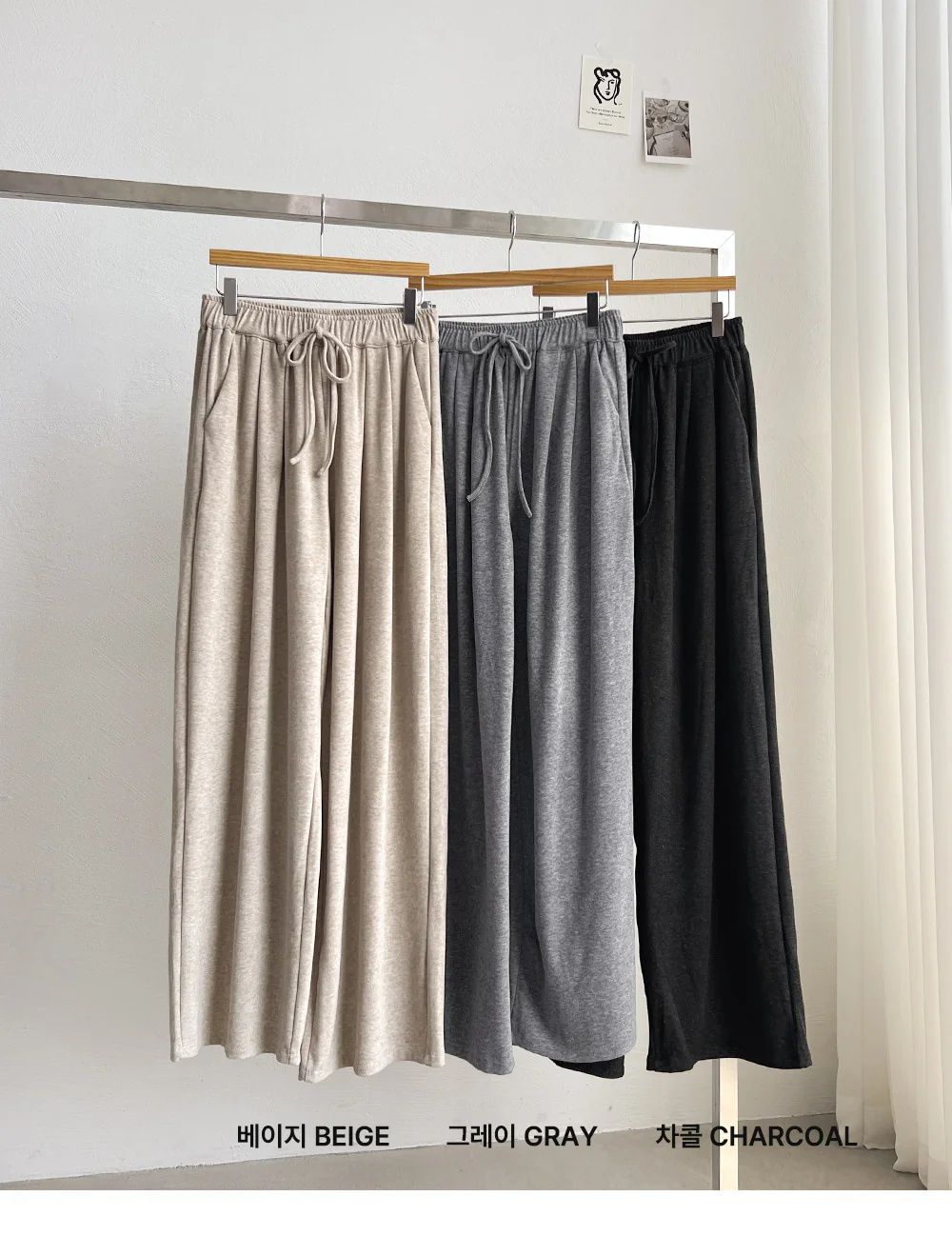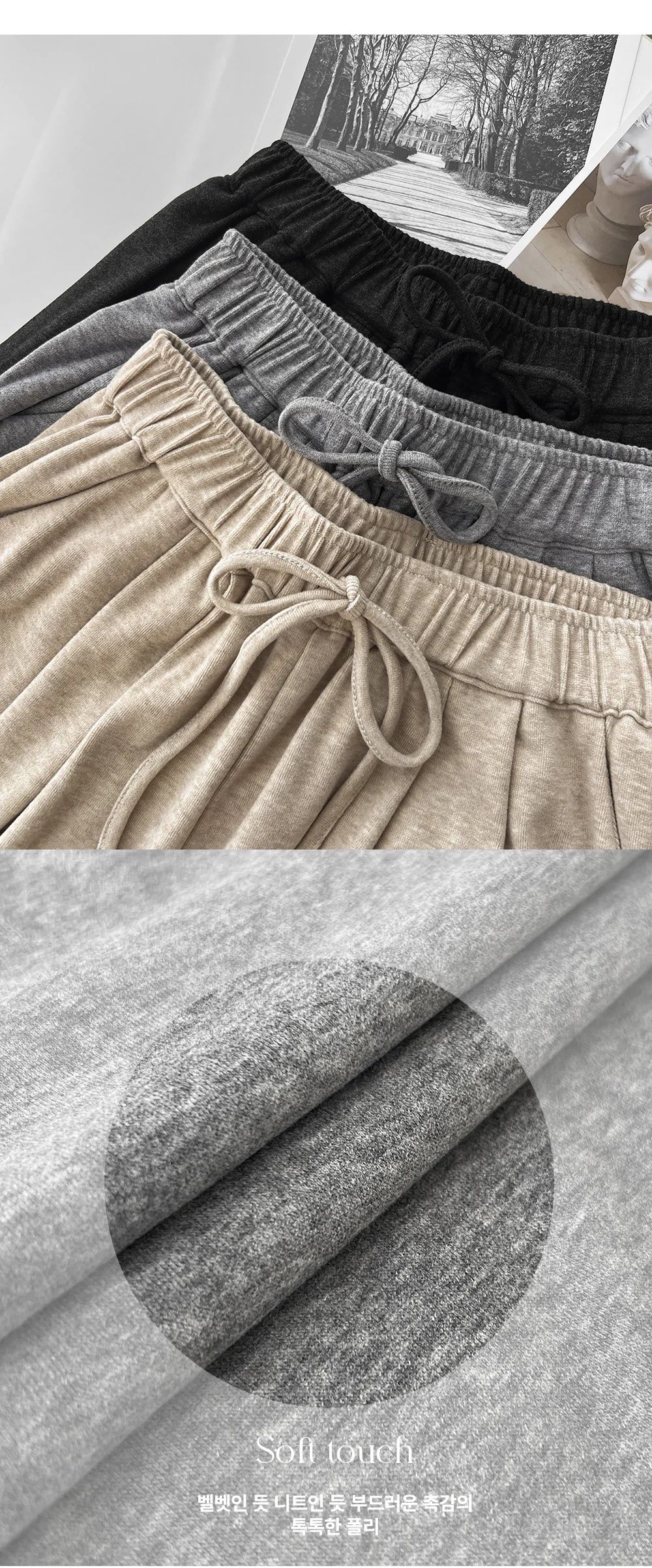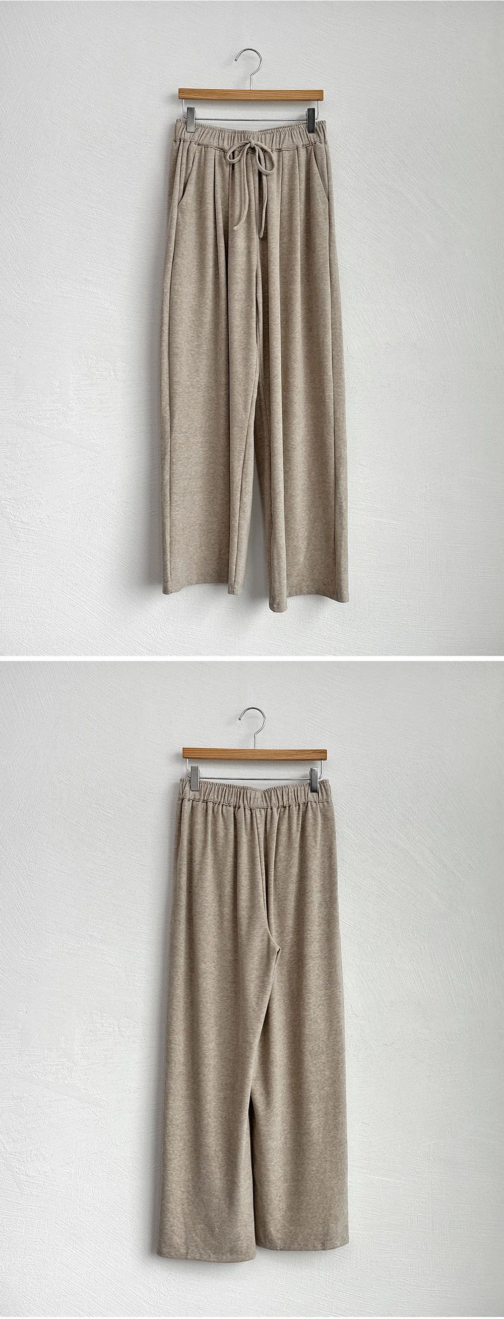 【C55519】韓國DAY 絨布直筒褲-素面造型抽繩鬆緊腰寬褲落地長褲★★