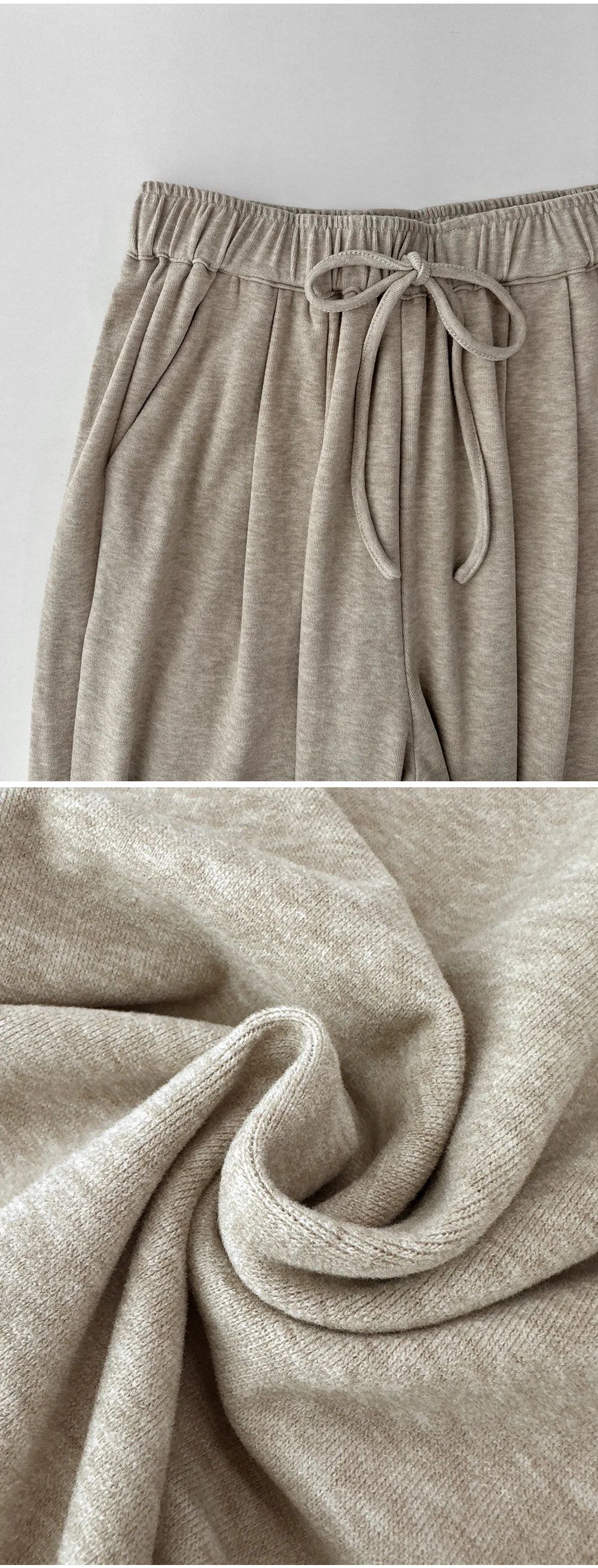 柔軟絨布面料/抽繩鬆緊腰/寬褲/雙口袋 - 休閒居家簡約百搭素面絨布直筒褲落地褲長褲米色灰色深灰色