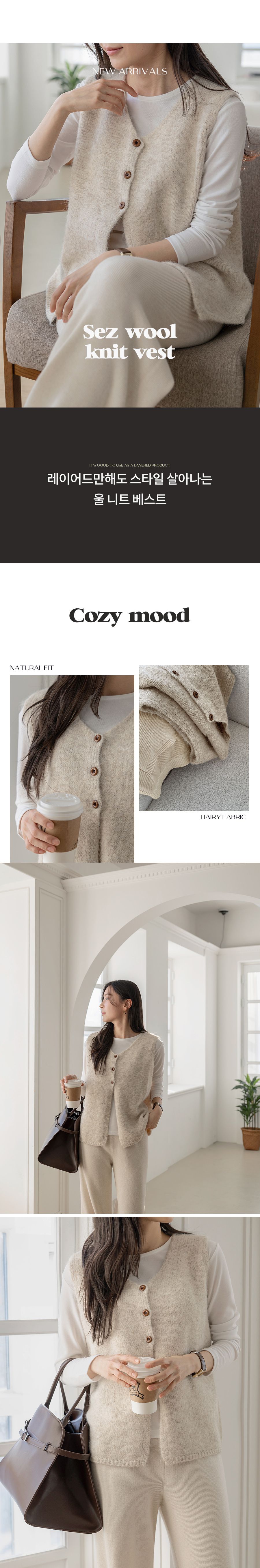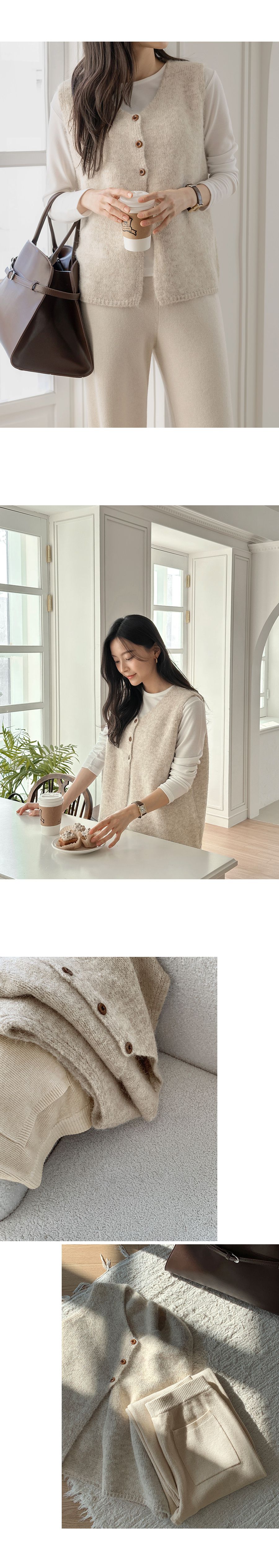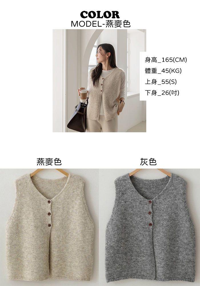 【C55521】韓國PUR 開衩混羊毛背心-素面V領開襟排釦針織無袖外套★★
