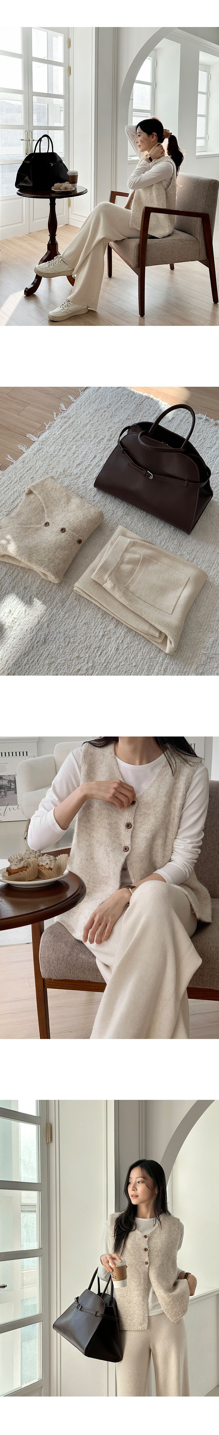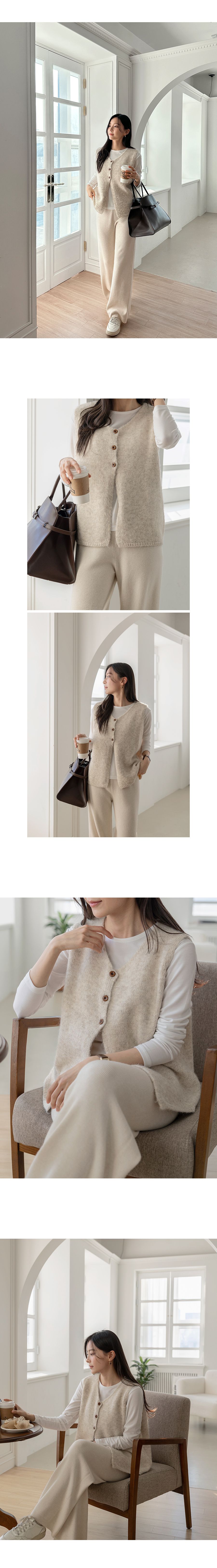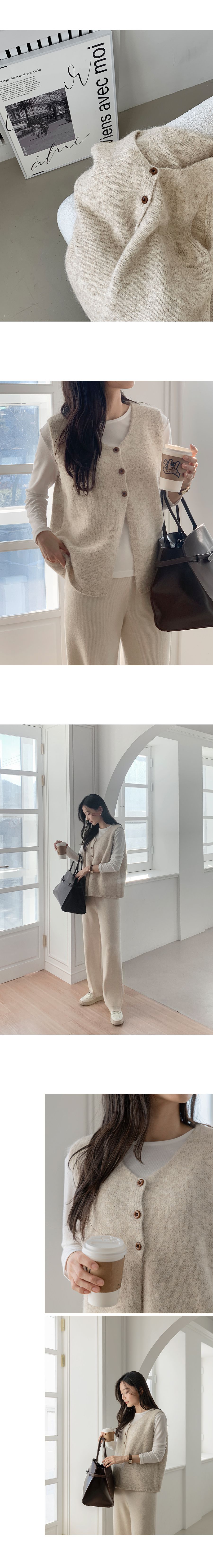 保暖混羊毛蓬鬆/微刺/V領/開襟排釦/三釦/下襬開衩/寬肩無袖 - 休閒居家簡約百搭素面開衩混羊毛背心外套針織背心針織衫針織外套寬肩無袖外套燕麥色灰色