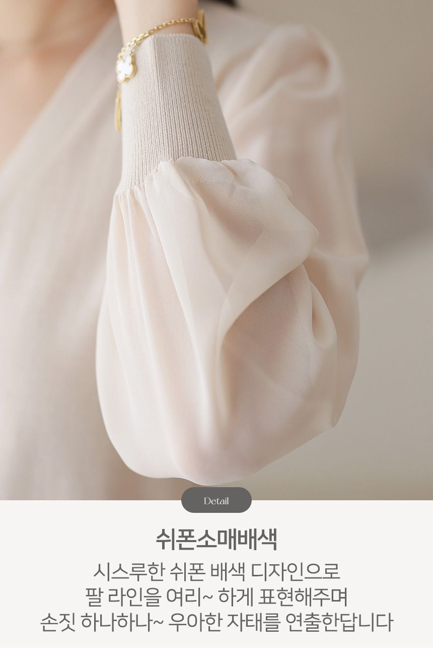 【C55526】韓國SOM 雪紡拼袖針織衫-素面透膚寬袖V領長袖上衣外套★★