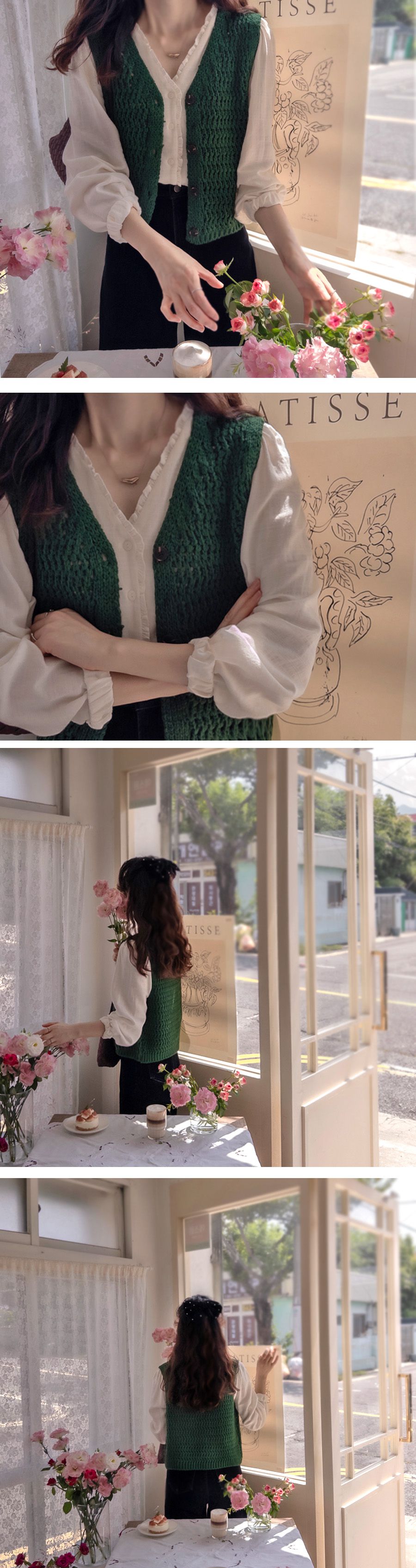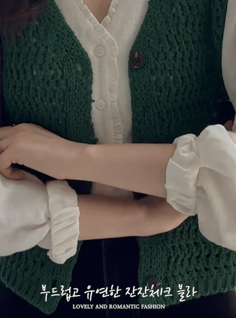 【C55528】韓國LEE 鋸齒花邊襯衫-格紋排釦V領公主袖長袖上衣★★