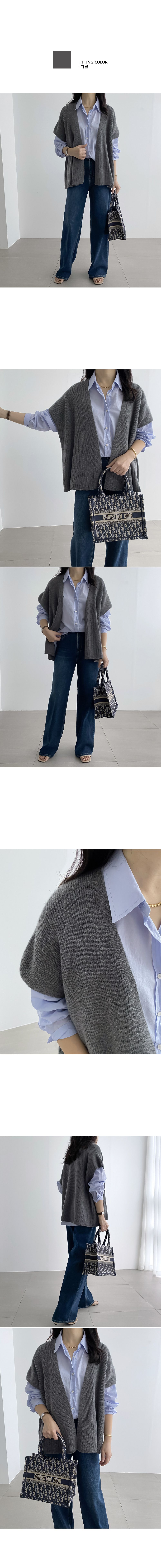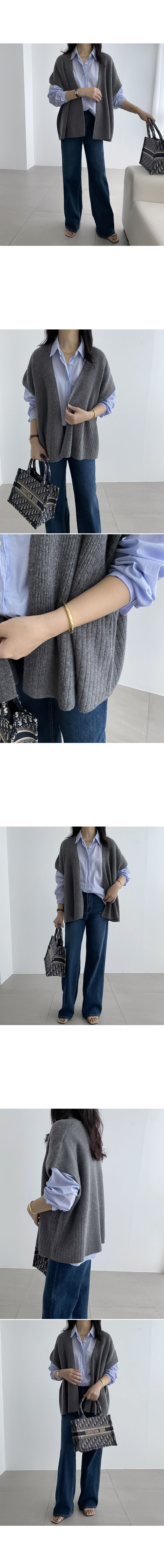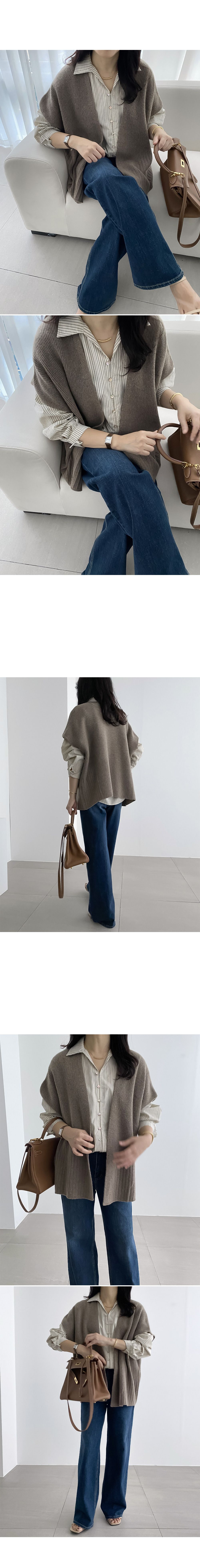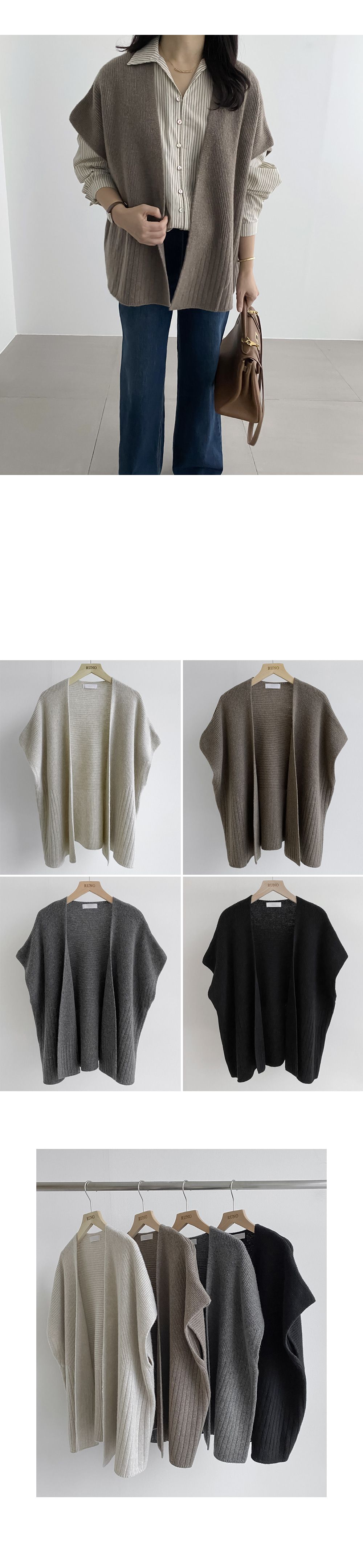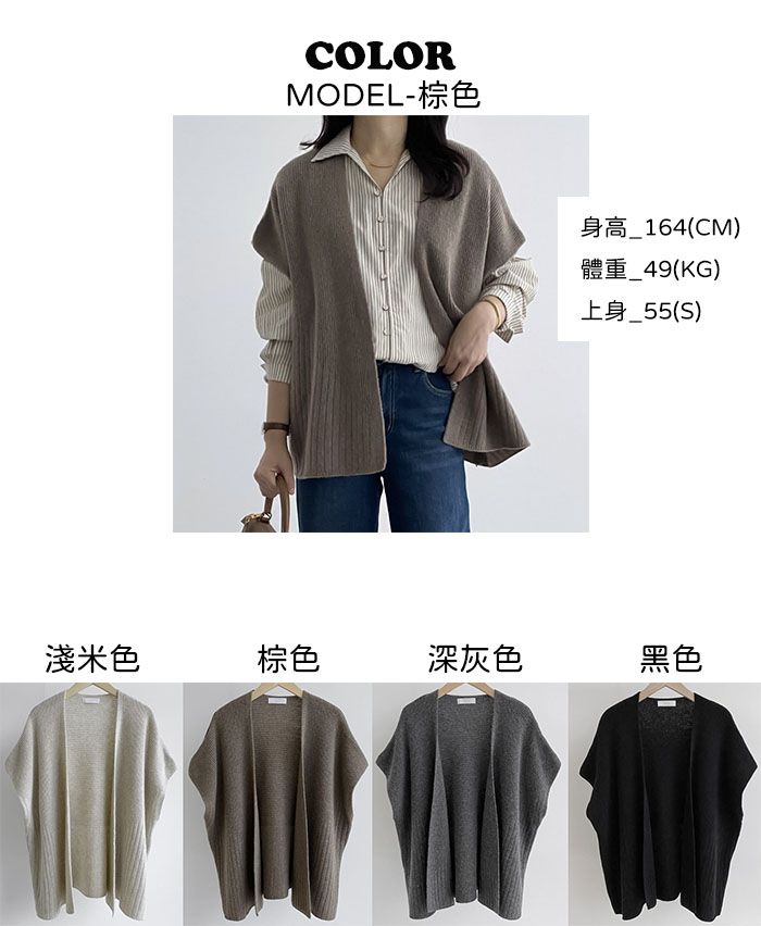 【C55535】韓國RUN 混羊毛披肩罩衫-素面寬鬆開襟無釦短袖針織外套★★