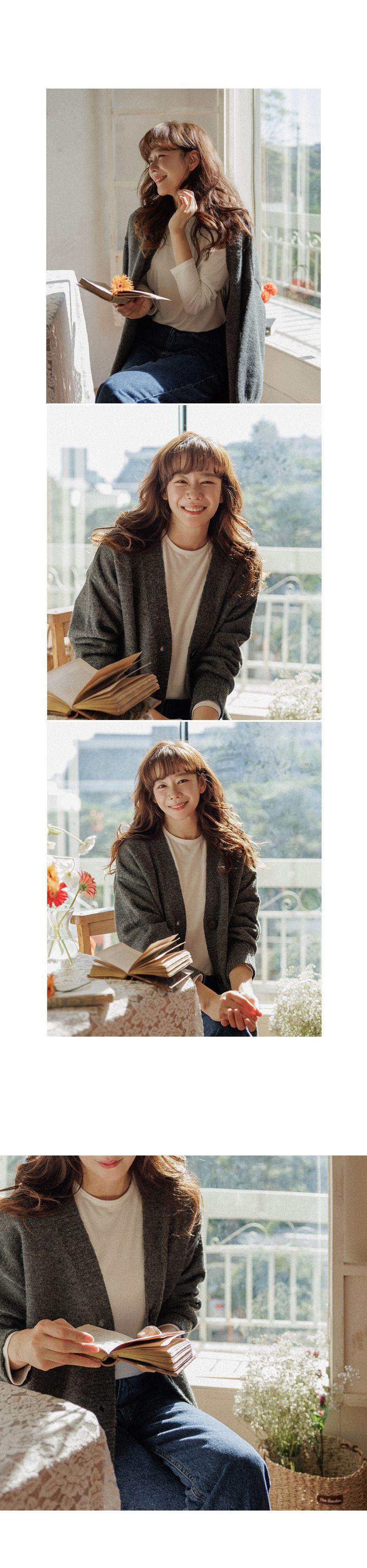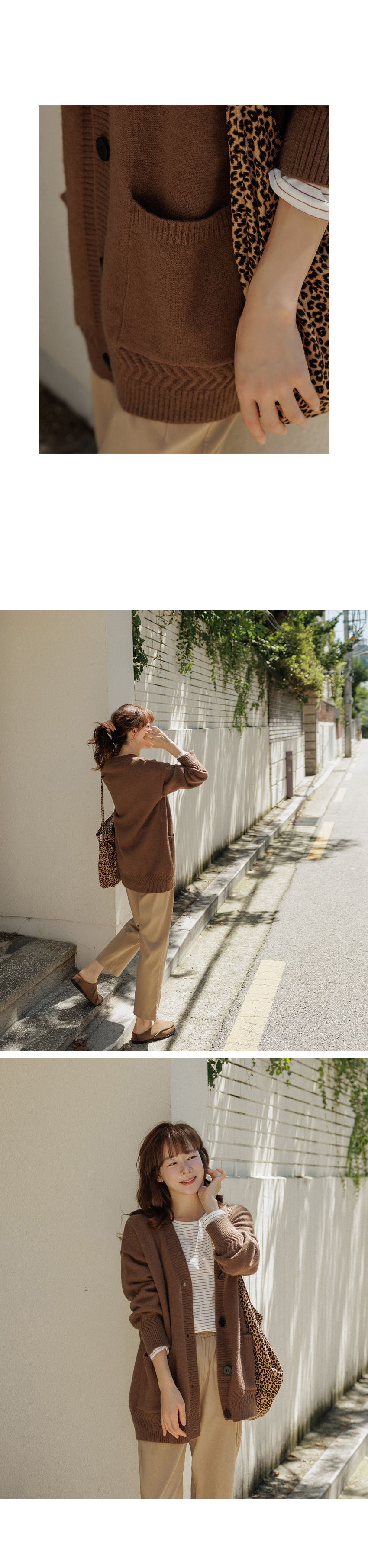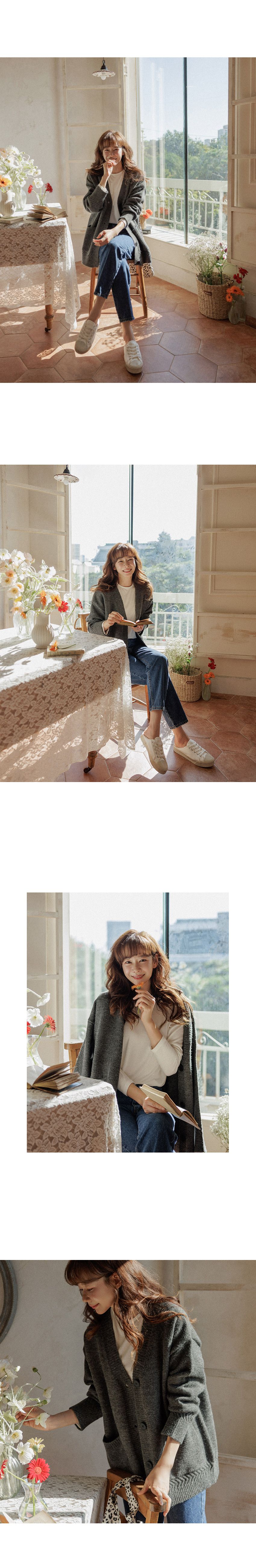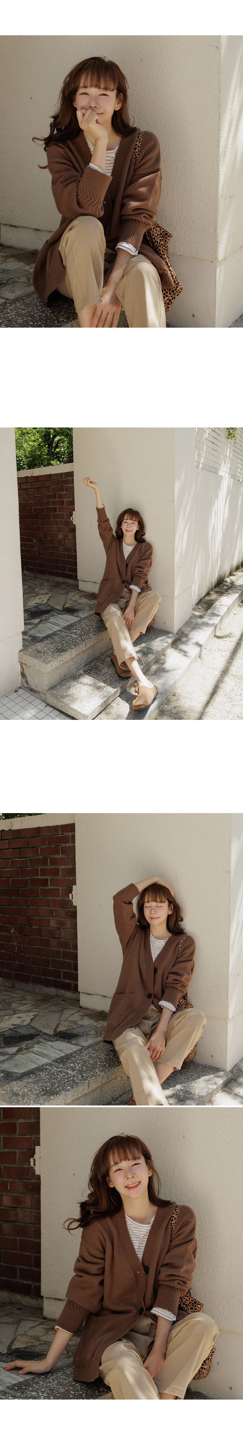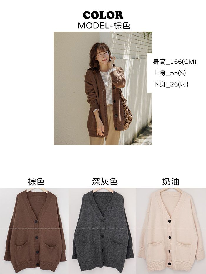 厚磅針織面料/深V領/大鈕釦/三釦/開襟排釦/寬鬆長版 - 休閒居家簡約百搭素面長版針織外套長版外套寬鬆大尺碼外套長袖外套長版外套棕色深灰色奶油色