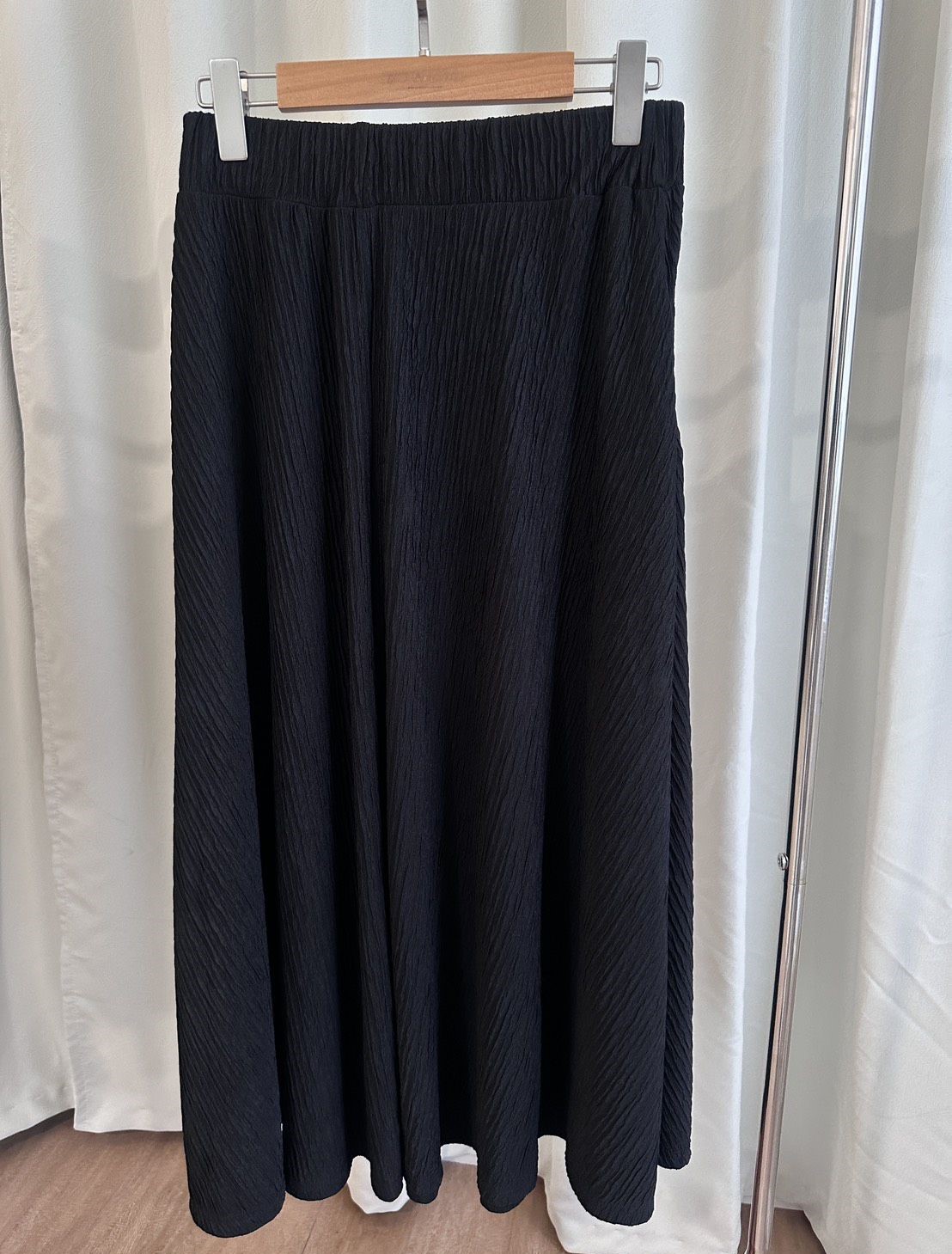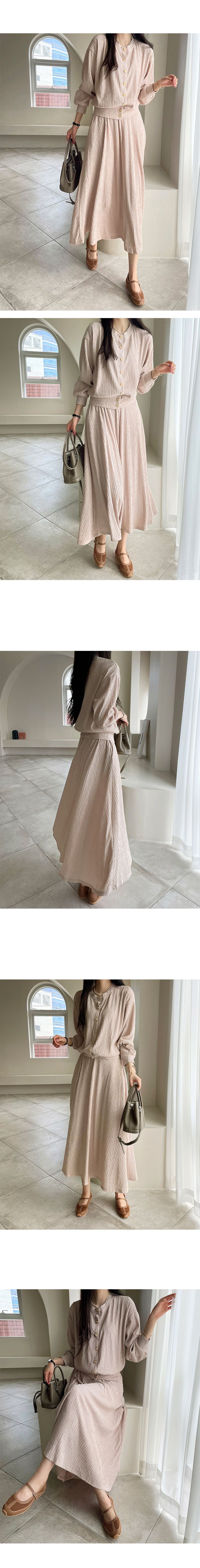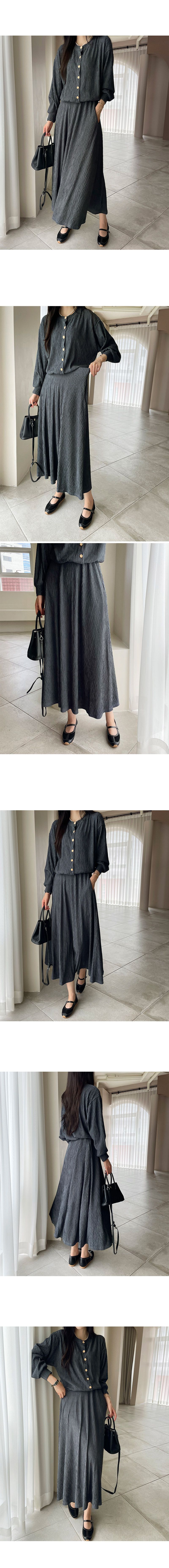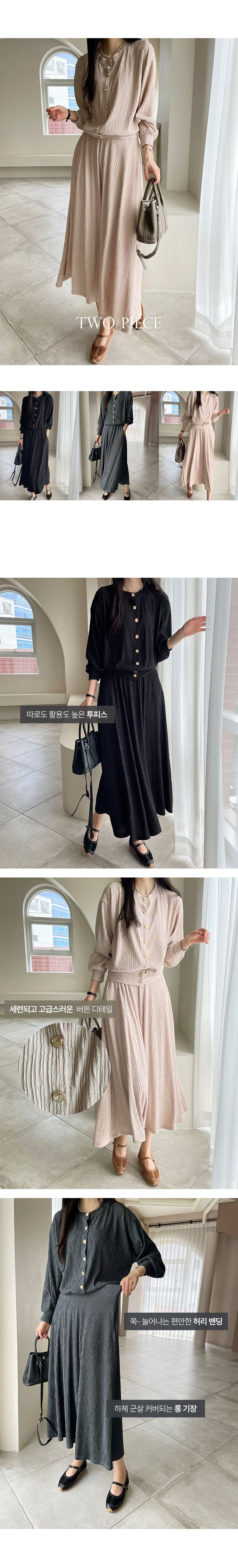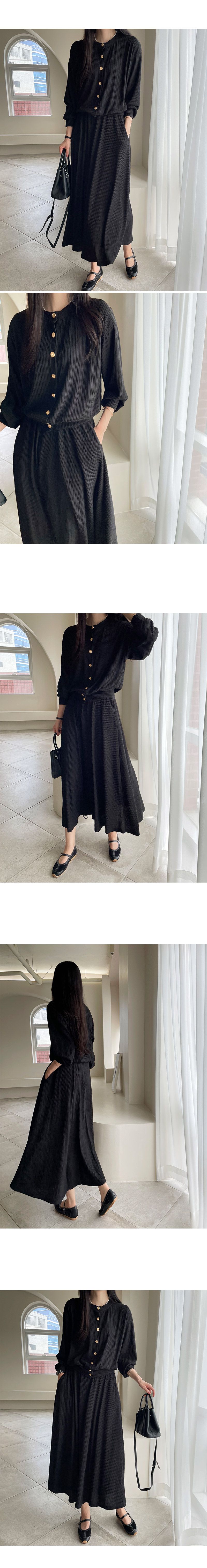 【C55538】韓國MNR 皺皺紋金釦套裝-素面圓領長袖上衣+鬆緊腰長裙★★
