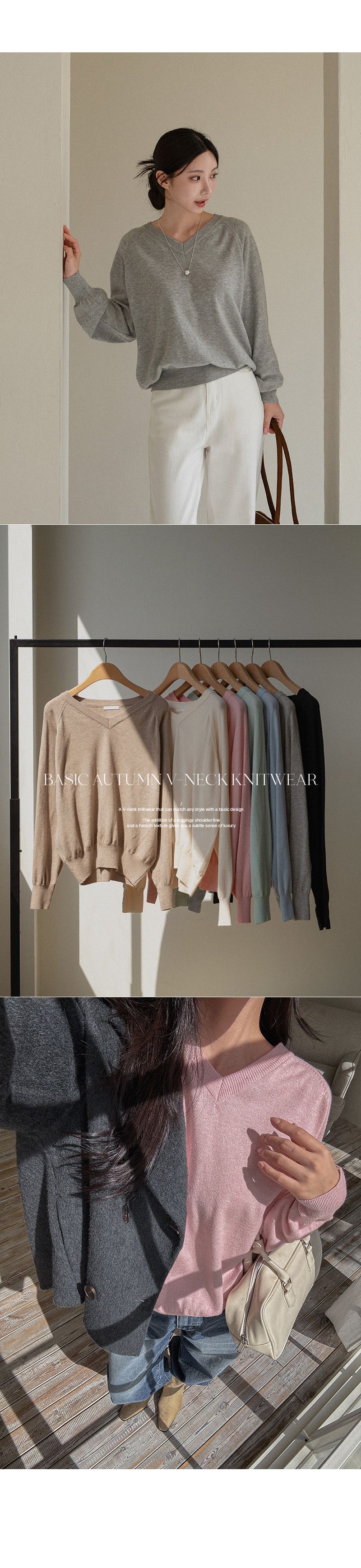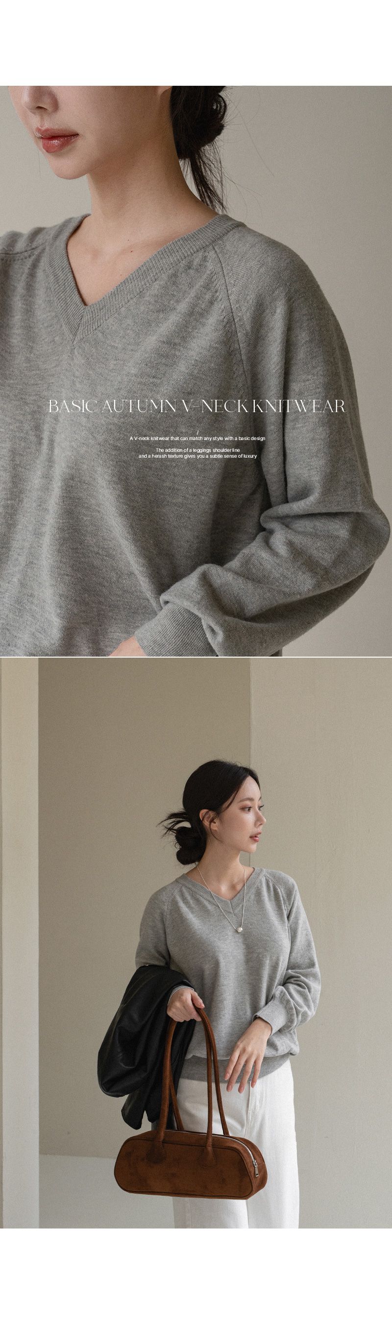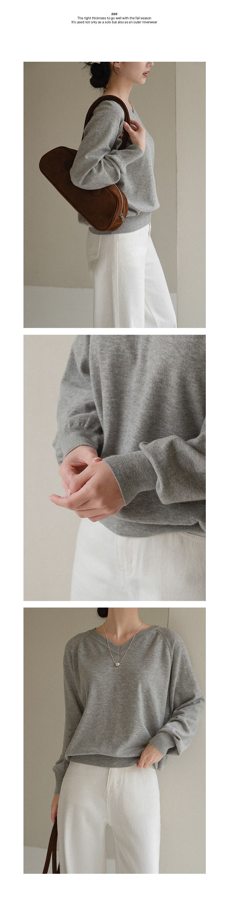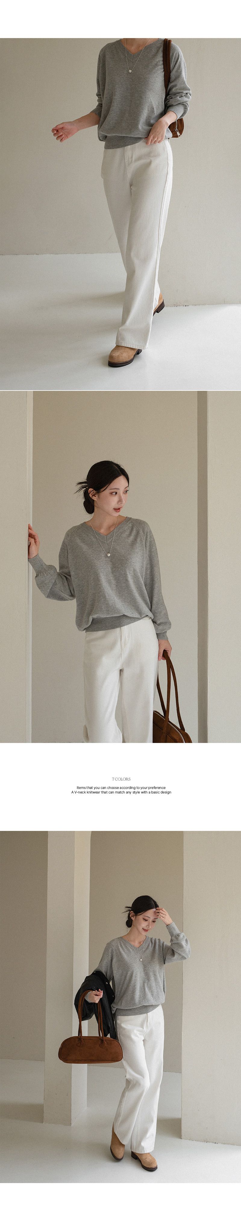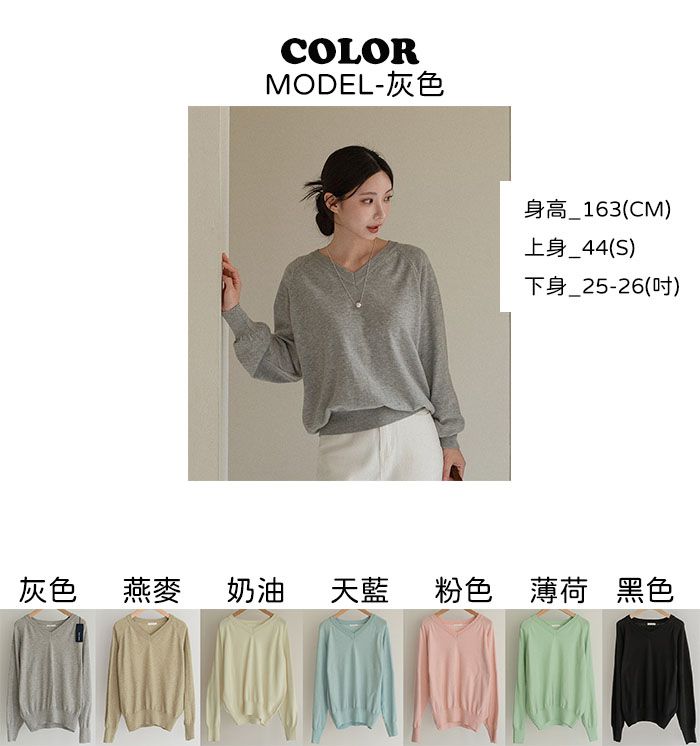 視覺收腰顯瘦/秋冬基礎款/內搭or單穿都好看-休閒居家簡約百搭素面OL上寬下窄V領親膚落肩長袖上衣針織衫灰色燕麥色